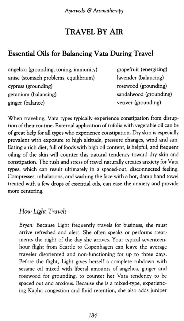 When I was asked to write a foreword for "Ayurveda and Aromatherapy," I agreed immediately, based on knowing the Millers for the last two years. As we make our way through this life, on occasion we are fortunate enough to cross paths with others whose integrity and desire to improve the human experience is exceeded only by their love and genuine caring. Light and Bryan Miller exemplify the best of such high-minded people. I wholeheartedly support their healing and educational work and know that their intent is for personal, community and planetary trans-formation. I feel honored to have been asked to write this foreword. Life is filled with circumstances that call for choices to be made. Some are insignificant and can be made with little or no effort, while others impact our lives in a big way, demanding study and soul-searching before a decision is made. Obviously, choosing what color car you will drive pales in importance when compared to choosing where to raise your children or what kind of work you will do. At the top of the list of importance, when it comes to making choices, are the ones you make regarding your health. Let's face it, when it comes right down to it, nothing is more important than your health. And making :he right choices can determine how long you will live and how healthfully.