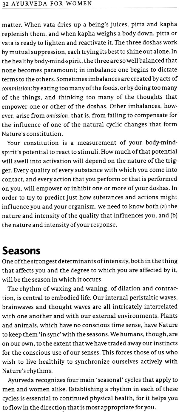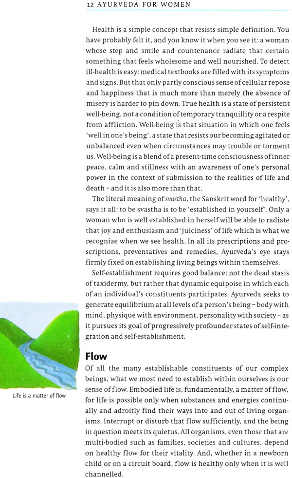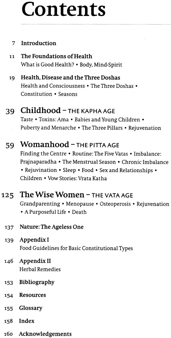 Although Ayurveda takes all of embodied life (including animals and plants) as its field of activity, this book focuses on the female human being. It addresses feminine physical, mental, emotional and spiritual realities, and the many areas of women’s lives that are unique to them as women. We begin with Ayurveda’s basics - principles that are as true for stallions and pear trees as they are for people! - and proceed to explore women’s concerns in three sections that correspond to the three ages of a woman's life. Each of these introduces and explains those aspects of Ayurveda that are most relevant to that age. As a whole, the book seeks to deliver a faithful image of the reality that Ayurveda was created to mirror: the comedy and the drama, the trees and the forest - in short, everything that is suit- able and unsuitable for promoting health and happiness in an individual human life.