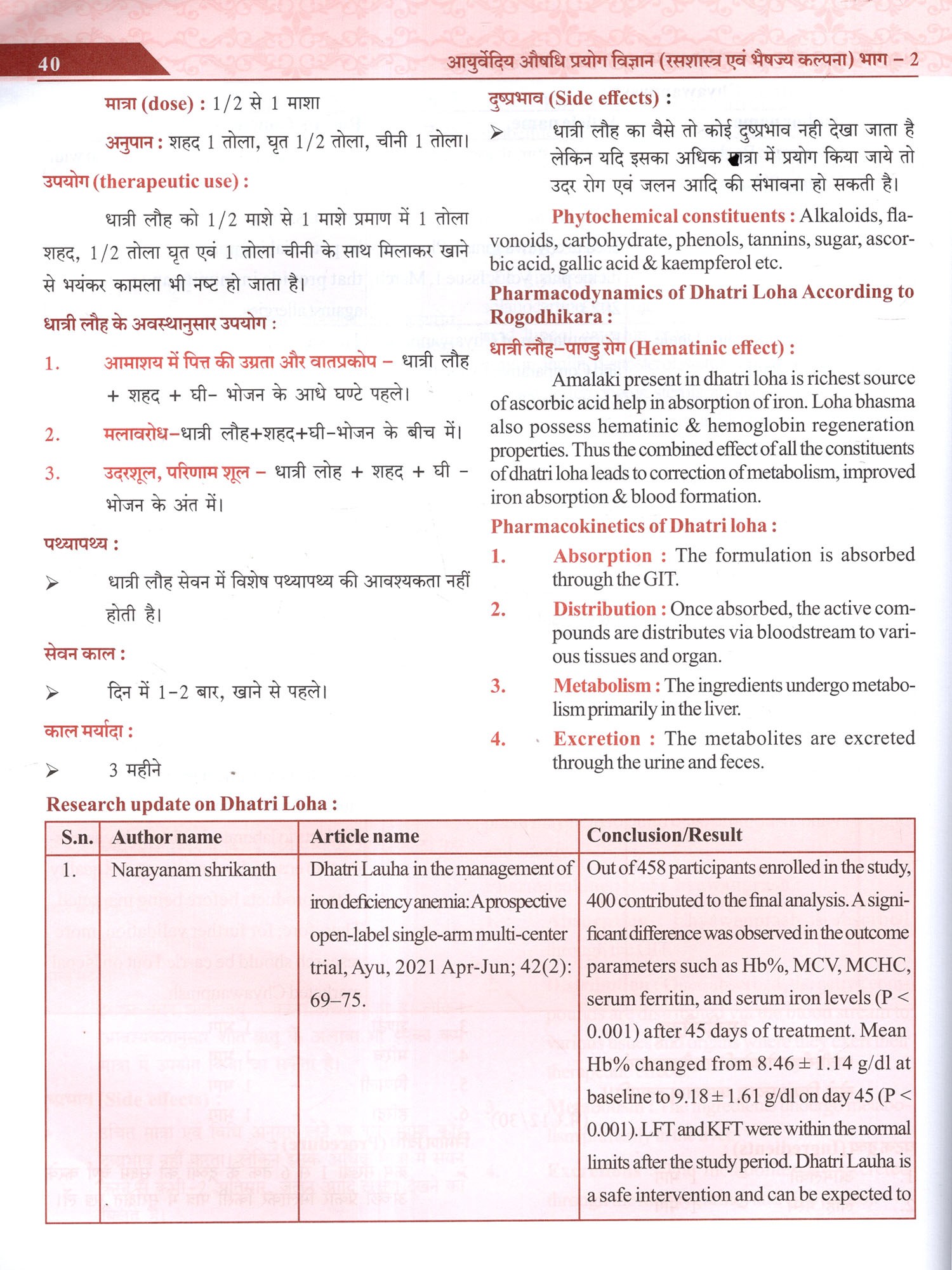 आयुर्वेद के क्षेत्र में दिन-प्रतिदिन और भी अधिक अन्वेशणात्मक कार्यों की आवश्यकता है। आयुर्वेद के प्रोत्साहन में पुस्तकके लेखनकार्य में लेखक डॉ. अनिता कुमारी एवं डॉ. अनिल भारद्वाज का कार्य सराहनीय पूर्ण है। मेरे विचार से यह पुस्तक स्नातक एवं स्नातकोत्तर के छात्रों और शिक्षकगणों के लिए उपयोगी सिद्ध होगी।