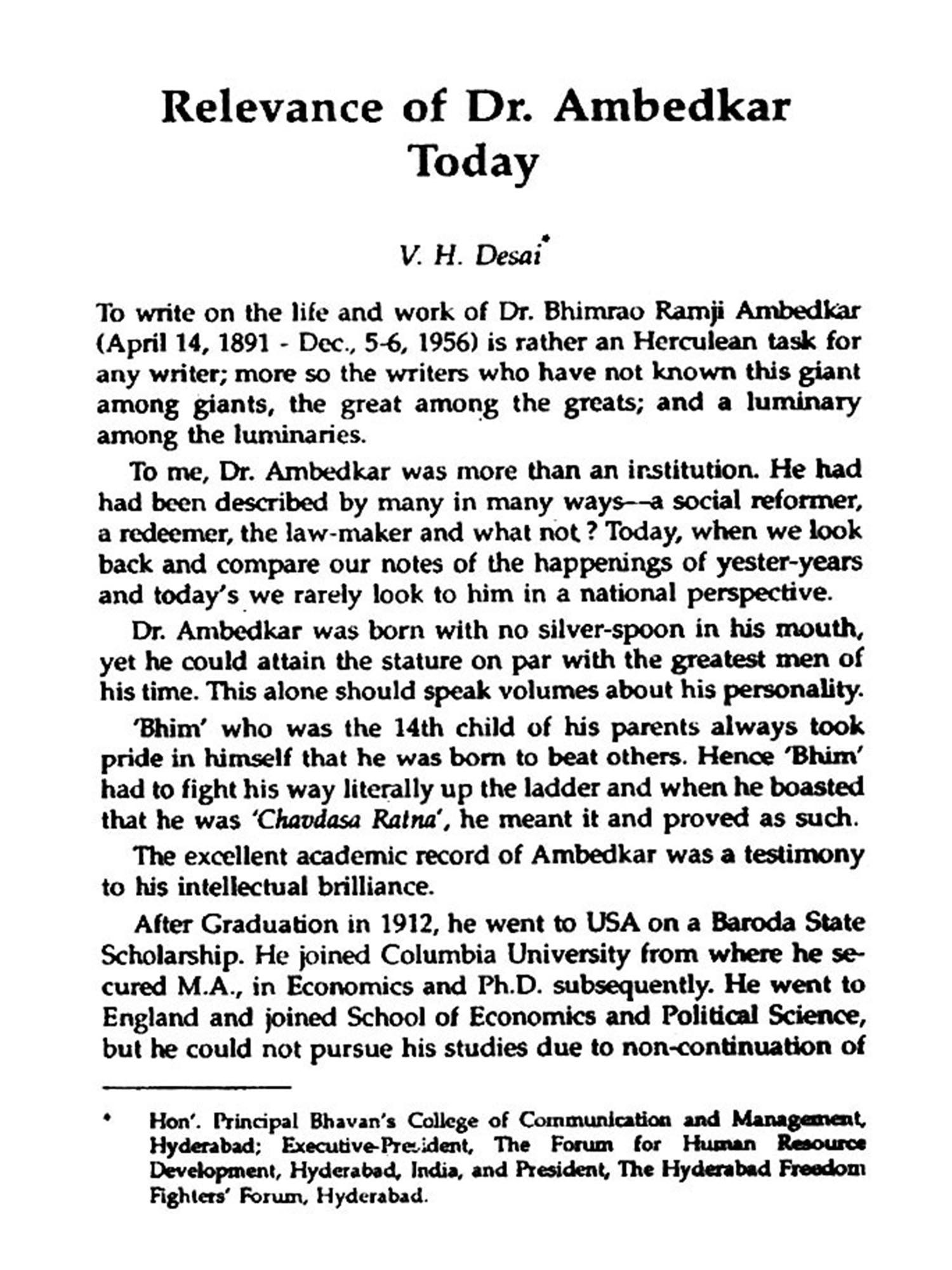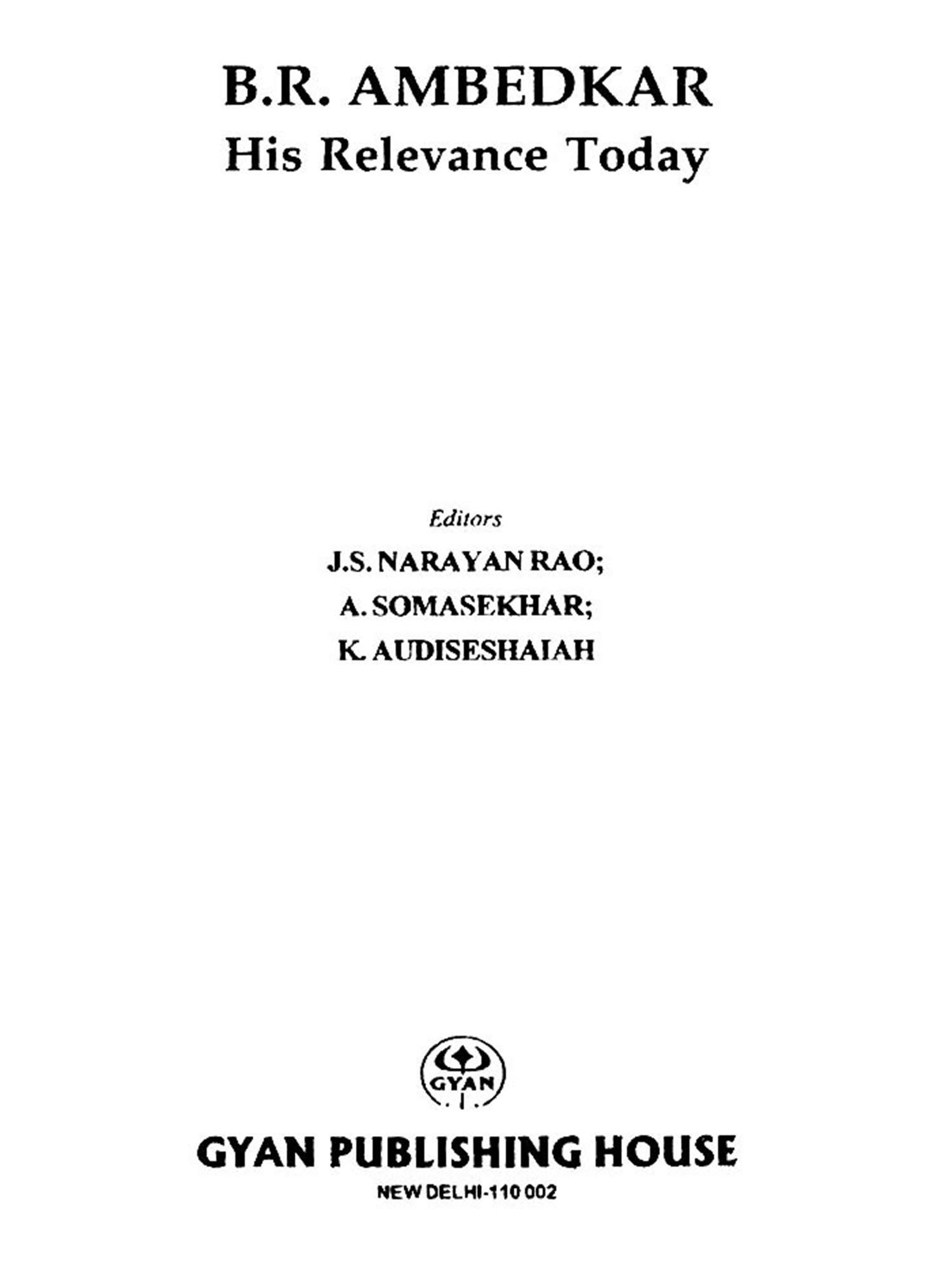 B.R. Ambedkar his Relevance Today