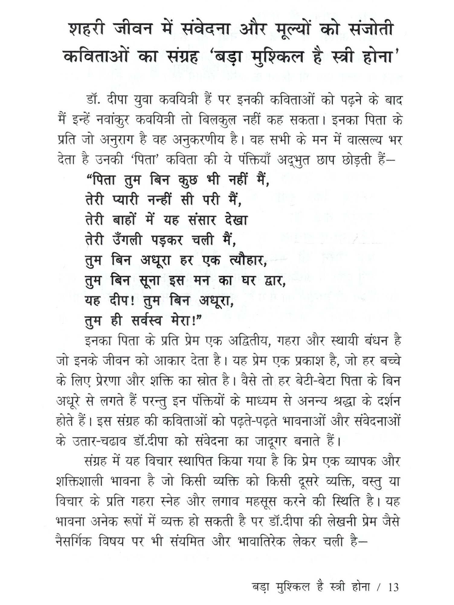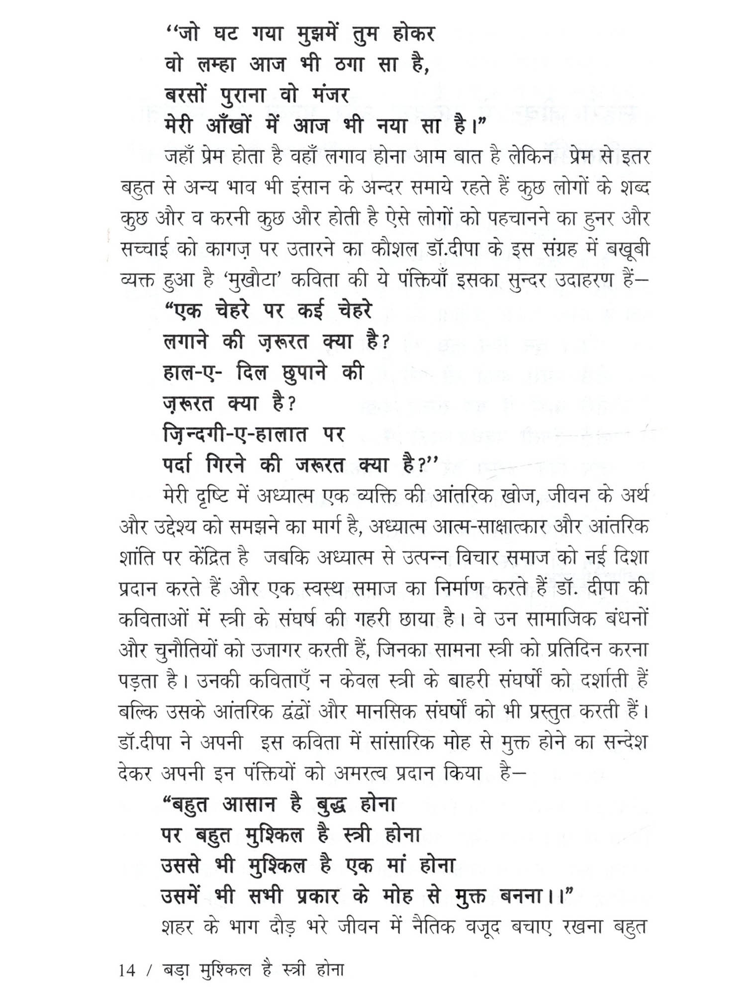 बड़ा मुश्किल है स्त्री होना (काव्य संग्रह): Bada Muskil Hein Istri Hona (Kavya Sangrah)
