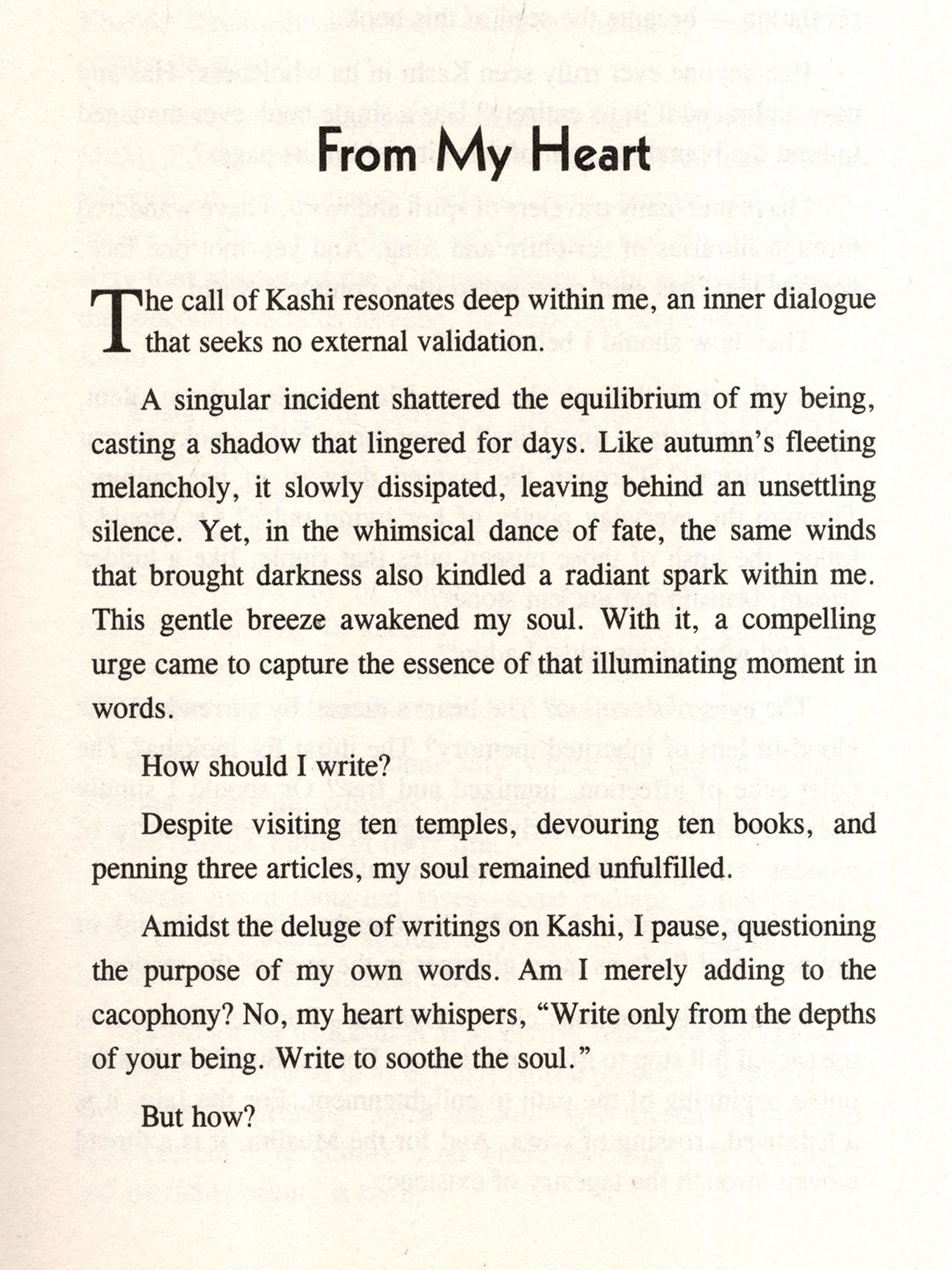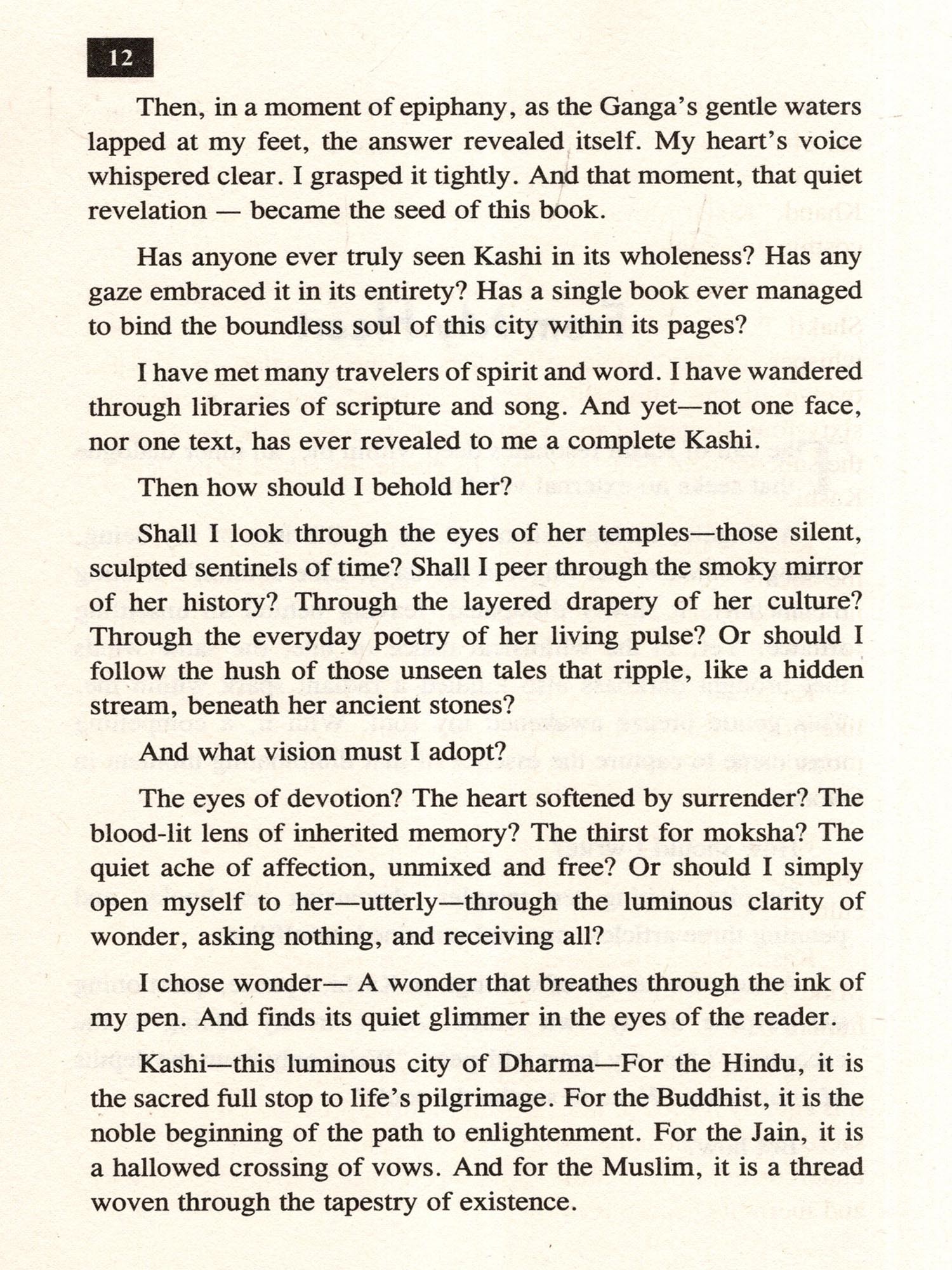 Kashi exists beyond time, beyond geography, and is an unparalleled realm of knowledge and mystery. This city wears tradition like a mantle and lays out modernity beneath its feet. While everyone may claim to know Kashi, to truly understand its esoteric dimension, only the one's who have pass through its deep traditions of knowledge, learning, and literature truly knows what Kashi is.