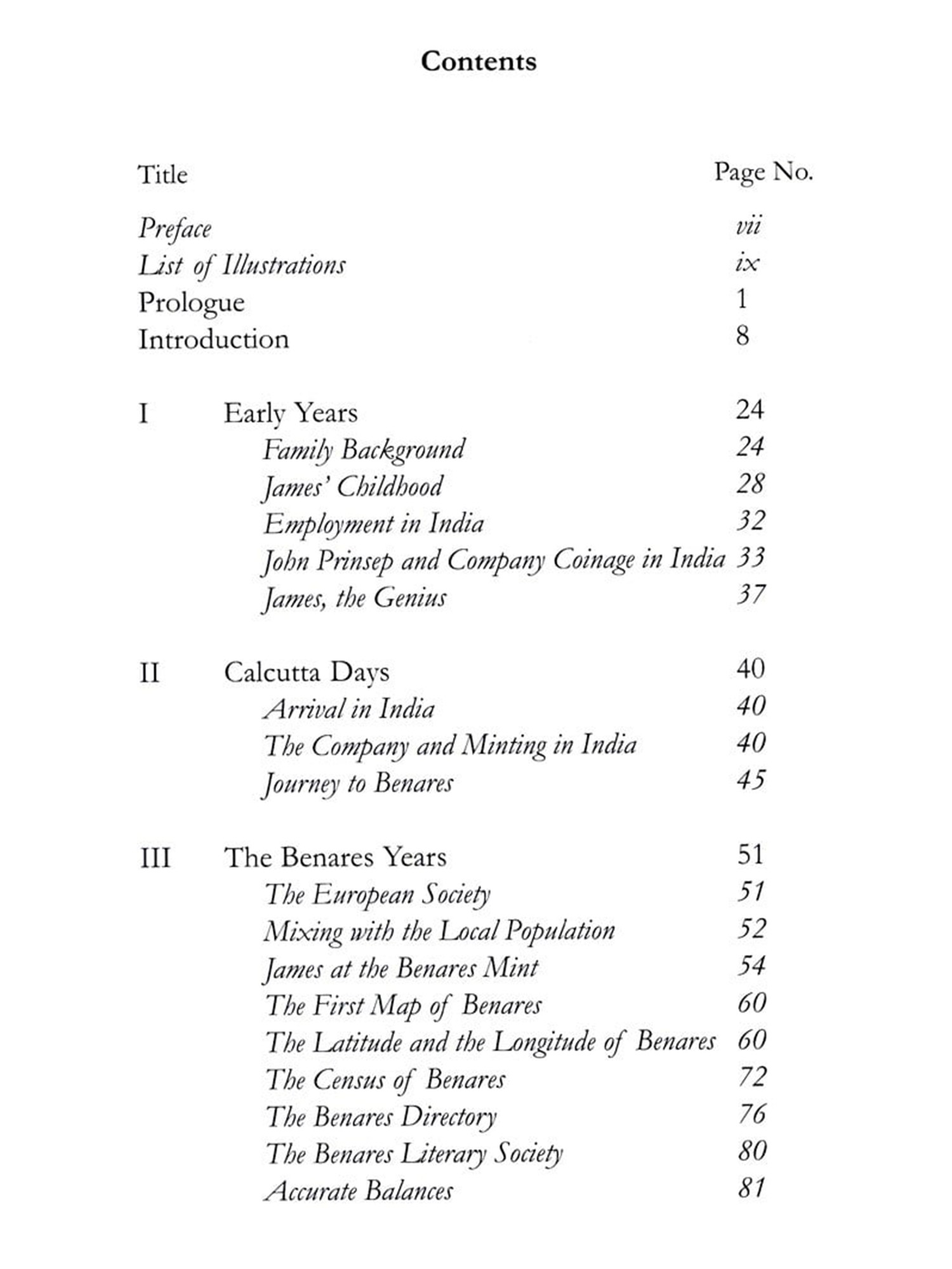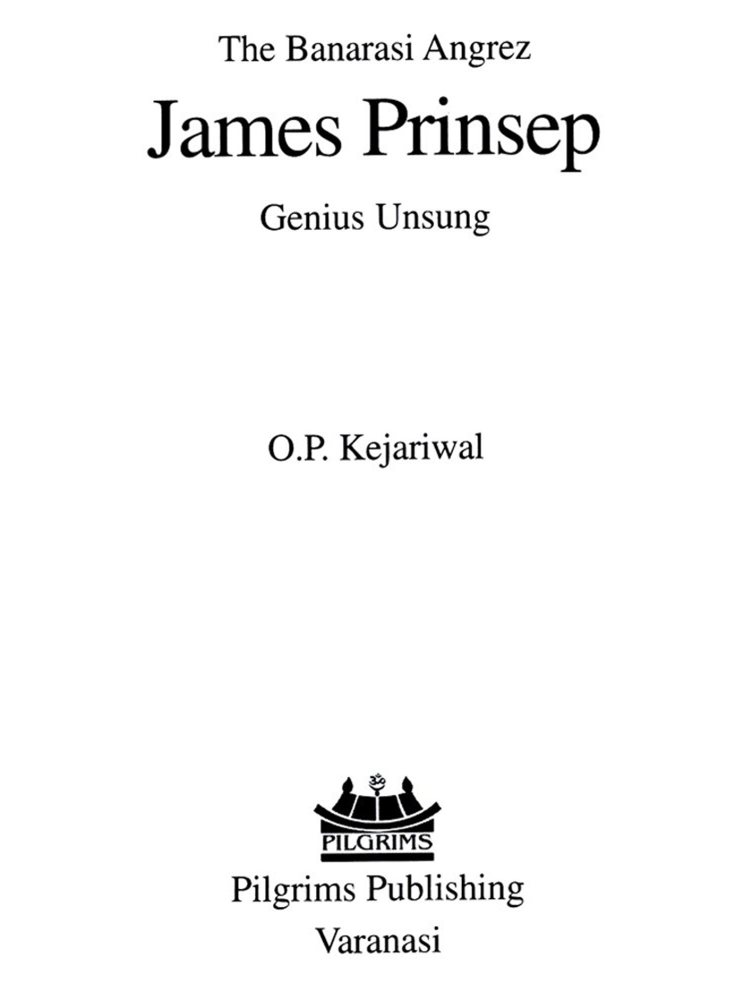 First, the background of the unusual subtitle: The Banarasi Angrez. In 2004, on my retirement from the Civil Services, I came to settle down in Banaras. Strangely, I found that here, practically no one that I met had even heard the name of James Prinsep, let alone about his many-dimensional contributions to the development of the city. Then one day I met Raman Shankar Pandya, popularly known as Rammo Bhaiya, a sixth-generation inhabitant of Banaras. He asked me what I was doing at the time, and on my replying that I was working on a biography of James Prinsep, he immediately said, 'Oh, James Prinsep! He was a great man and a greater Banarasi than we Banarasis'. I was surprised and asked him how he had heard of this name when it had evoked almost a blank response when I spoke of him to other people including senior academicians.