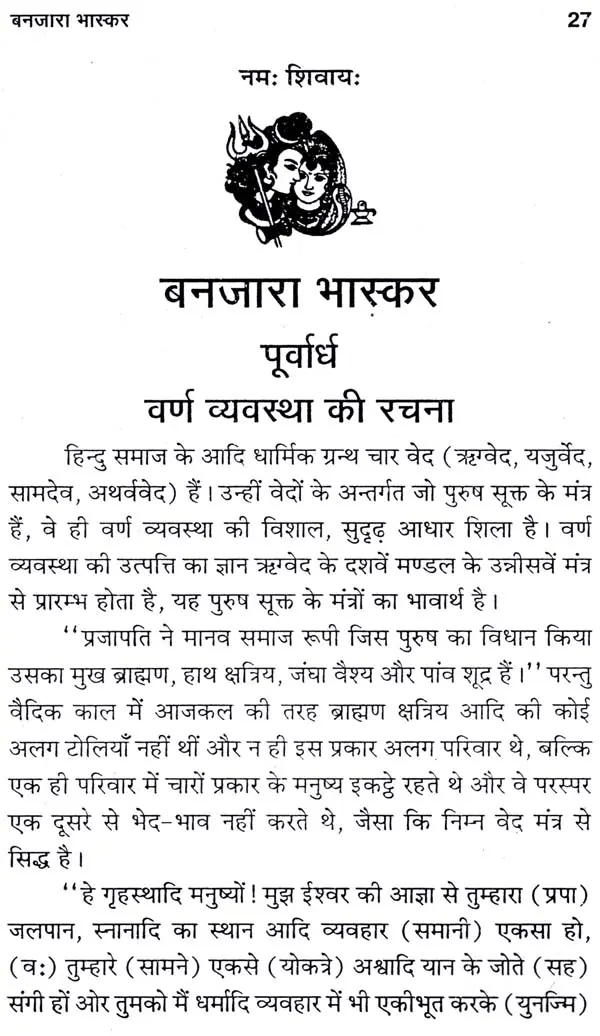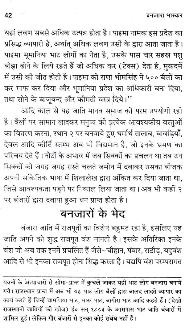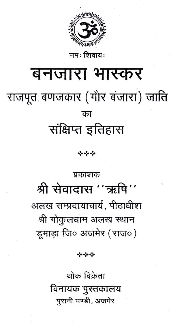 इस समय जो पुस्तक मेरे हाथ में है और स्वामीजी की इच्छानसार जिसकी भूमिका मैं लिखने जा रहा हूँ, वह इसी उद्देश्य से लिखी गई है। उनका नाम है "बंजारा भास्कर" अर्थात् राजपूत बणजकार (गौर बंजारा) जाति का संक्षिप्त इतिहास। जिसमें बनजारा जाति के विविध भेद, उनकी उत्पत्ति, विकास और प्रस्तार का इतिहास खोज के साथ दिया गया है।