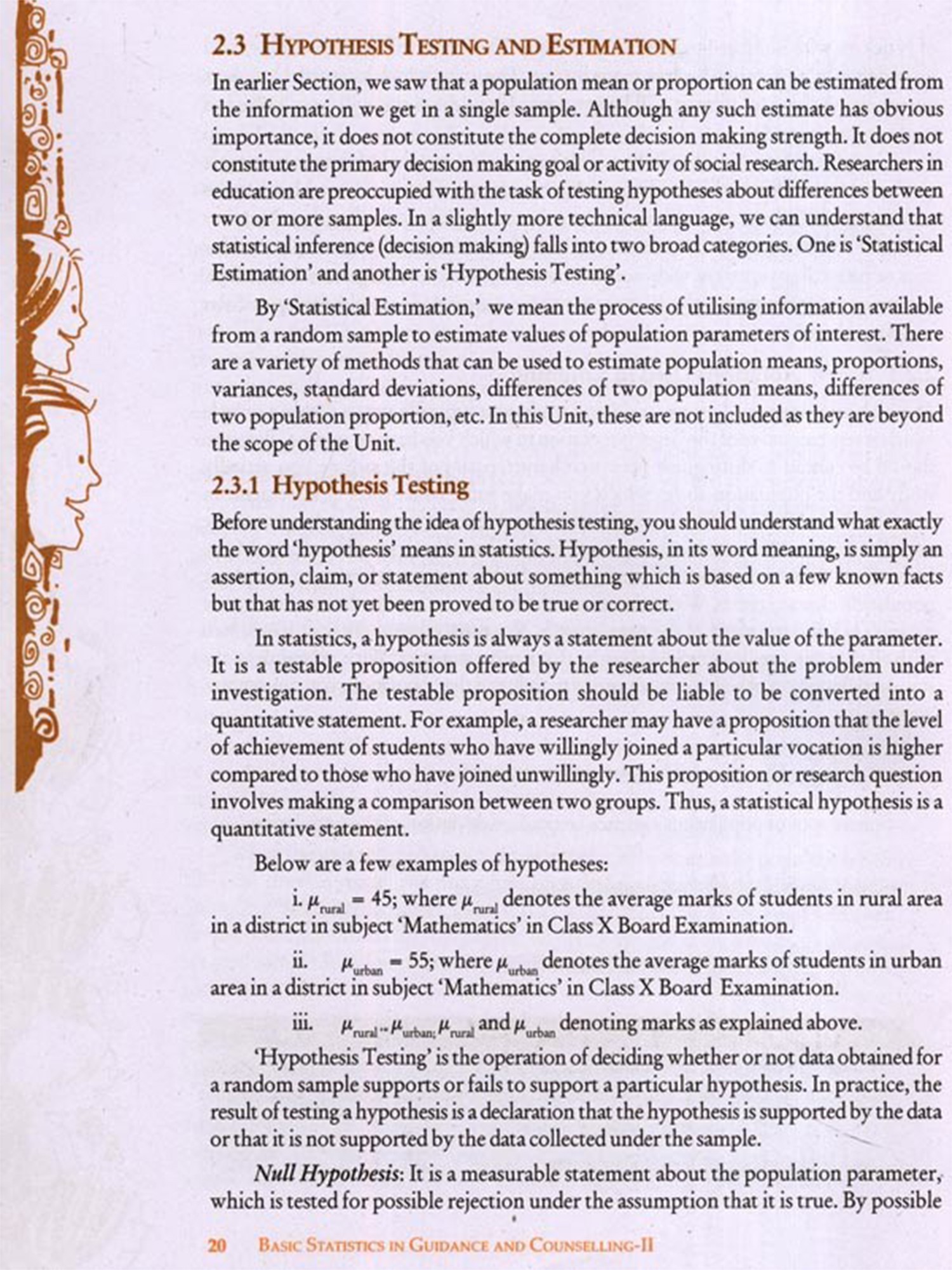 This is the fourteenth module of the course in Guidance and Counselling. It aims at developing basic statistical literacy especially in the context of guidance and counselling. The units covered in this module will help you to understand the statistical data given in the test manuals, and to analyse and interpret test scores.