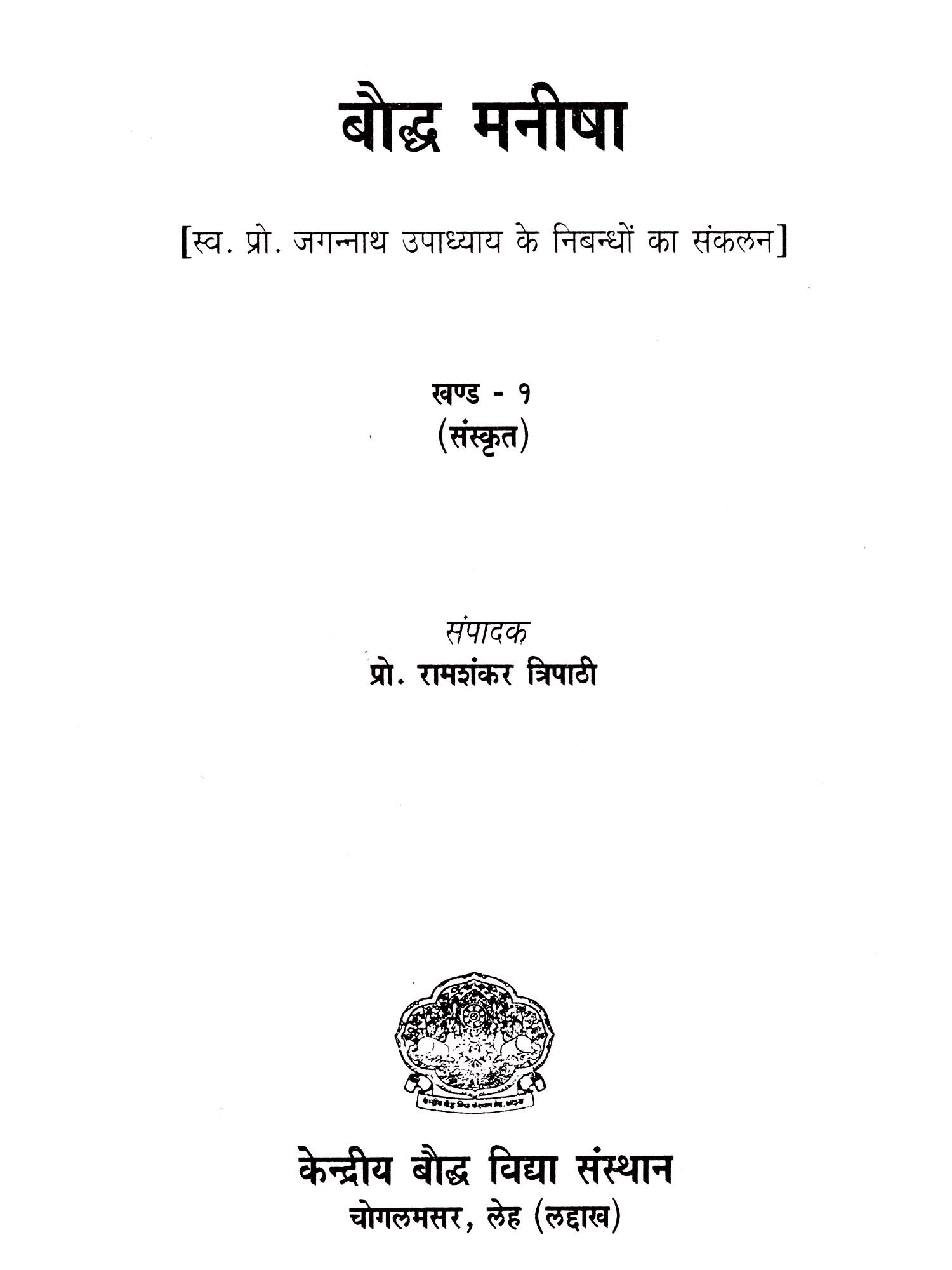 बौद्ध मनीषा- Baudha Manisa (A Collection of Essays by the Late Prof. Jagannath Upadhyaya)