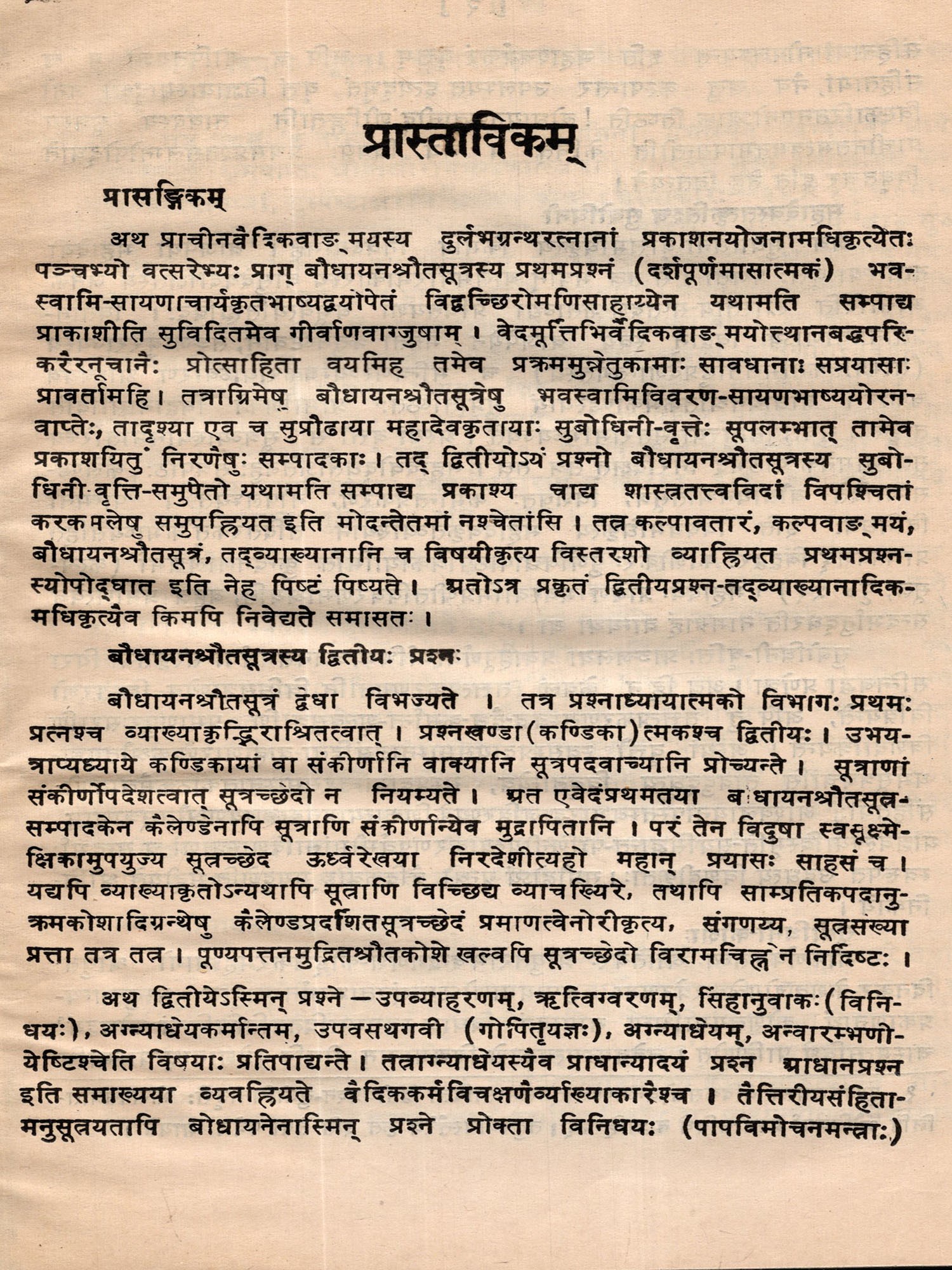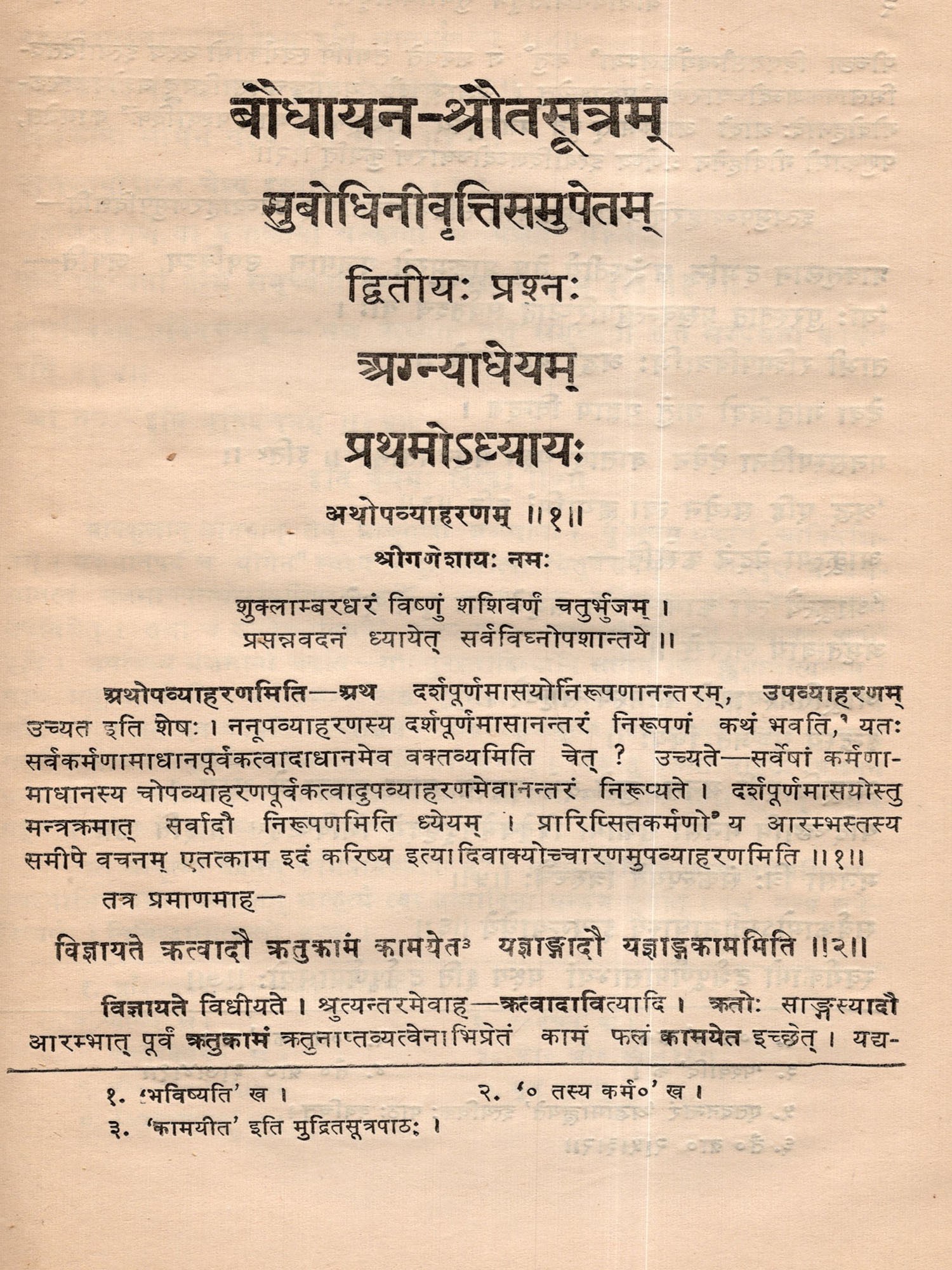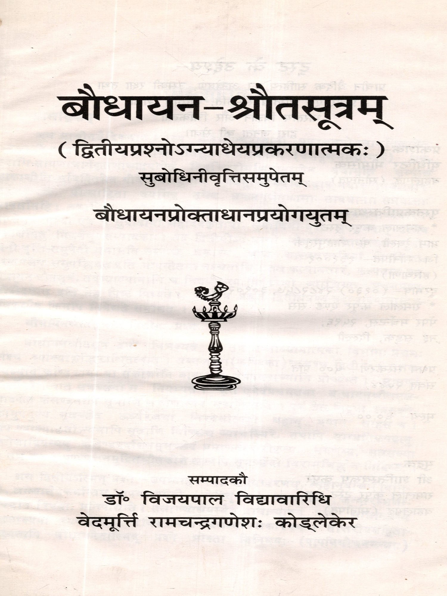 बौधायन-श्रौतसूत्रम्: The Baudhayana-Shrautasutta (The Second Question Is About the Case of the Agnidheya- Equipped with a Well-Informed Instinct With the Use of the Infusion Mentioned by the Baudhayana) An Old and Rare Book