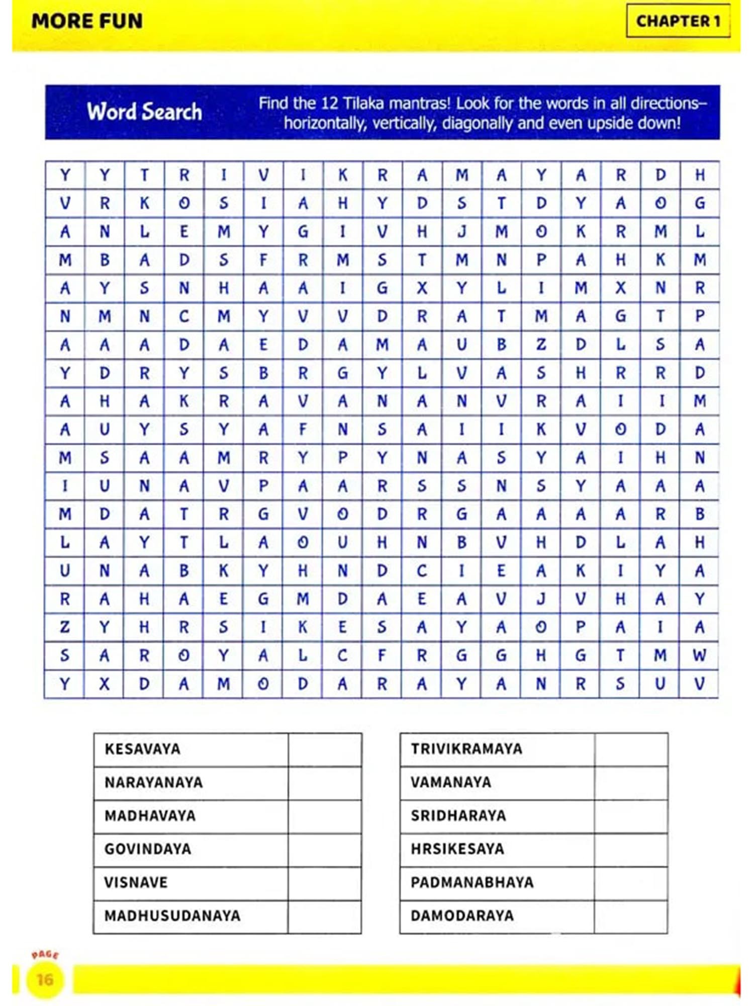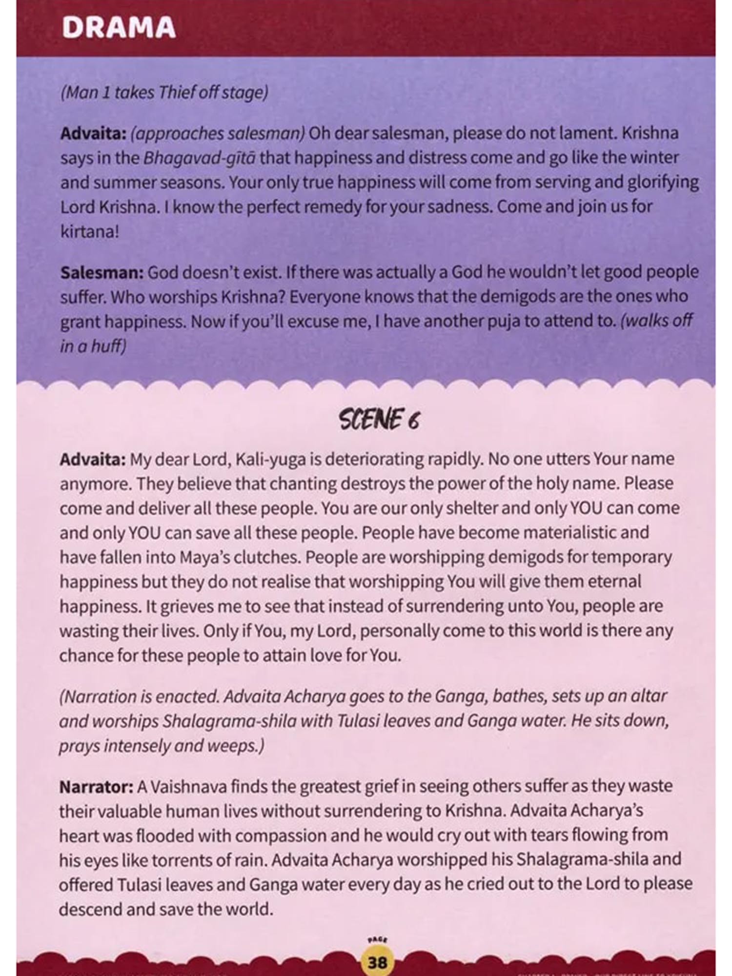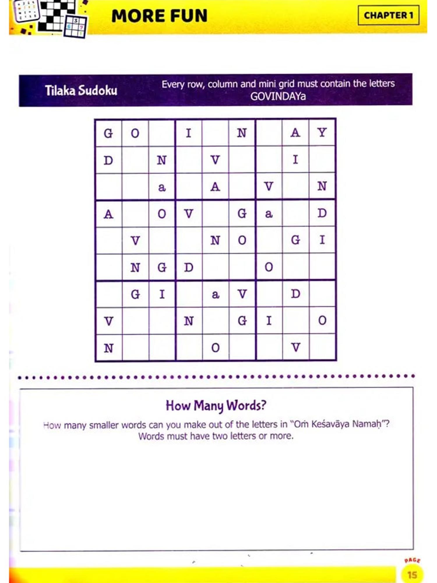 Becoming Your Devotee explores, in depth, eight interesting topics of Krsna consciousness such as putting on tilaka, the nine processes of devotional service, following Ekadagi, Lord Caitanya and Lord Nityananda and even how to offer bhoga and a rati! Every chapter starts with a lesson explaining the topic with a story and fun facts and ends with a checklist to tick what you have learned. The special thing about this book is that every lesson contains many exciting activities such as crafts, dramas, cooking, games and so much more! This book is especially for you!
