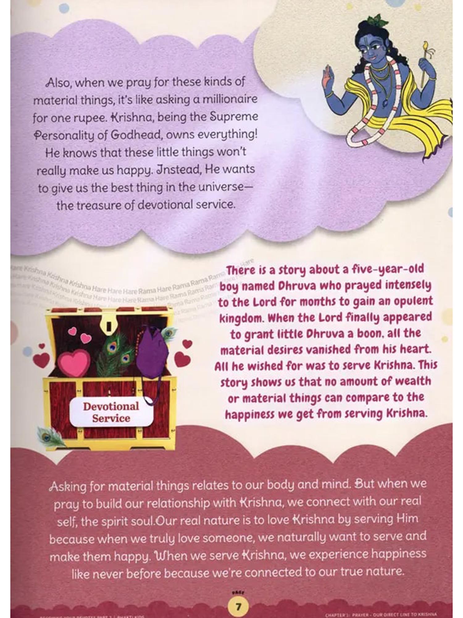 Imagine if, one day, your child comes up to you and with all his or her sincerity, tells you, "I want to be Krsna's devotee"? The purpose of Becoming Your Devotee is to help them to make that decision as a steppingstone on their path towards Krsna. Even if your child has already made this decision, this book is to further encourage and deepen their experiences in Krsna consciousness. We have started this series of books with the conviction that learning about Krsna consciousness is fun and enjoyable. Learning should be exciting and this is what this book is trying to achieve. Children learn best when they are actively hands-on engaged in the topic rather than when they are simply told about the topic. This is why we have included a wide range of activities to not only cater for different learning styles, interests and inclinations but also to reinforce their assimilation of the knowledge of each chapter's theme.