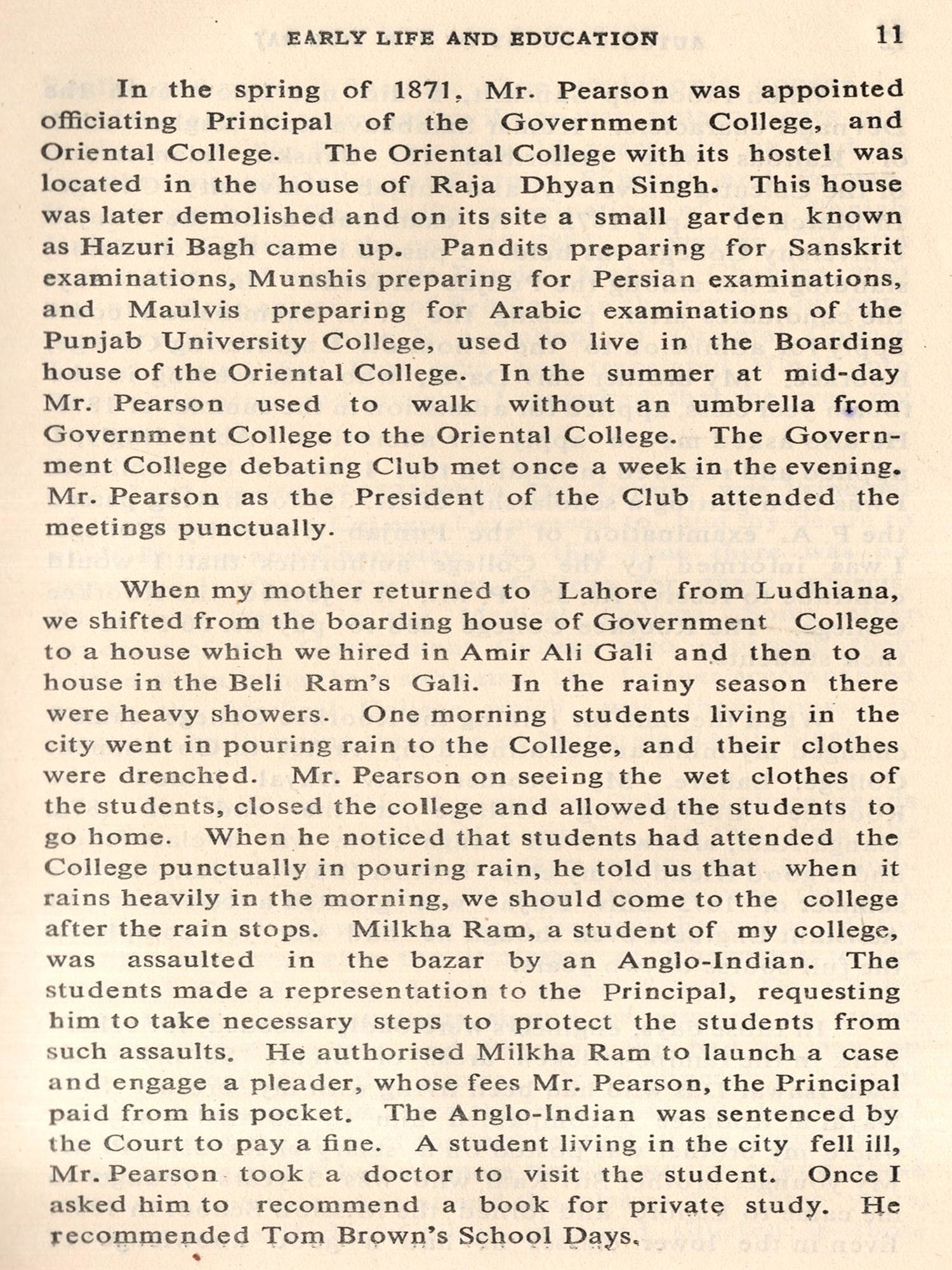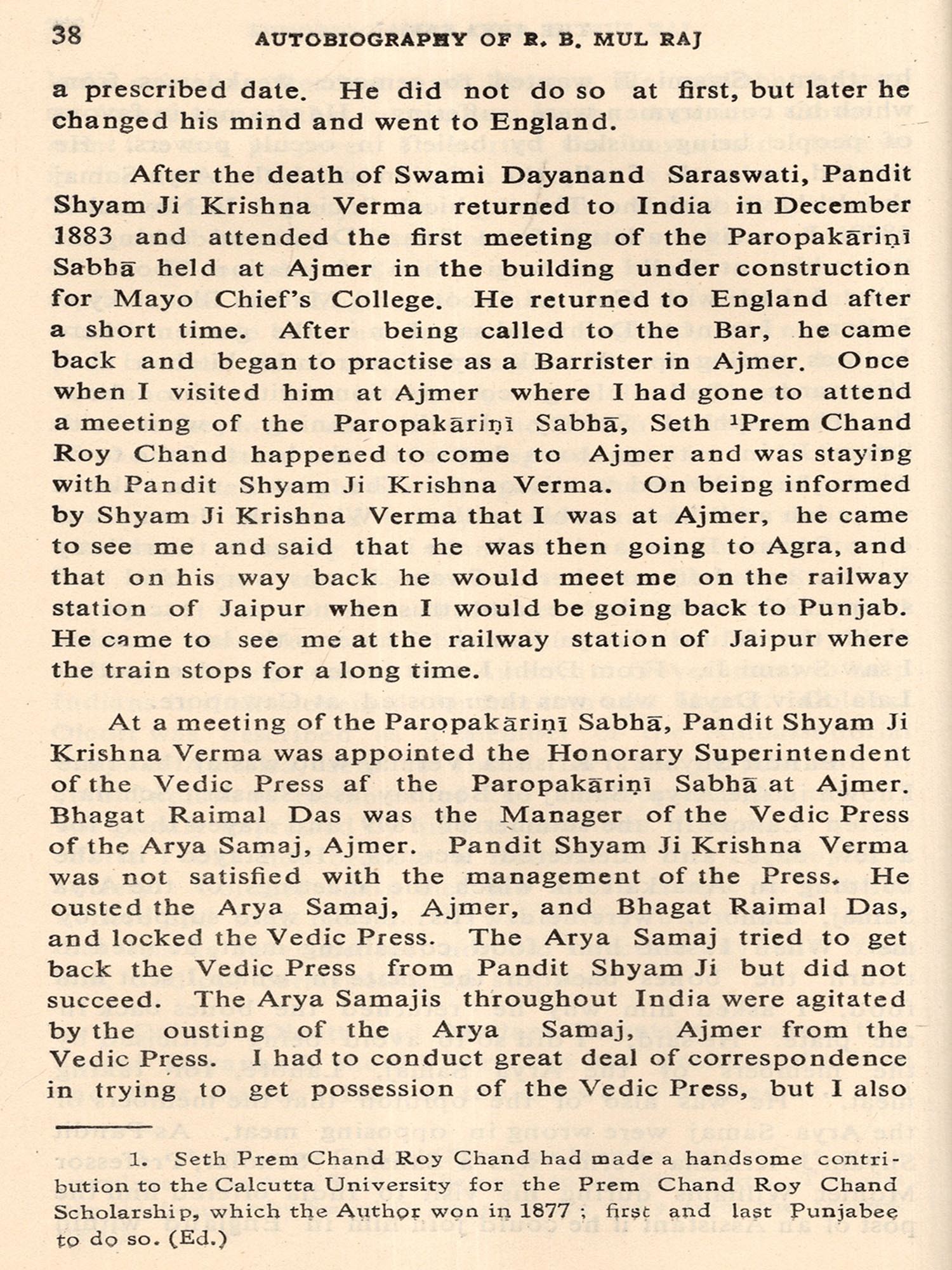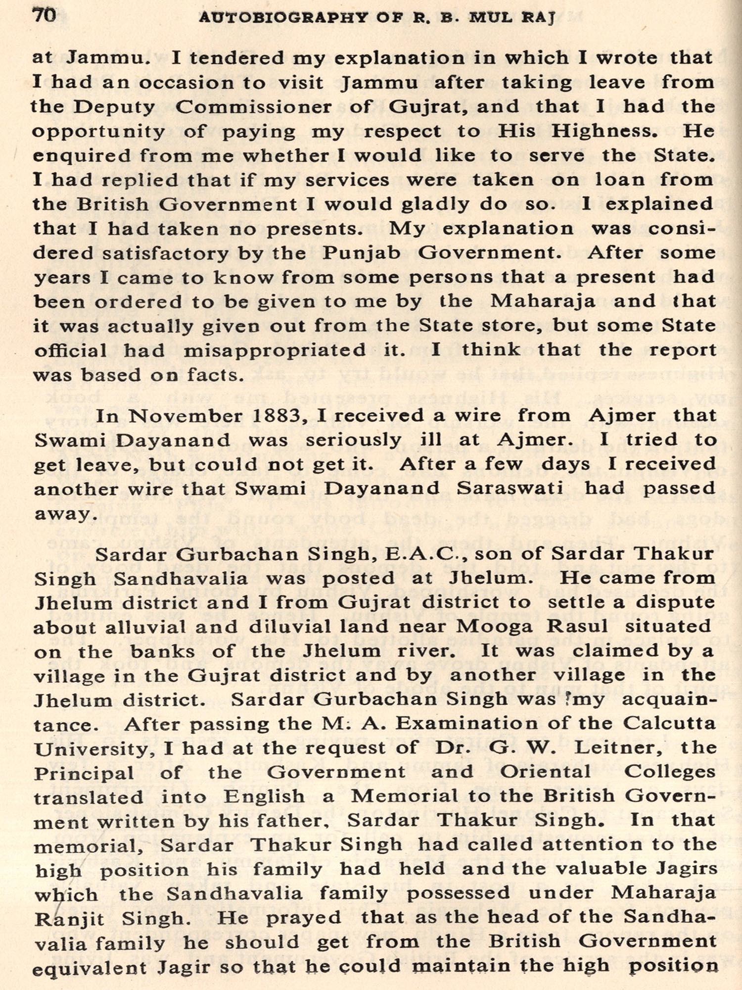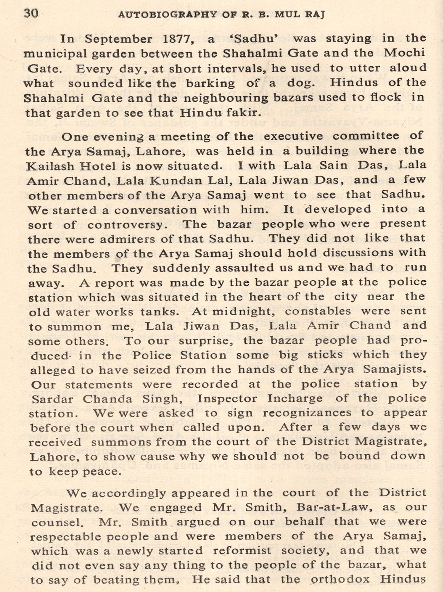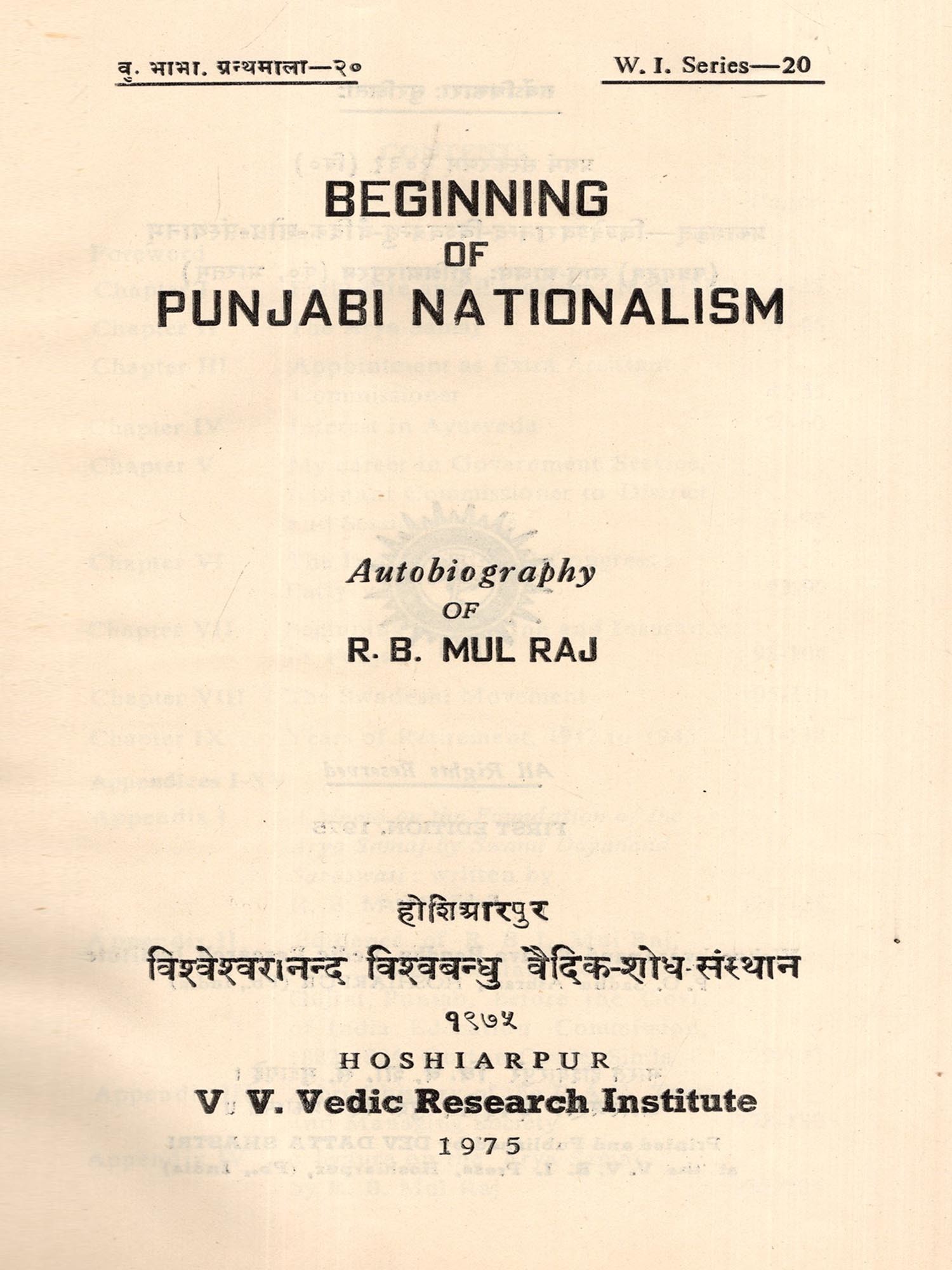 This autobiography in the form of reminiscences was dictated by the author to his grandson, Upendar Nath (now Dr. Upendar Nath, M.B.B.S., L.D.S., R.C.S., Hyderabad-A.P.) in the nineteen-thirties. The manuscript was completed at Lahore about 1942. The author, Rai Bahadur Mul Raj died at Lahore (West Pakistan) on 2nd June, 1945. Soon after his death, the law and order situation in the Punjab began to deteriorate. The holocaust which preceded and followed the Partition of the country ruined and disrupted many Punjabi homes and families, and therefore, it took many years before the manuscript could receive due attention.