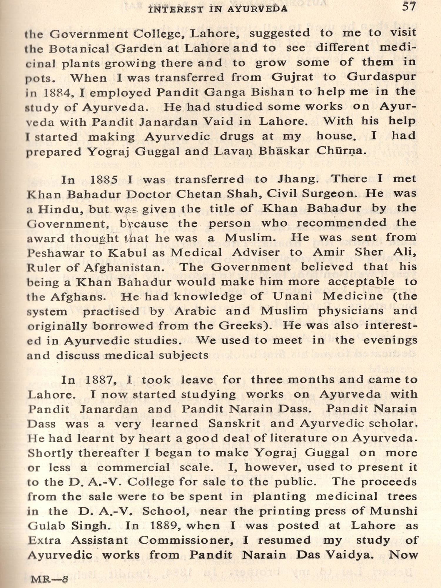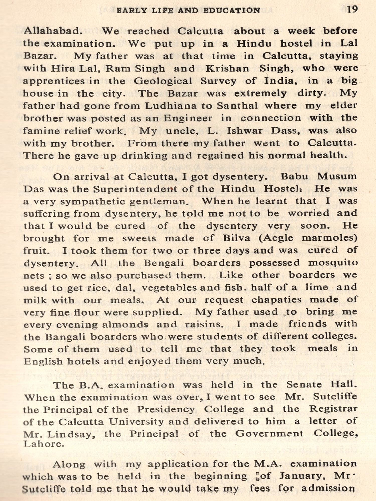 The manuscript was first checked by his son late Dr. Prem Nath and his admirer Lala Achint Ram, M. P. Later, the work of editing the manuscript was taken over by late Acharya Dr. Vishva Bandhu Ji, Padma Bhushan, Honorary Director, Vishveshvaranand Vedic Research Institute, Hoshiarpur, who entrusted the preliminary reading of the draft to Professor Siri Ram of Una, The second and final stage of editing was done personally by Acharya Vishva Bandhu Ji with the assistance of Dr. Mehta Vasishtha Dev Mohan, Reader, V. V. B. Institute of Sanskrit and Indological Studies, Sadhu Ashram. Dr. Vishva Bandhu Ji's labour on this autobiography over so many years was rendered entirely as he said "to fulfil my own spiritual obligation towards one who is no more in our midst and whom I held in the highest respects". The sudden demise of Acharya Dr. Vishva Bandhu Ji on 1st August, 1973, delayed the publication of this autobiography further. The final correction and typing of the draft was taken over by me in September 1973. This entailed considerable work in rearranging the text to make it suitable for publication in a book-form.