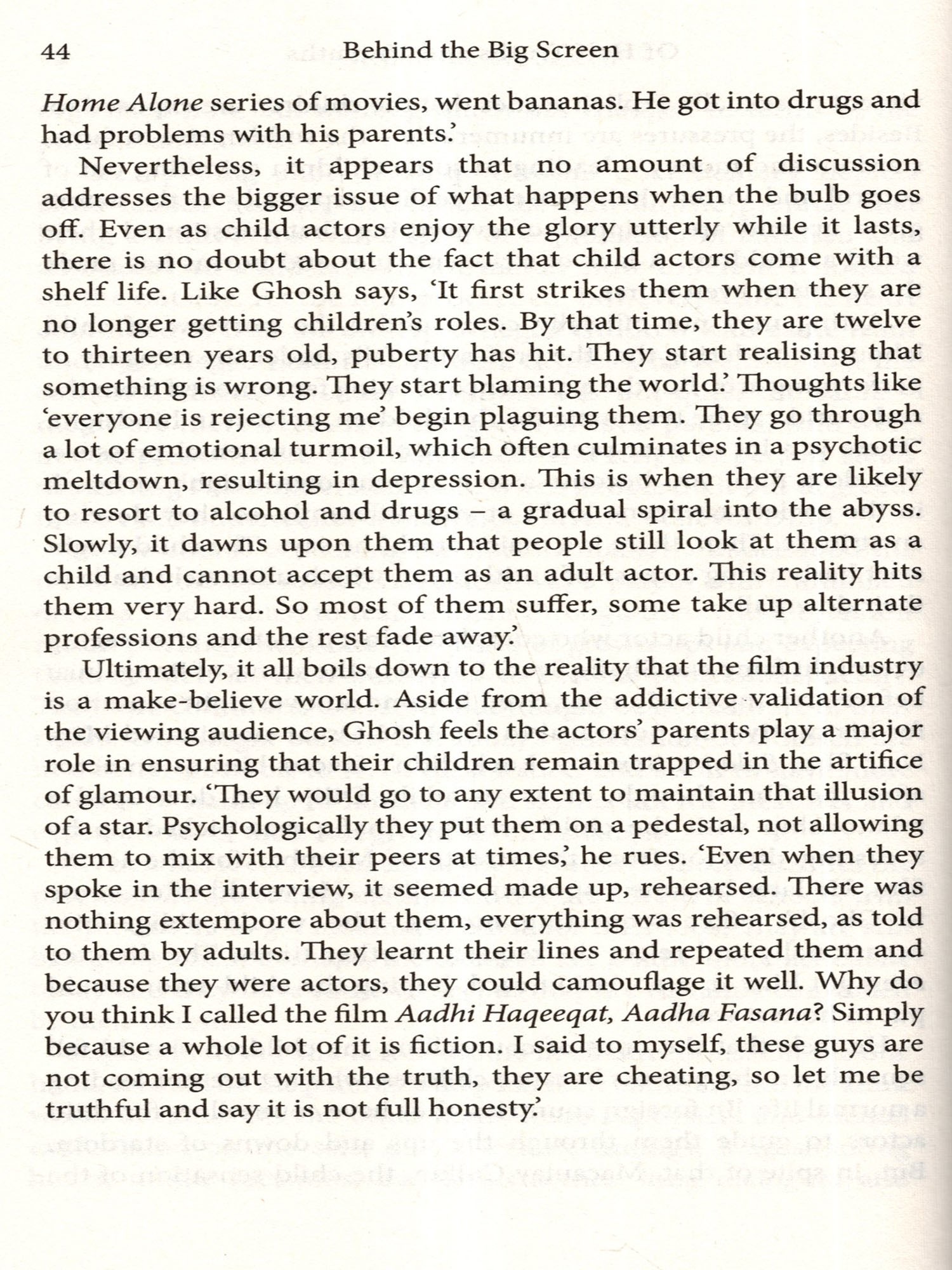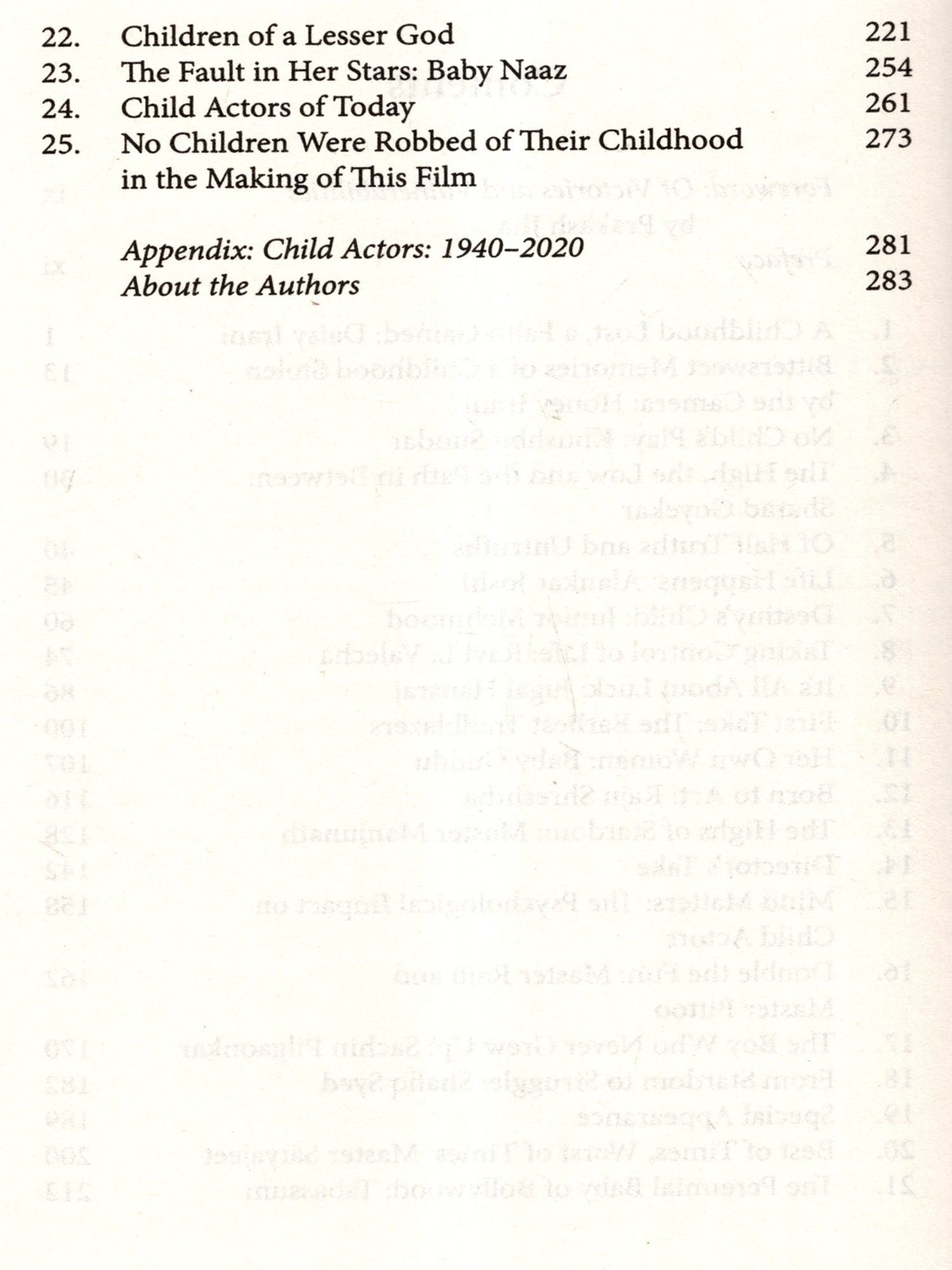 The stories within these pages nudge you to think about the delicate balance between opportunity and cost the glittering opportunity of finding fame and fortune so early in life and the cost of risking scars that may linger far beyond the final cut. More crucially, they offer subtle guidance on what may be the correct way for a child actor to navigate a world basically built for adults. That alone makes this an important piece of work and an invaluable contribution to literature on Indian cinema. Because we are what our childhood was.