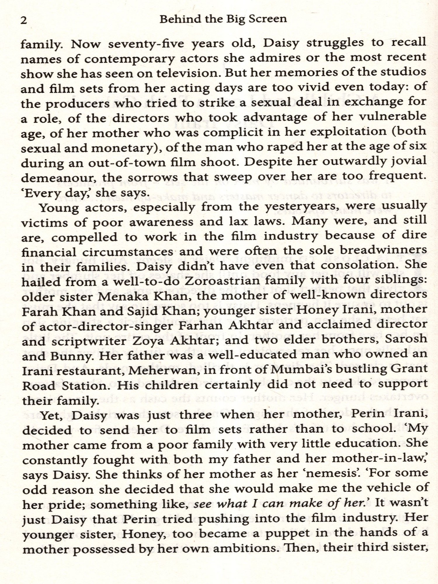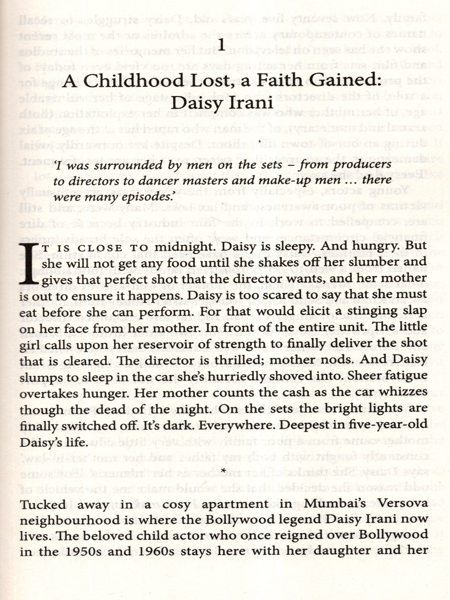 More distressing was a cover story by a daily tabloid on one of the most popular child actors of the 1960s: Daisy Irani. She revealed how she was raped at the age of six by the man who was supposed to be her guardian, whilst she was shooting for a film, along with details of how her mother had played a huge part in destroying her childhood. Even as the story stunned and saddened the readers, many knew that this was just the tip of the iceberg.