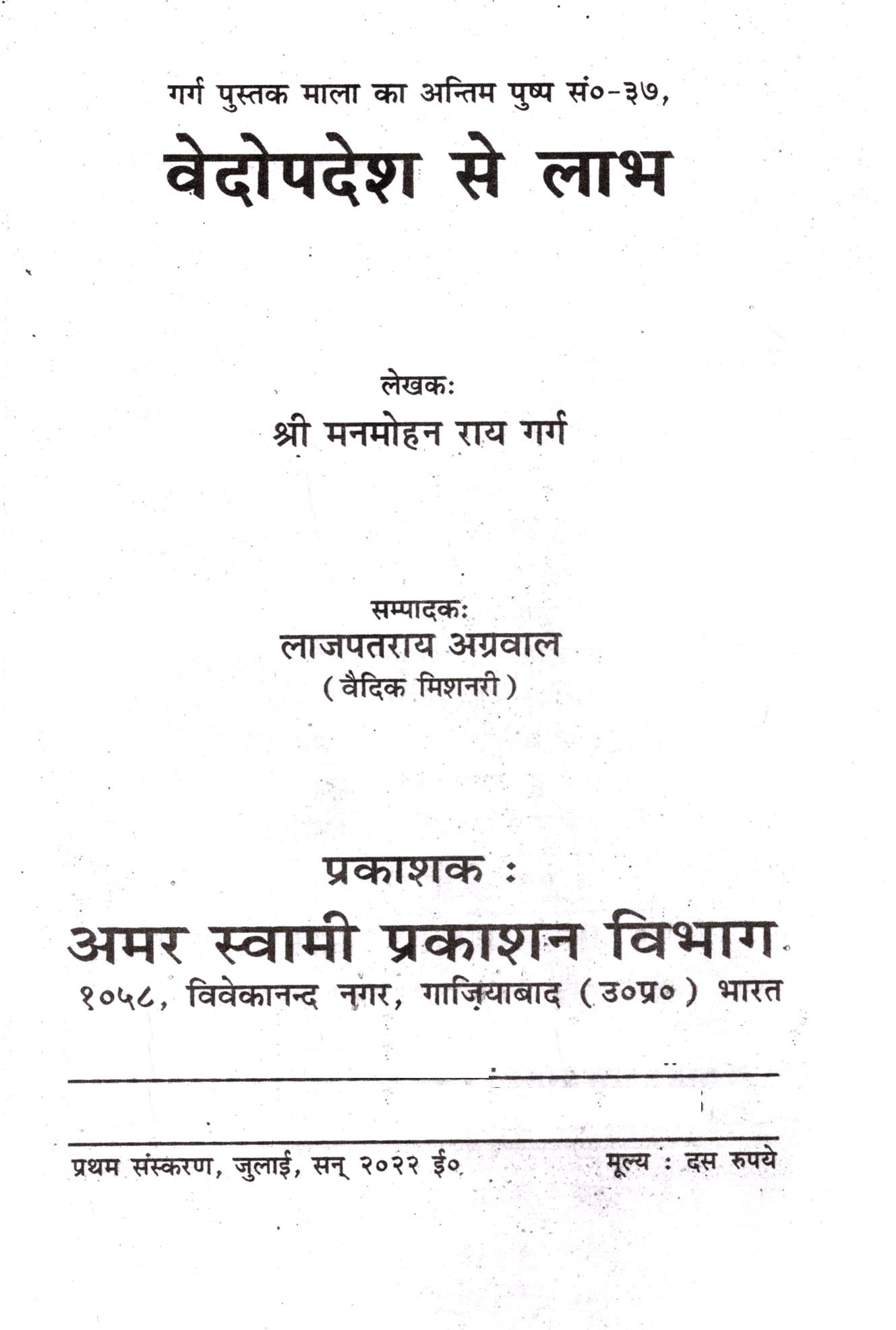 वेदोपदेश से लाभ: Benefits from Vedic Teachings