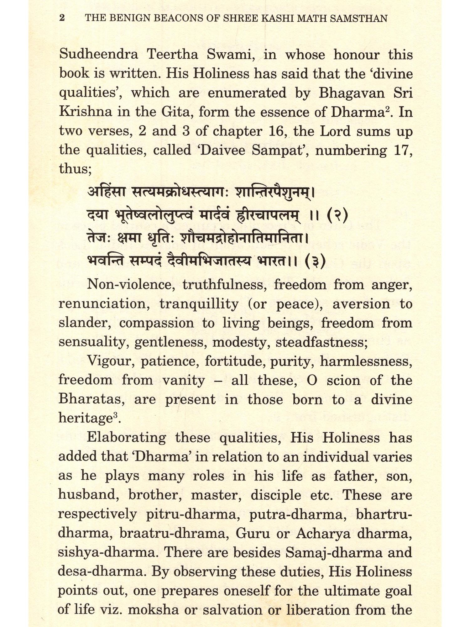 In 2011 I brought out "The Beacon That Beckons' as a tribute to our Dharma Guru Shrimad SudheendraTeertha Swami. He ceased to be with us in his mortal frame from January 17, 2016. His memory abides. We cherish his 'Upadesha' and feel his presence in the institutions he has left us.