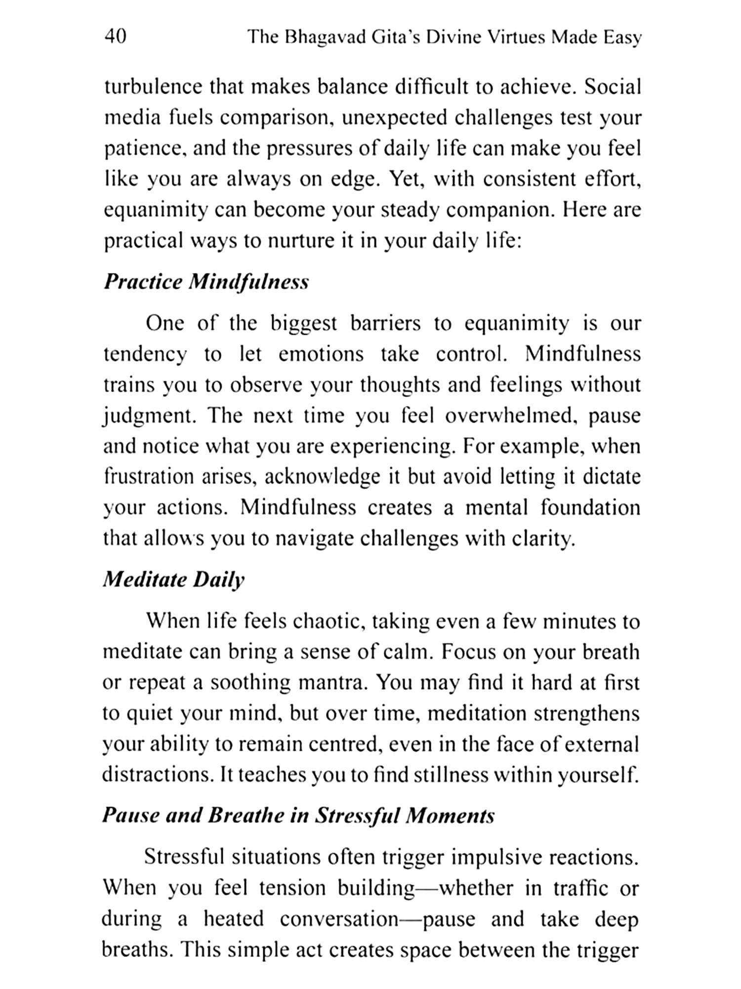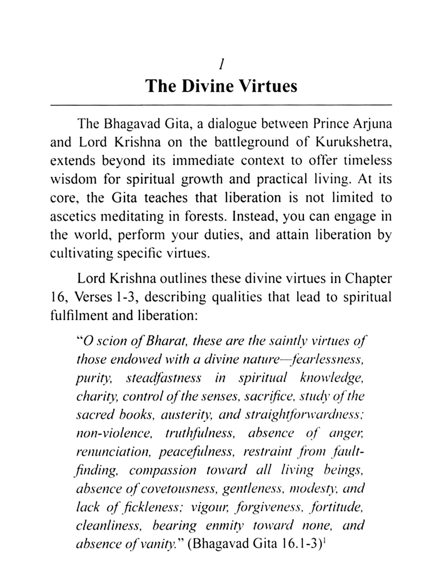 The Bhagavad Gita teaches that virtues like compassion, humility, and truthfulness are not just ideals but guiding principles for inner peace and fulfilment. This book explores these qualities, making them accessible for daily life. Each chapter focuses on a specific virtue, illustrating its relevance through relatable stories and actionable advice.