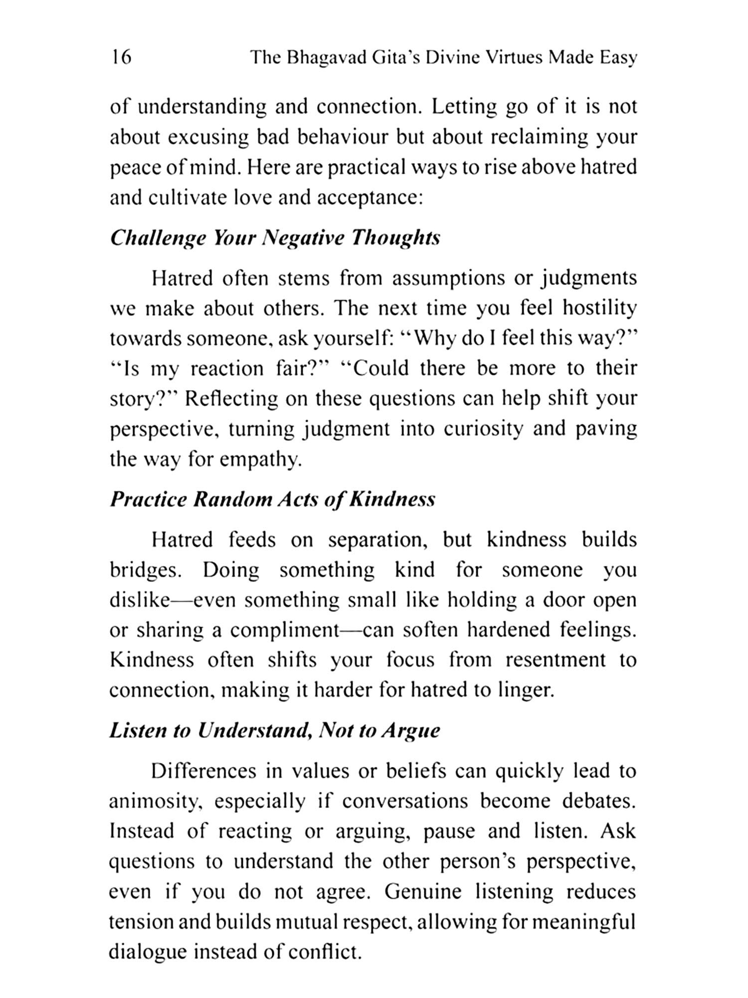 The Bhagavad Gita's Divine Virtues Made Easy is a practical and inspiring guide to living with wisdom, grace, and inner strength. Based on Chapter 16 of the Bhagavad Gita, it explores twenty-four transformative virtues such as compassion, humility, equanimity, and truthfulness-through relatable stories, clear insights, and actionable steps.
