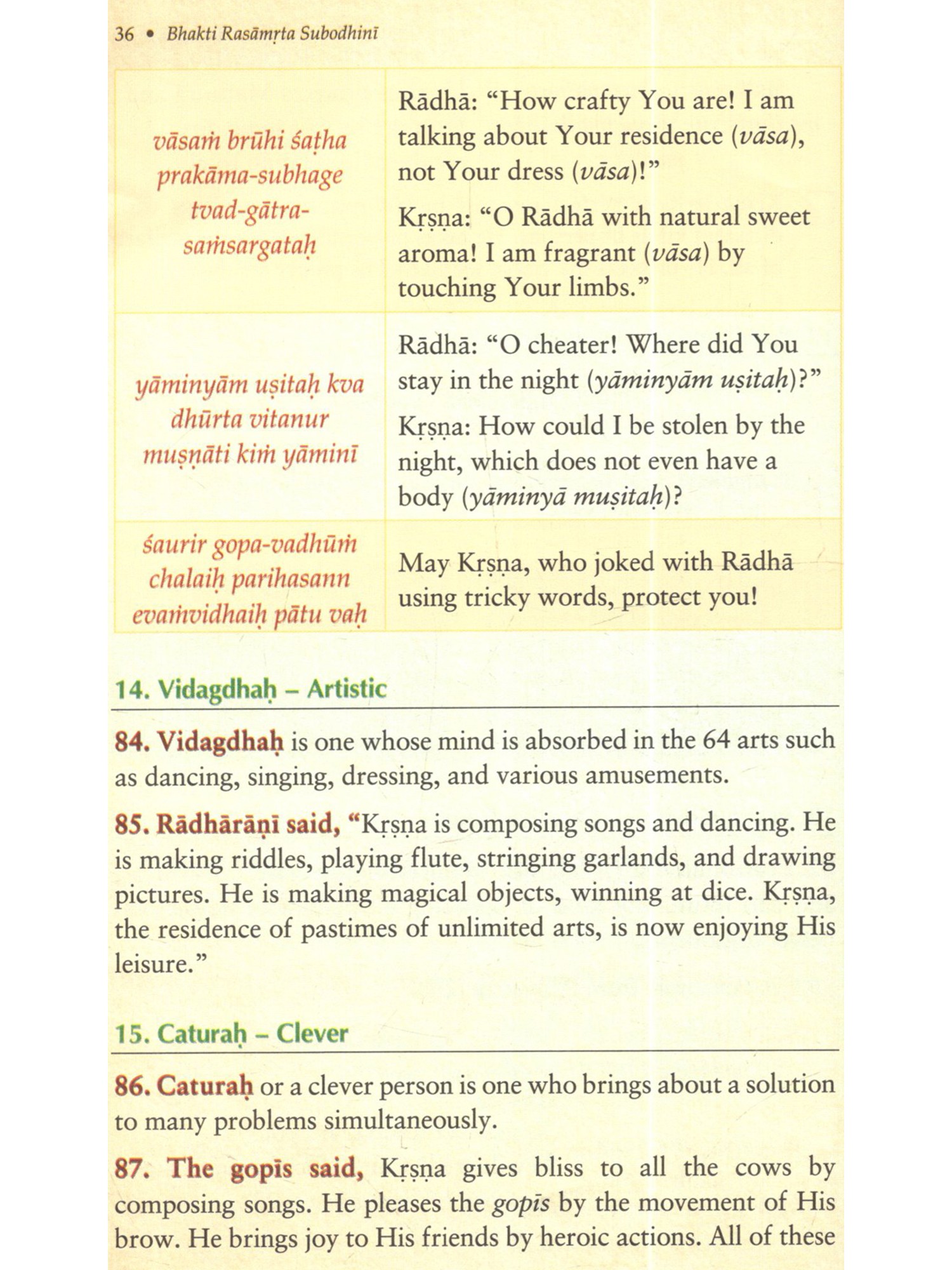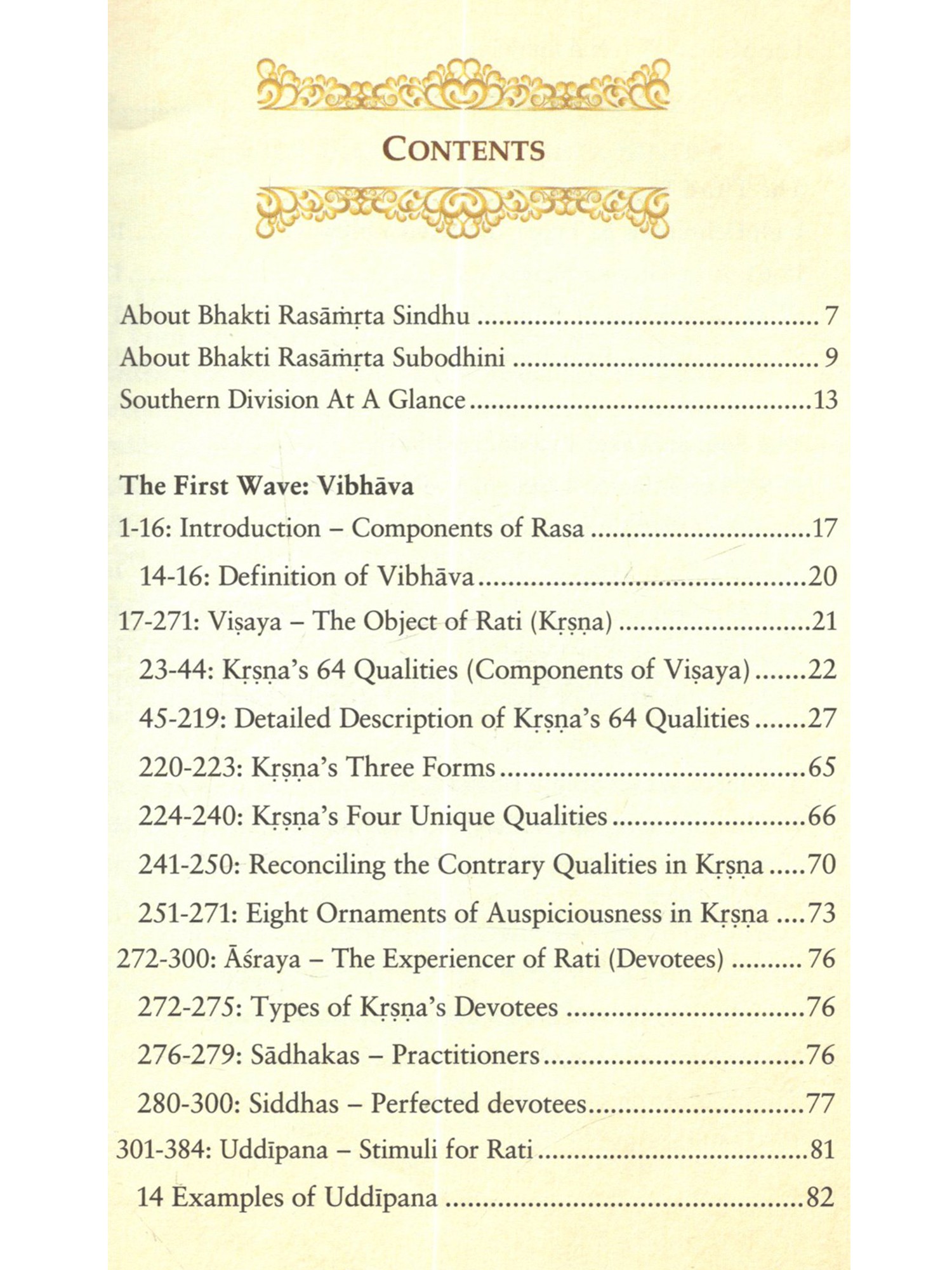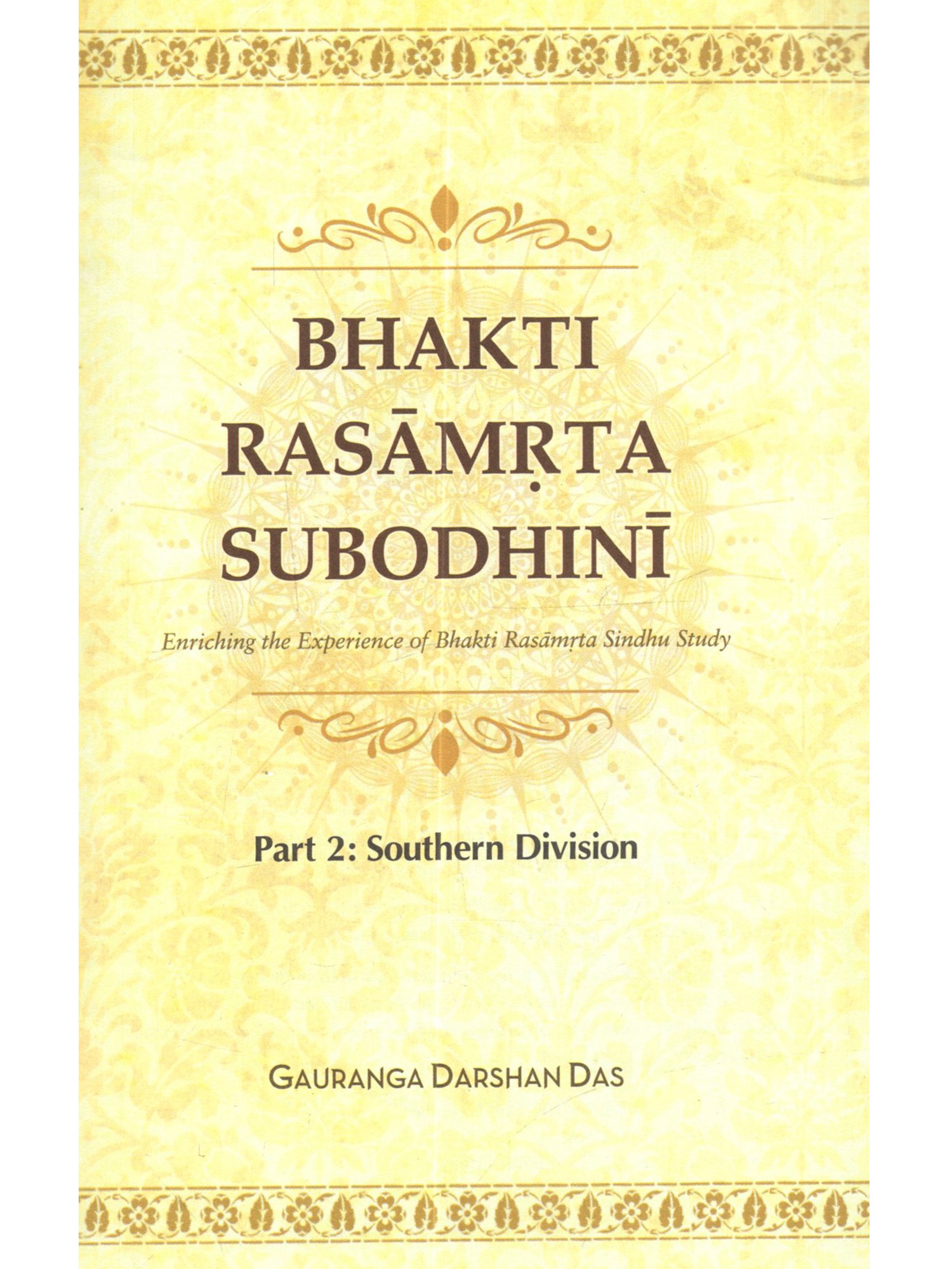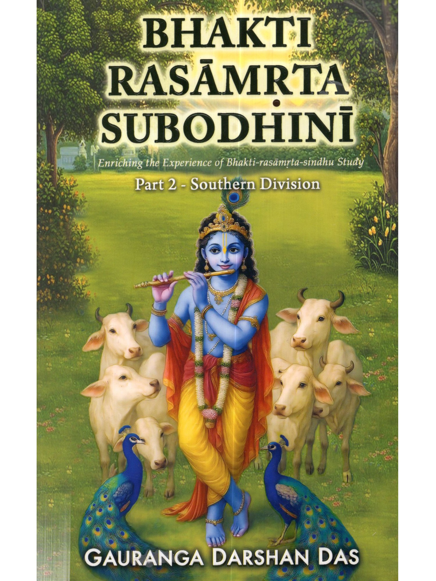 BHAKTI RASAMRTA SUBODHINI Asveteimalle Study Guide to Bhakti-rasampta sindhu Gosvämi's remarkable work Srila Rūpa Bhakti-rasampta-sindhu illustrates the profound philosophy of devotional service and its subtle nuances, and thus takes us on an enlivening journey from the fundamental principles of bhakti practice to its highest levels as exhibited by the eternal associates of Śrī Kṛṣņa in Vrndāvana. Read, recollect and relish the nectarean descriptions of Bhakti-rasämrta-sindhu, along with the explanations of Śrīla Prabhupāda, Śrīla Viśvanātha Cakravarti Thakura and Śrīla Jiva Gosvami, concisely and lucidly presented by Gauranga Darshan Das, to facilitate a deeper understanding and revision for both new students and seasoned readers alike. For our learning to navigate the fascinating ocean of Bhakti Rasamrita Sindhu, this guidebook excels. The author, Gauranga Darshan Das, is rightly renowned for presenting clearcut structural analysis of shastra. The colour in this new version adds to reader delight.