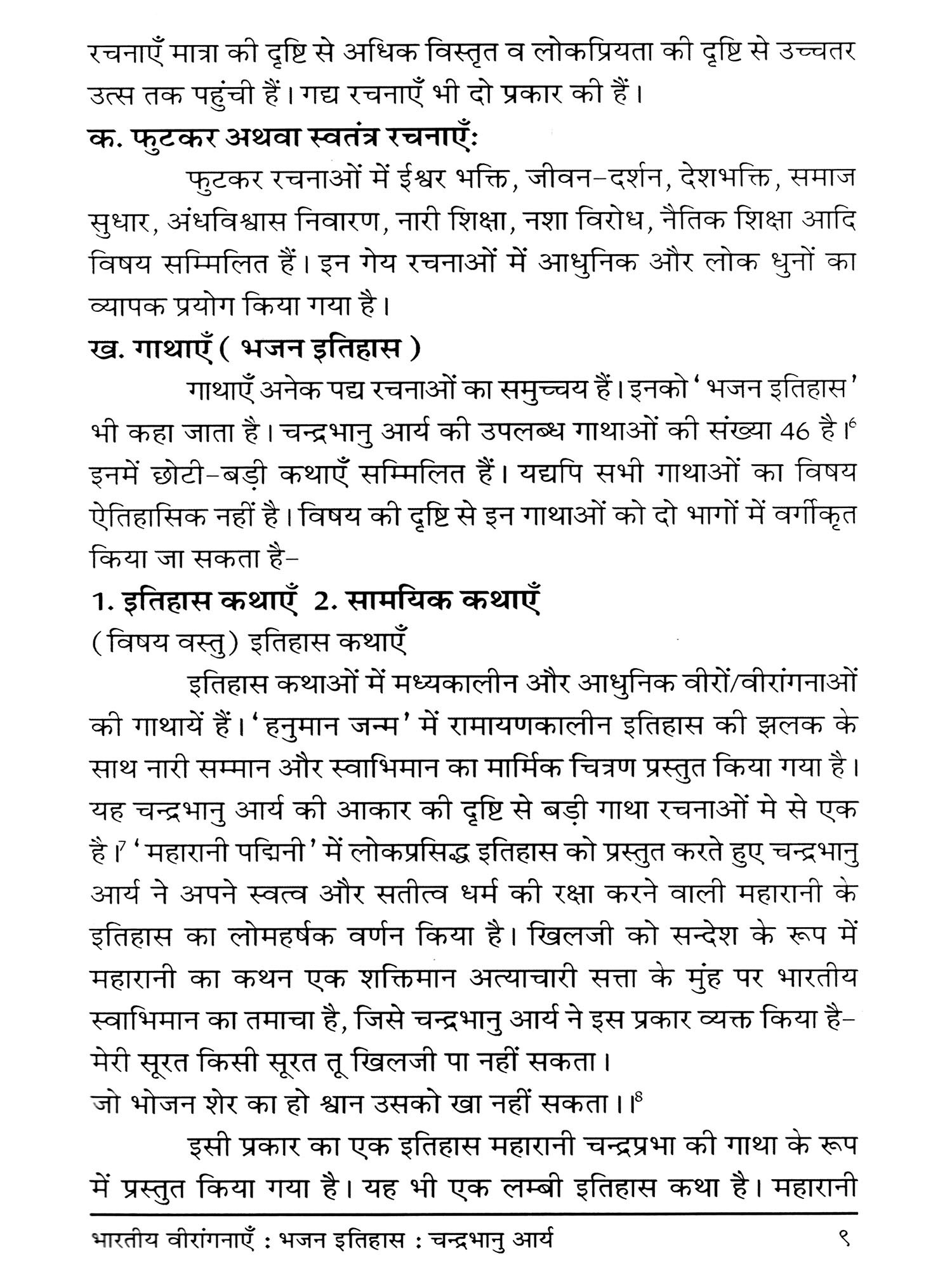 दोनों ही विधाओं में ऐतिहासिक कथाओं का प्रस्तुतीकरण किया गया। भजनोपदेशकों की इतिहास कथाओं में उन प्रसंगों को स्वीकार किया!