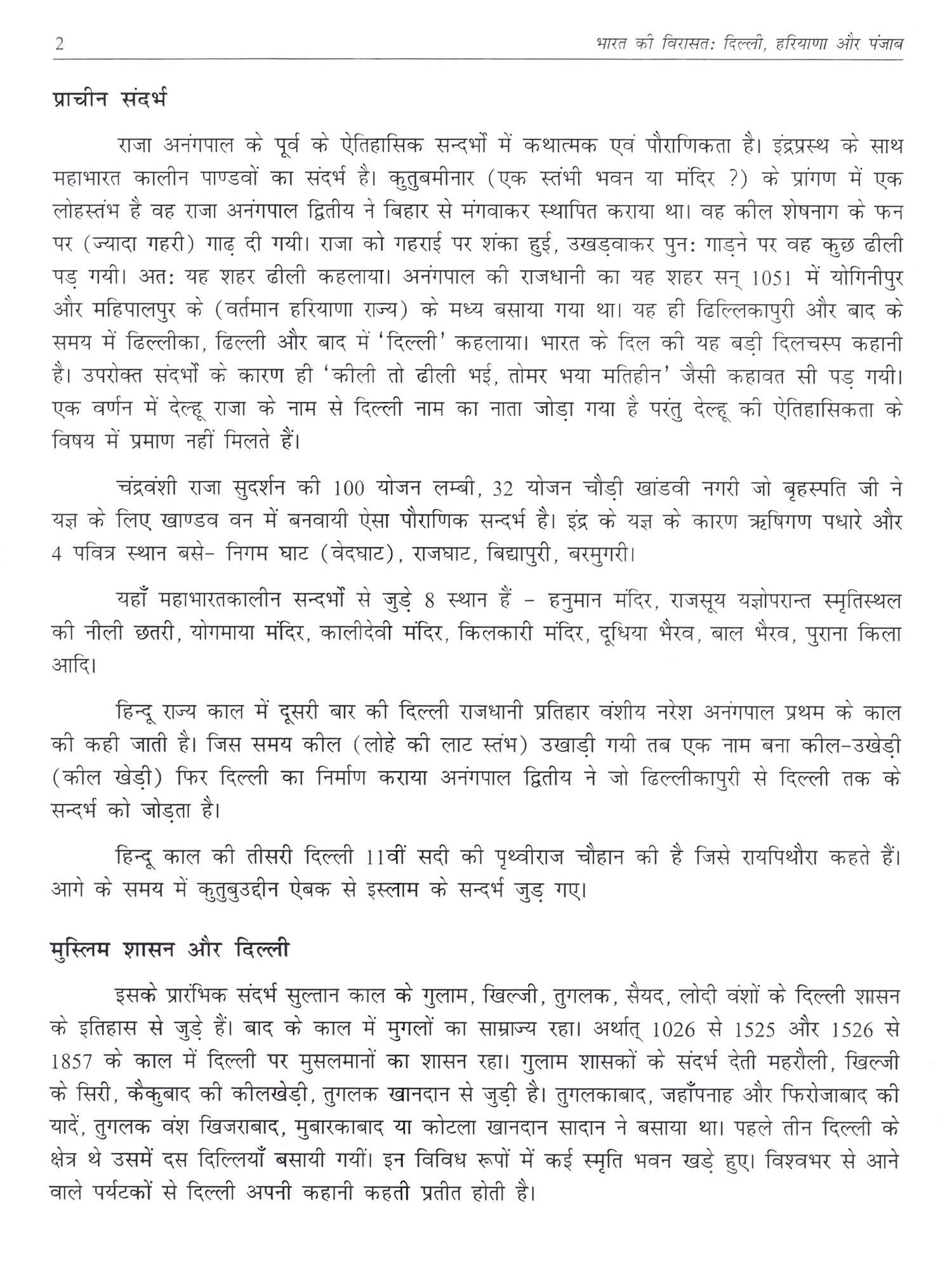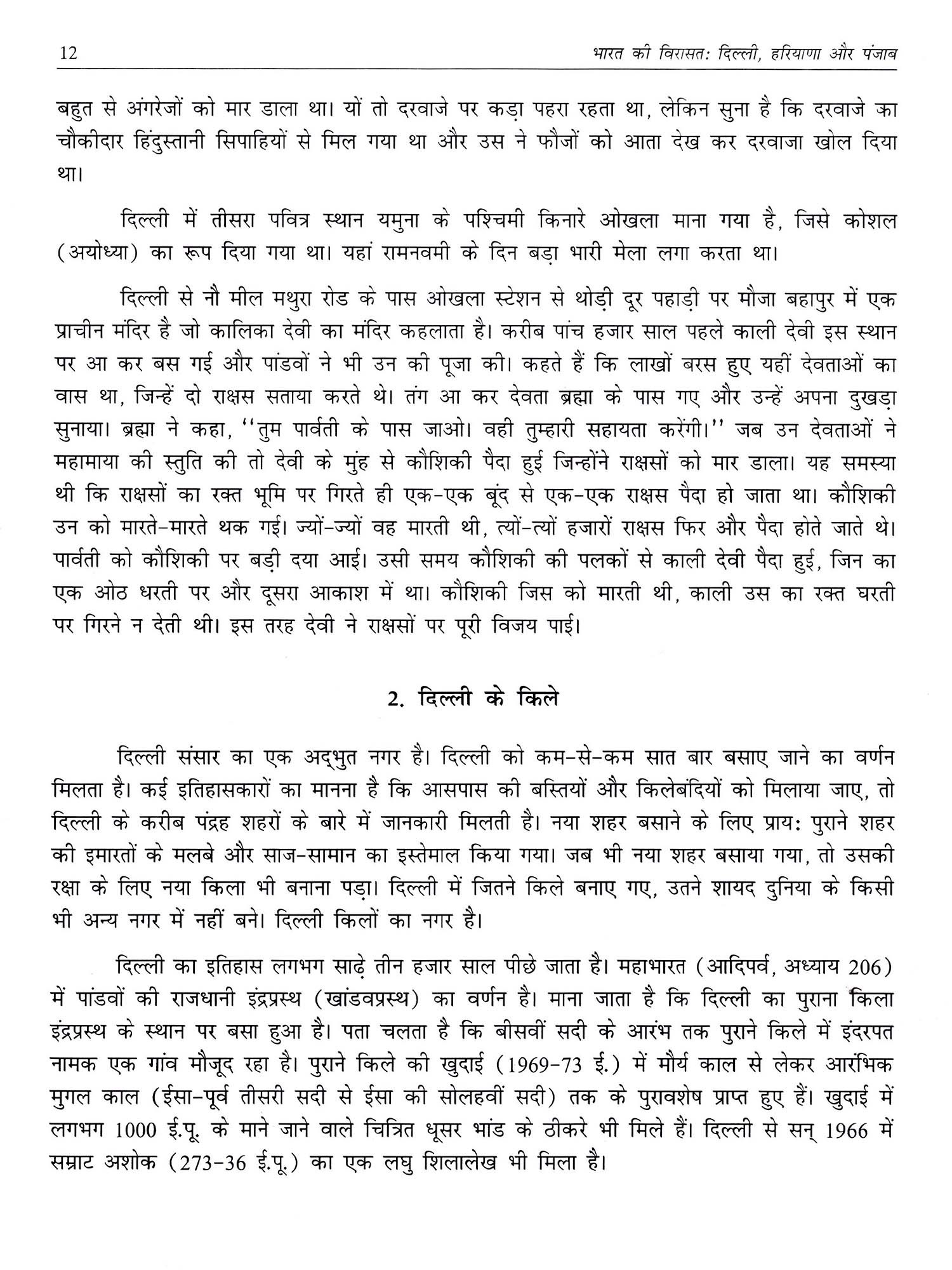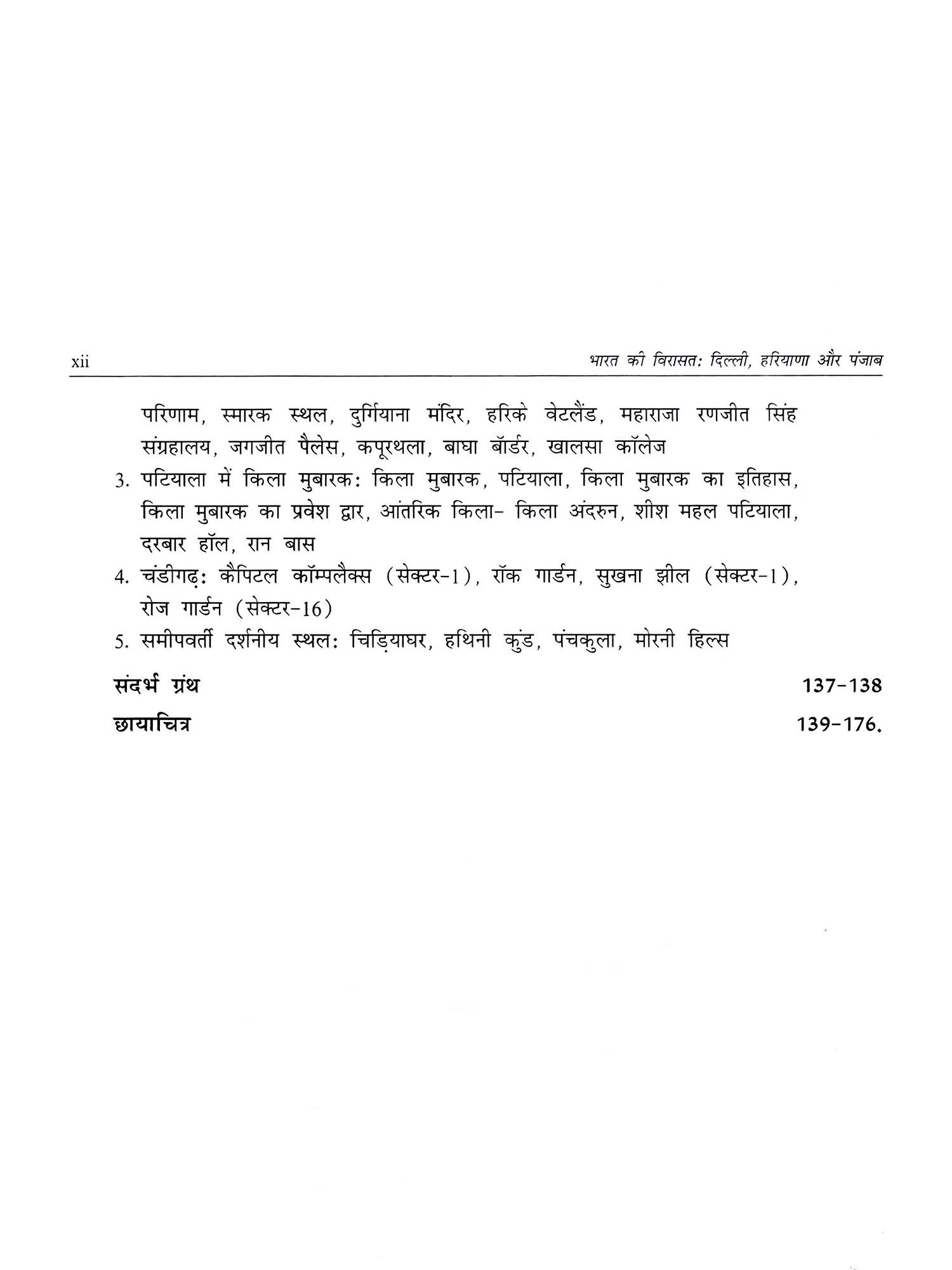 यह पुस्तक भारत की विरासत के श्रृंखला की नवमी कड़ी है जिसमें दिल्ली, हरियाणा एवं पंजाब की सम्पूर्ण विरासत का सोंगांपर्यंग वर्णन किया गया है। दिल्ली, हरियाणा एवं पंजाब की सम्पूर्ण विरासत में संस्कृति, राजनीति एवं धार्मिक तीनों का अद्भुत संगम स्थल है। इसका इतिहास हड़प्पा से लेकर वैदिक, पांडवों की दिल्ली से लेकर मुगल काल तक की सम्पूर्ण गाथाएं वर्षों करती हैं। स्वतंत्रता प्राप्ति पूर्व एवं स्वतंत्रता प्राप्ति के बाद की दिल्ली अनेक उथल-पुथल का सामना करते हुए इतिहास में अपना एक अमिट छाप गड़ी है। ऐसे में पंजाब के स्वर्ण मंदिर की गाथाएँ एवं जलियाँवाला बाग को कैसे भूला जा सकता है। अतः यह पुस्तक अत्यंत प्रशंसनीय एवं पठनीय है।
