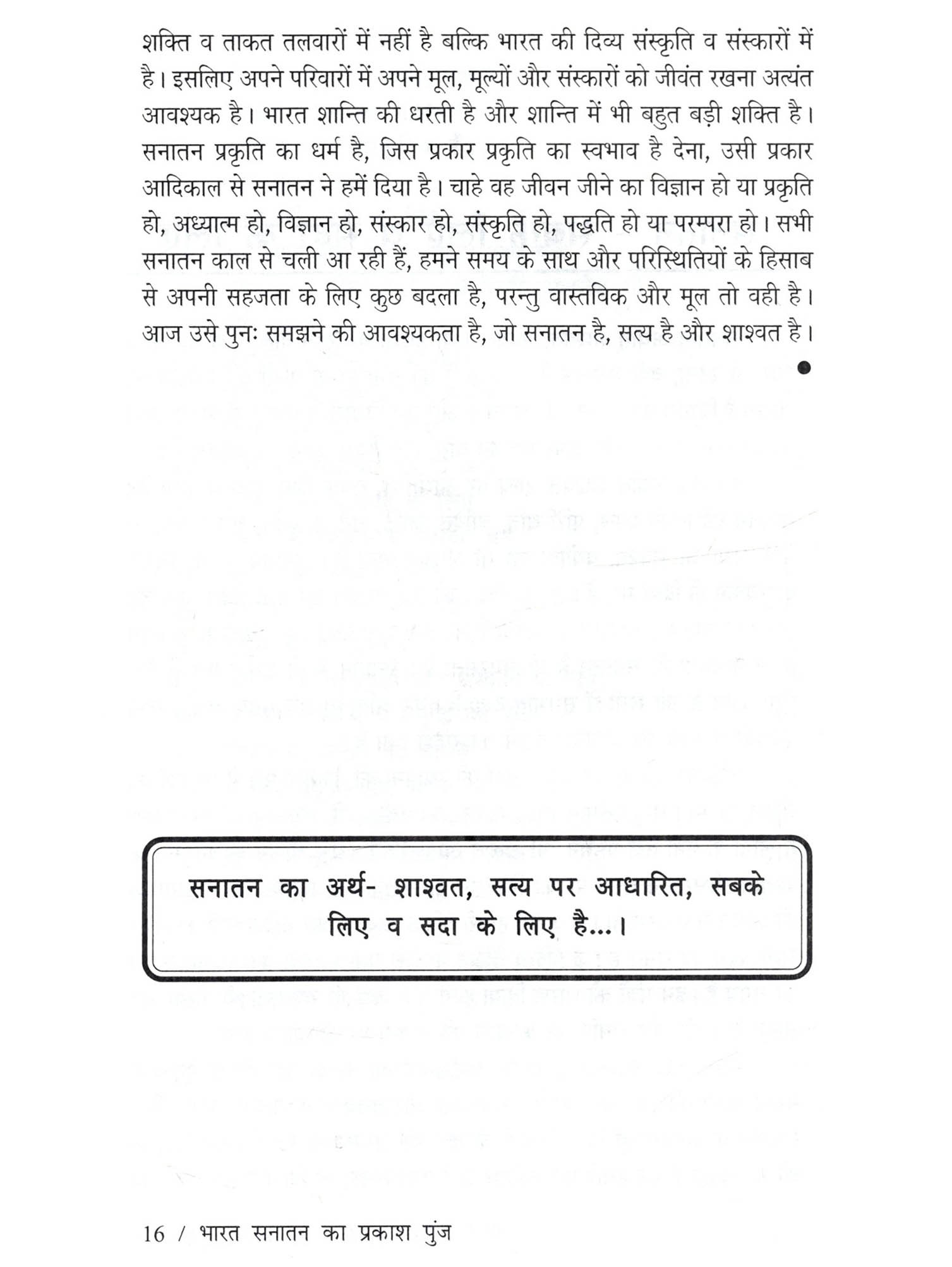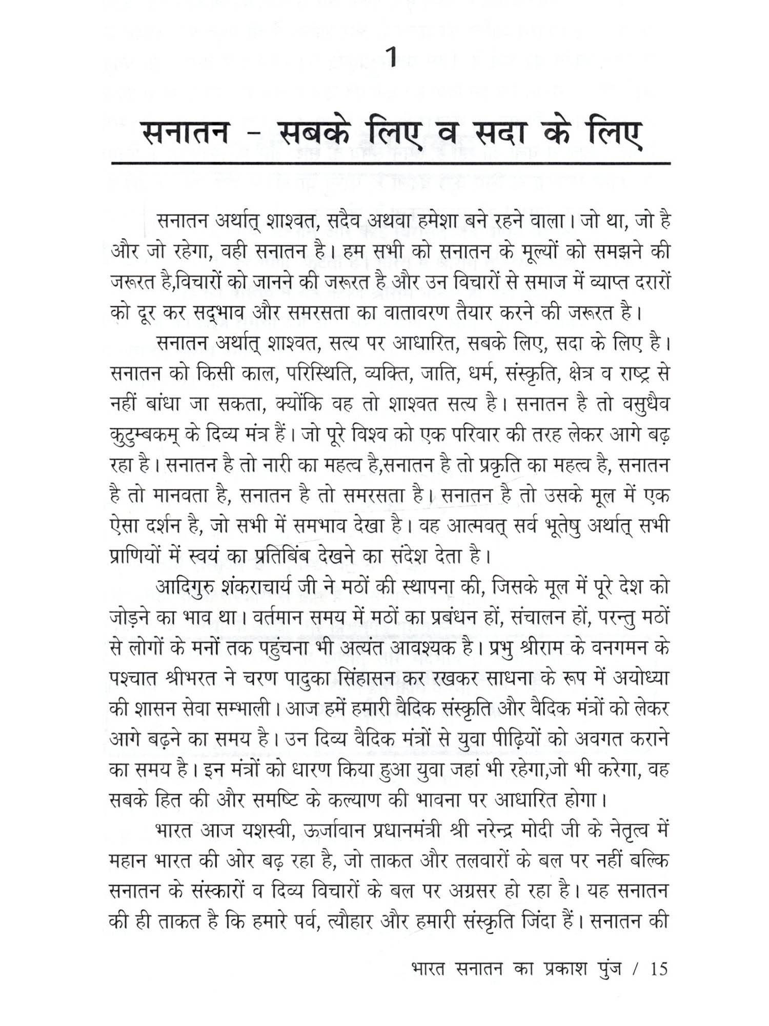 सनातन का अर्थ शाश्वत, सत्य पर आधारित, सबके लिए व सदा के लिए है। सनातन को किसी काल, स्थिति, व्यक्ति, जाति, धर्म, संस्कृति, क्षेत्र एवं राष्ट्र की सीमाओं में नहीं बांधा जा सकता, क्योंकि वह तो अनंत और शाश्वत सत्य है। सनातन है तो वसुधैव कुटुंबकम् के दिव्य मंत्र हैं जो पूरे विश्व को एक परिवार की तरह लेकर आगे बढ़ने का आह्वान करते हैं। सनातन है तो प्रकृति का महत्व है, सनातन है तो मानवता है, सनातन है तो समरसता है, सनातन है तो उसके मूल में एक ऐसा दर्शन है जो सभी में समभाव देखता है। वह आत्मवत् सर्व भूतेषु अर्थात् सभी प्राणियों में स्वयं का प्रतिबिंब देखने का संदेश देता है। सनातन की शक्ति व ताकत तलवारों में नहीं है बल्कि भारत की दिव्य संस्कृति व संस्कारों में है। आज विकसित भारत व विश्वगुरु भारत के संकल्प और समूची मानवता के कल्याण के लिए सनातन को जानने, समझने और जीने की आवश्यकता है।
