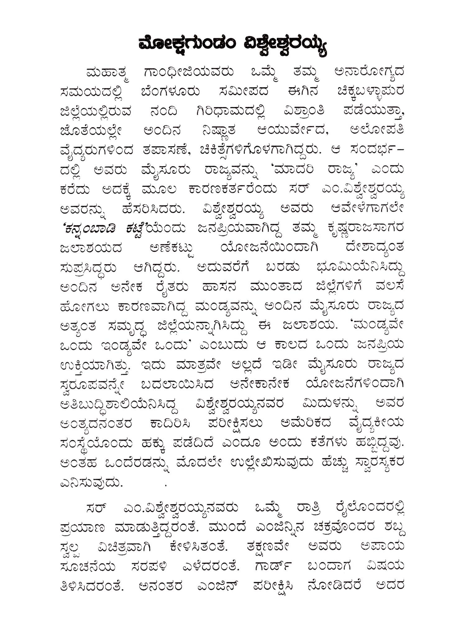 ಸರ್. ಎಂ. ವಿಶ್ವೇಶ್ವರಯ್ಯ- Sir. M. Visvesvaraya-The Great Engineer Sir. M. Visvesvaraya (Kannada)