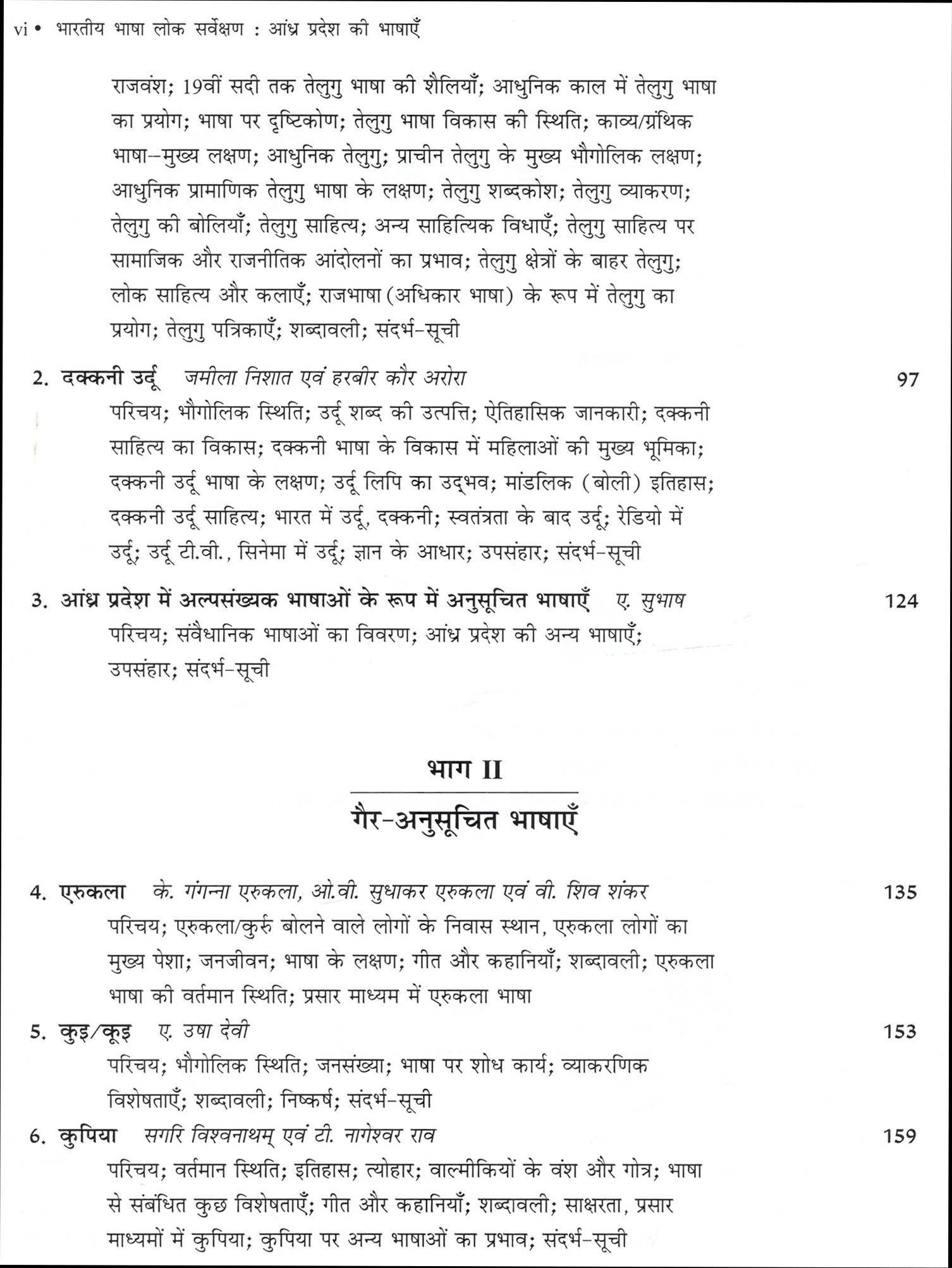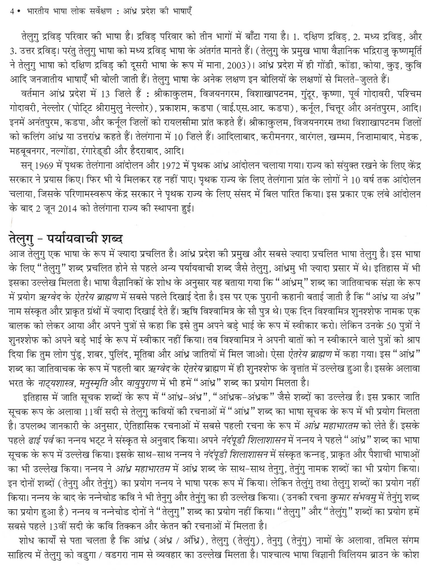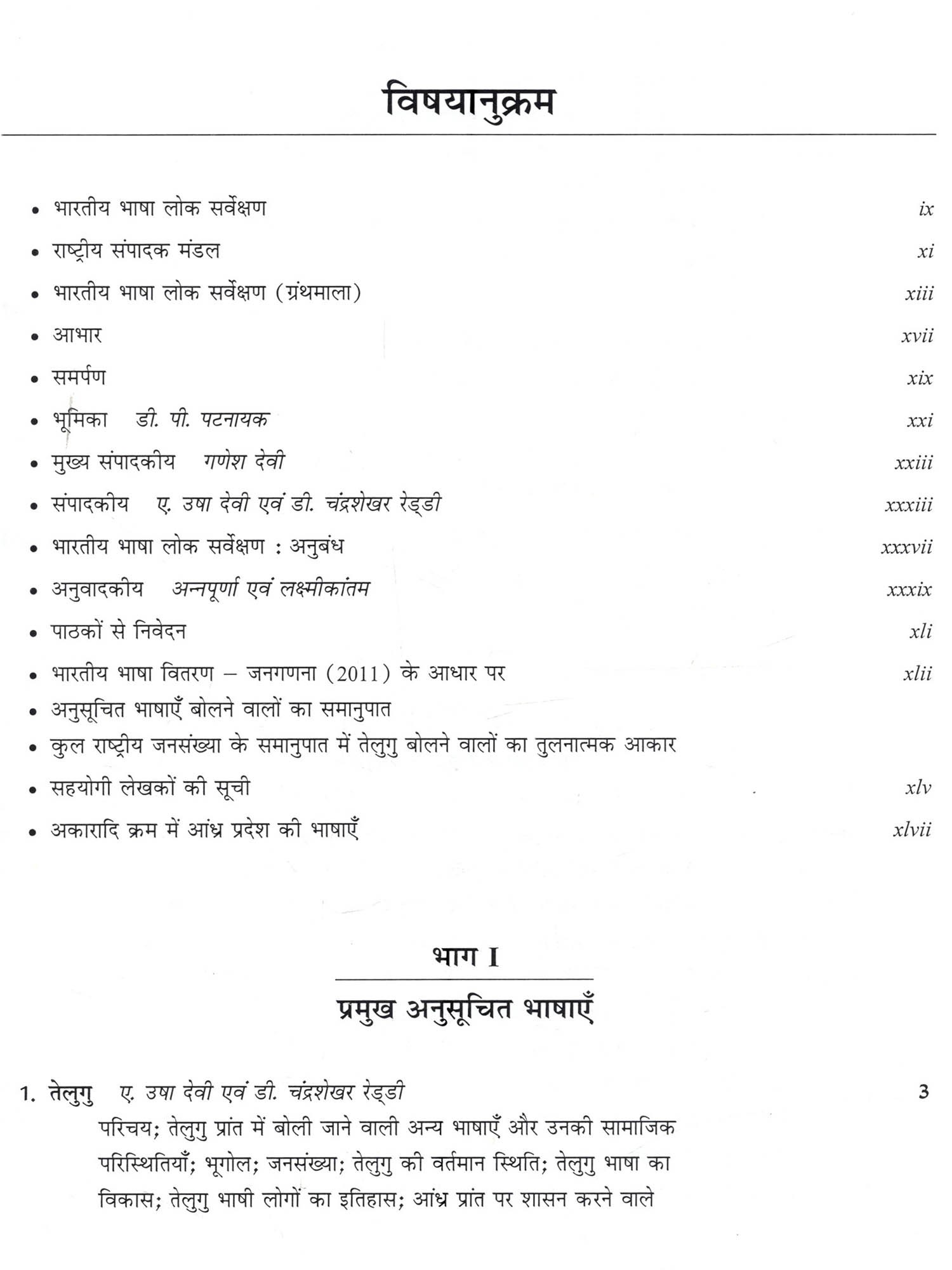आंध्र प्रदेश की भाषाएँ किसी समुदाय की भाषा के निर्माण में कई शताब्दियाँ गुज़र जाती हैं। मानव समुदायों द्वारा निर्मित सभी भाषाएँ हमारी सामूहिक सांस्कृतिक धरोहर हैं। यह सुनिश्चित करना हमारा सामूहिक दायित्व है कि हमारे होते हुए उन्हें "विश्वव्यापी भाषासंहार" का सामना न करना पड़े। इसीलिए यह निर्णय लिया गया कि भारत के लोगों का भाषा सर्वेक्षण किया जाए। भारतीय भाषा लोक सर्वेक्षण भारतीय भाषाओं के सर्वेक्षण का राष्ट्रीय आंदोलन है, विशेष तौर पर खानाबदोशों, तटीय प्रदेशों, पहाड़ी स्थलों, द्वीपों एवं जंगलों में रहने वाले समुदायों और हाशिए के समुदायों की भाषा को समझना और उनका दस्तावेज़ीकरण करना इसका खास मकसद है। यह विद्वानों, लेखकों एवं कार्यकर्ताओं का विभिन्न बोली-समुदायों के सदस्यों के साथ साझेदारी में चलाया गया एक अभियान है। यह सर्वेक्षण एक त्वरित व गैर-पदानुक्रमित सार्वजनिक परामर्श और मूल्यांकन है, जिसका लक्ष्य विशेष रूप से भारत के लुप्तप्राय बोली-समुदायों के विकास के सांस्कृतिक प्रभाव का आकलन करना और सभी के स्वत्व एवं आत्मसम्मान को स्वीकार करना है। भारतीय भाषा लोक सर्वेक्षण का निर्देशन स्वैच्छिक रूप से संगठित राष्ट्रीय संपादक मंडल द्वारा किया गया है। भारतीय भाषा लोक सर्वेक्षण (PLSI) आंध्र प्रदेश की भाषाएँ (खंड 3. भाग ।) में इस प्रदेश में बोली जाने वाली 16 भाषाओं के सर्वेक्षण ब्यौरे के अतिरिक्त यहाँ बसने वाली जातियों, जनजातियों और विभिन्न भाषिक समुदायों की जानकारी सरल एवं प्रवाहमयी भाषा में दी गई है। प्रस्तुत खंड में शामिल भाषाएँ हैं- 1. तेलुगु, 2. दक्कनी उर्दू, 3. आंध्र प्रदेश में अल्पसंख्यक भाषाओं के रूप में अनुसूचित भाषाएँ, 4. एरुकला, 5. कुइ, 6. कुपिया, 7. कुवि, 8. कोंडा/कूबि, 9. कोया, 10. गदब, 11. गोंडी, 12. चेंचु, 13. मुलिया, 14. लंबाडी/बंजारा, 15. सवर, 16. आंध्र प्रदेश में अन्य गैर-अनुसूचित भाषाएँ। यह खंड भाषा की सही समझ और भाषा की क्षमता को जानने का अनूठा अवसर प्रदान करता है। आंध्र प्रदेश में बसने वाले अन्य राज्यों के जातीय समूहों का विश्लेषण भी इस खंड में है। यह राज्य विविधता से परिपूर्ण है, इसलिए इस ग्रंथ में दी गई जानकारी भी ज्ञानवर्द्धक है। तेलुगु इस राज्य की प्रमुख भाषा तथा दक्कनी उर्दू दूसरी प्रमुख भाषा है। राज्य में द्रविड़, इंडो-आर्यन और ऑस्ट्रो-एशियाटिक परिवार की भाषाएँ एवं बोलियाँ बोली जाती हैं। अब तक जिन भाषाओं को मान्यता नहीं मिली है, उन भाषाओं से संबंधित विवरण भी उनके आदिवासी प्रयोक्ताओं द्वारा दी गई जानकारी के आधार पर इस खंड में शामिल किए गए हैं। पाठकों एवं शोधार्थियों की सुविधा हेतु प्रत्येक भाषा के सर्वेक्षण में उदाहरणों एवं उद्धरणों का हिंदी अनुवाद भी दिया गया है। संदर्भ के त