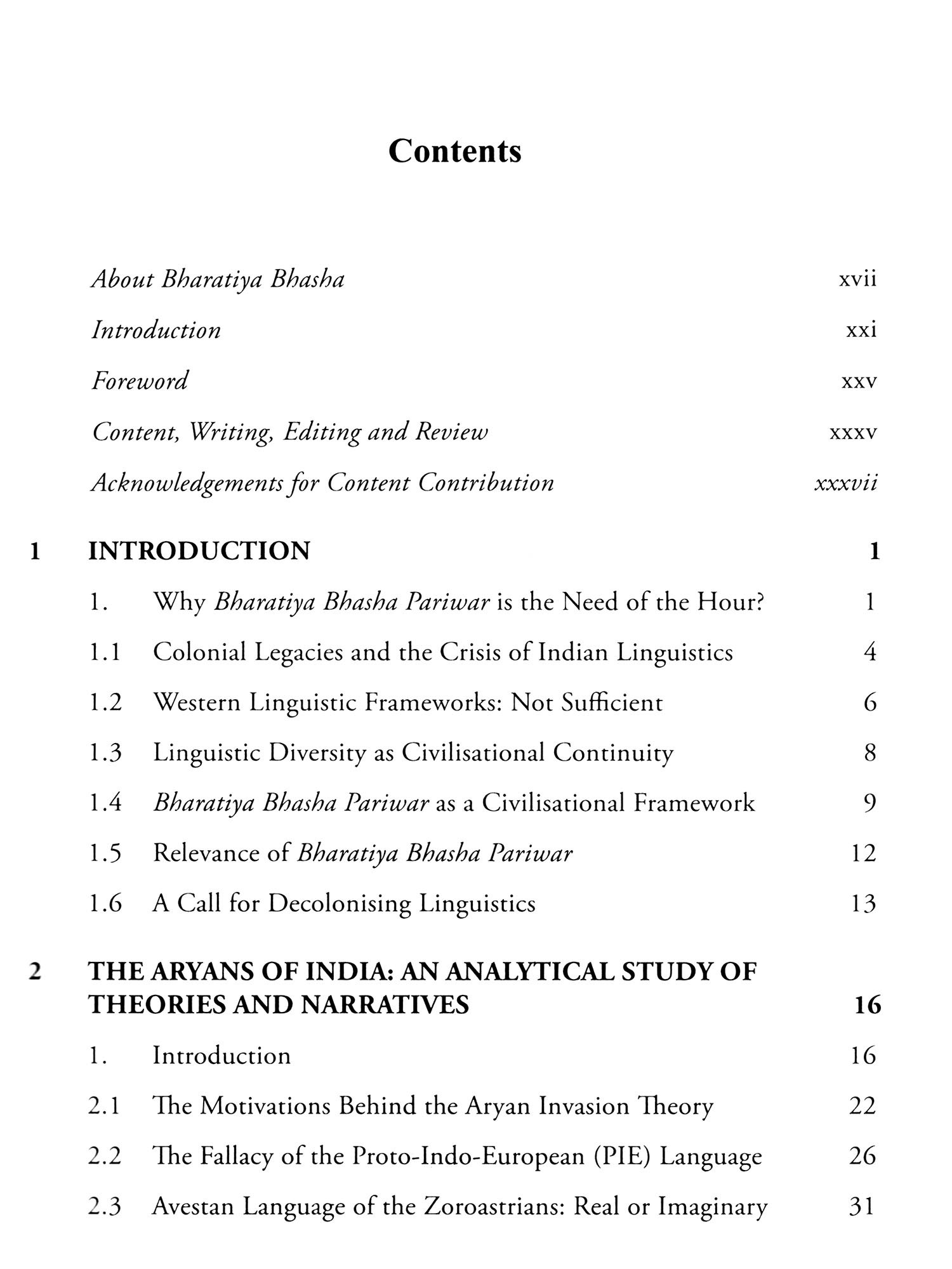 As a scholarly contribution this work, serves to instil a sense of enthusiasm for further pursuits in the domain of the Bharatiya Bhasha Pariwar among researchers across disciplines such as Linguistics, Languages, Cognitive Science, Anthropology, History, etc. as well as contribution towards national policy making and for the better understanding of Indian society, seeking to realign India's language discourse with its own enduring truth.