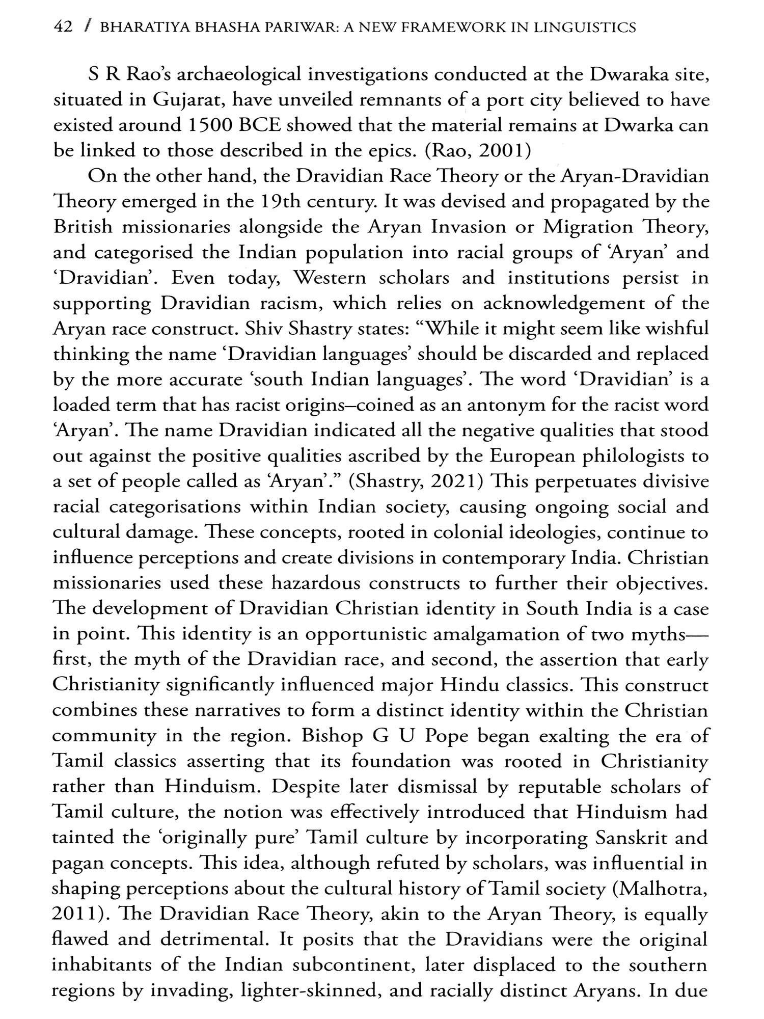 This work marks a step toward rethinking science of language within the Indian knowledge tradition. It seeks to re-anchor Indian linguistics in its native intellectual heritage from the algorithmic precision of Panini to the metaphysical richness of Tamilakam's Sangam Literature, from oral grammars to poetic norms across centuries. The aim is not to reject global methods, but to relocate their application within a culturally resonant framework, one that honours the depth, diversity, and importantly, unity of Indian languages. The experts contributed in this volume, across disciplines and generations, have brought together a formidable body of evidence to demonstrate that India's linguistic multiplicity is not a fragmentation, but a federation; not a challenge, but a testimony to its civilisational strength. Drawing from linguistic, anthropological, archaeology, genetical, literary, astronomical, mathematical and philosophi evidences, this book makes a compelling case for linguistic decolonisation, not by denial, but by rediscovery.