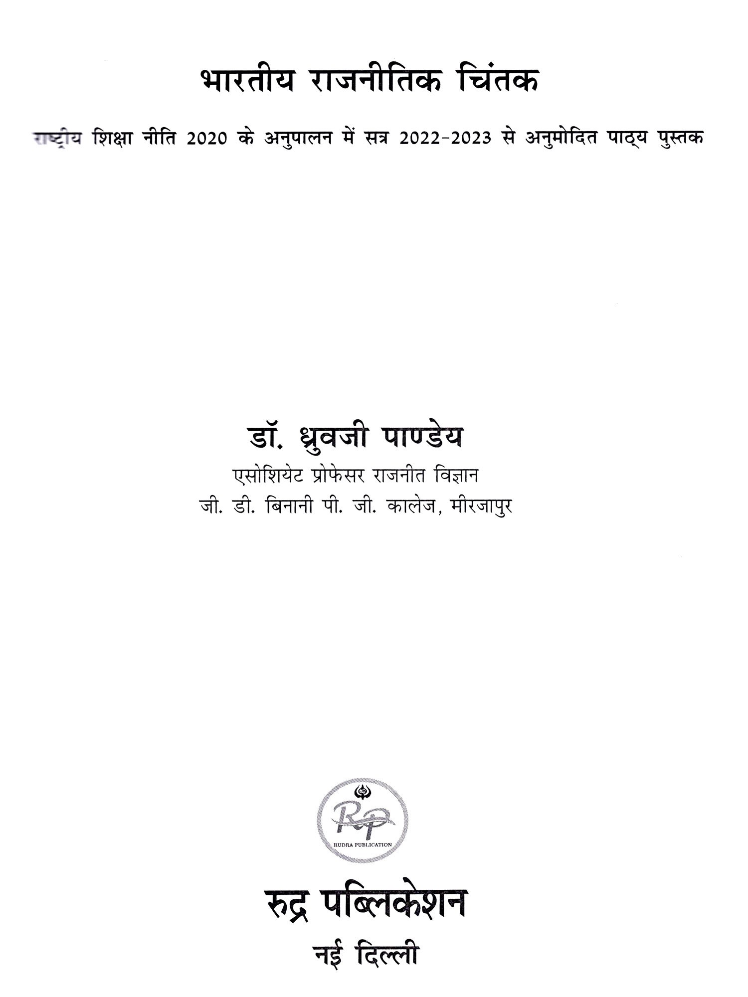 भारतीय राजनीतिक चिंतक: Bharatiya Rajneetik Chintak (Approved Textbook for the Academic Year 2022-2023 in Compliance with the National Education Policy 2020)