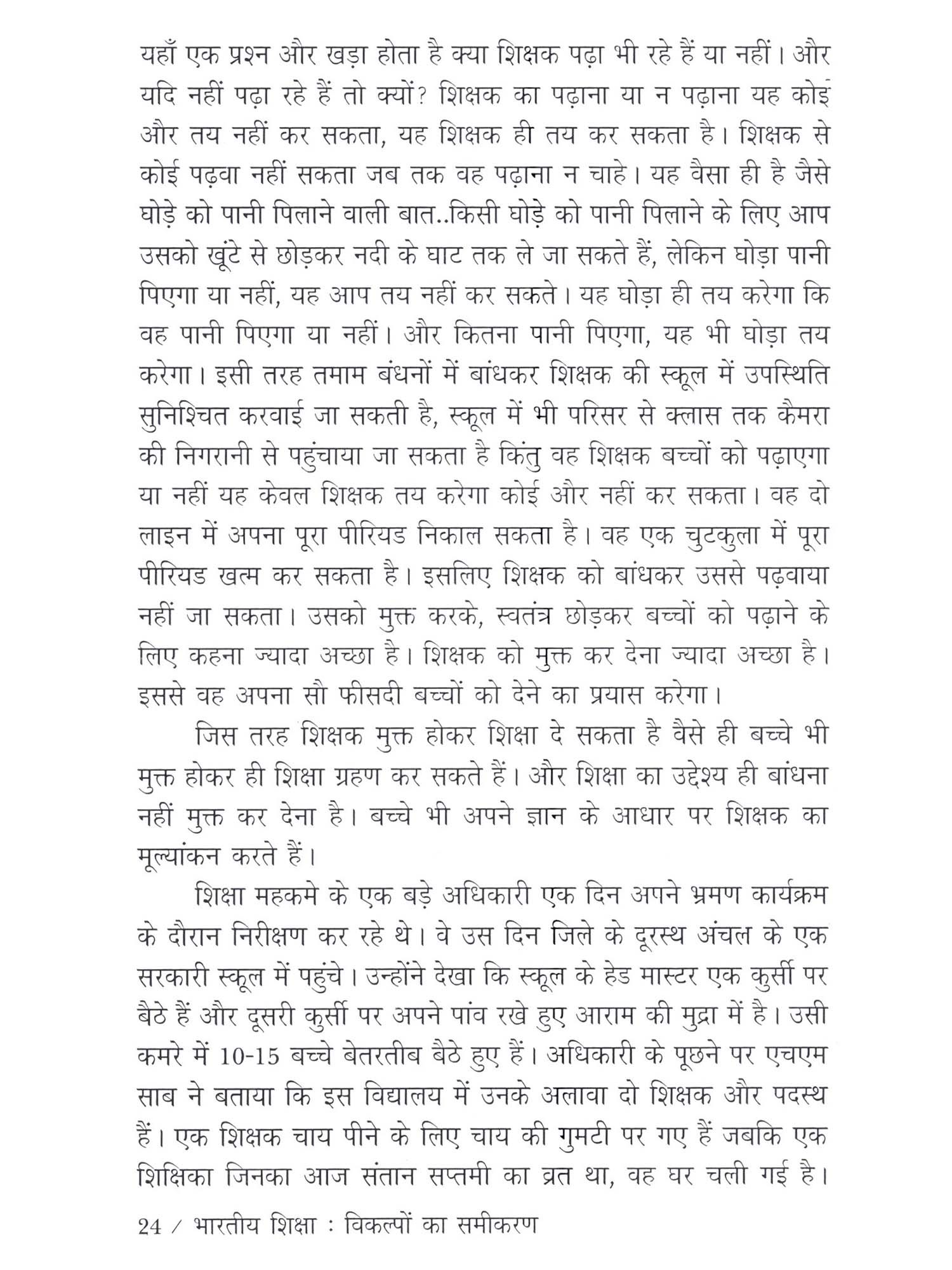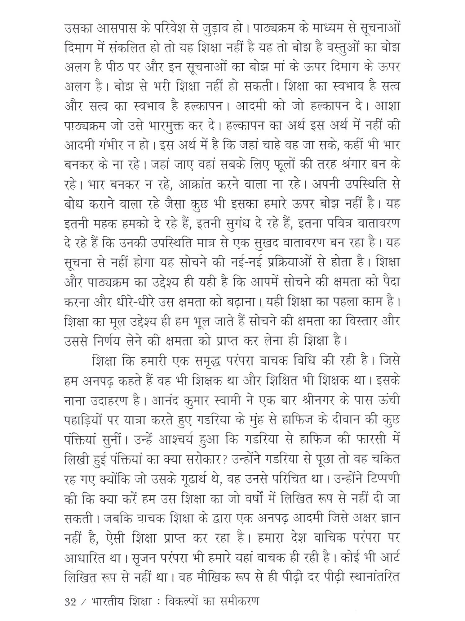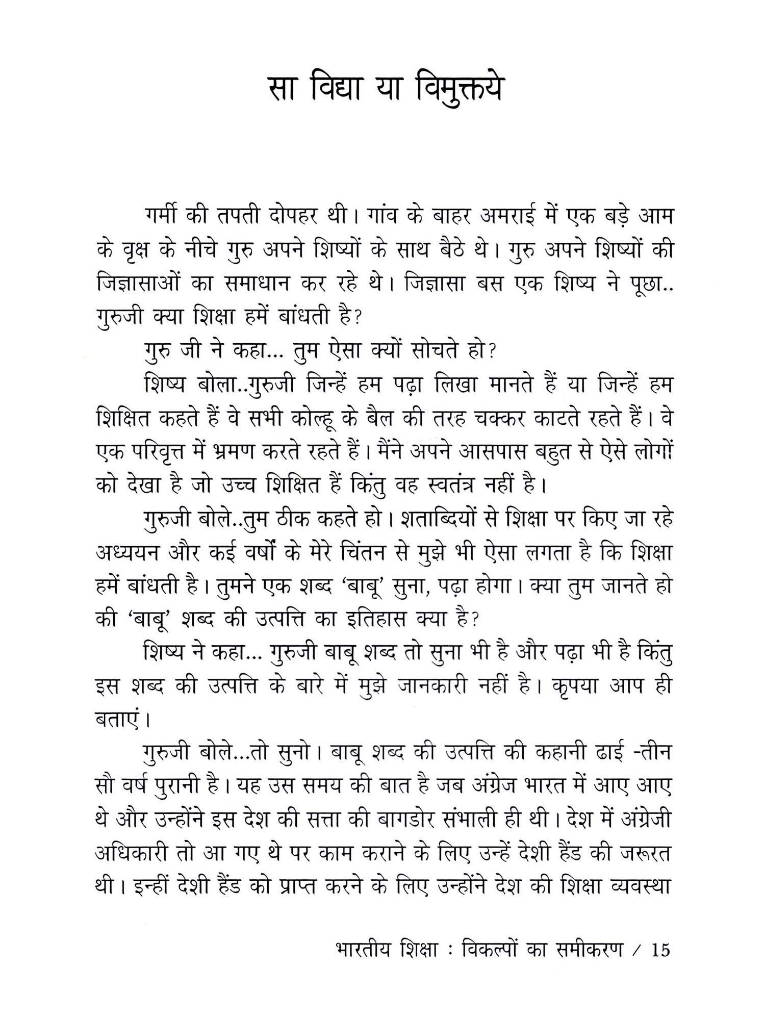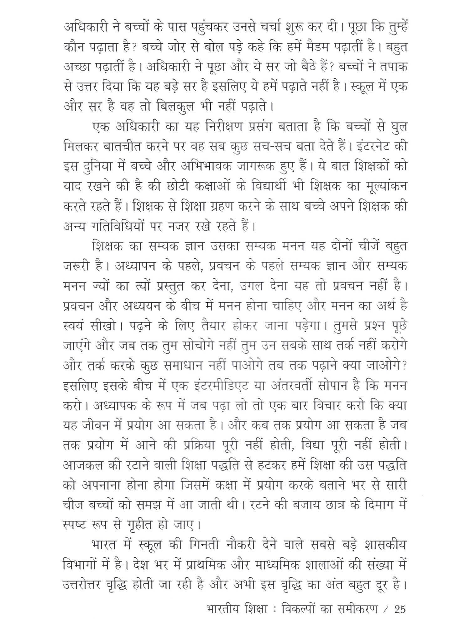 स्वयं को और अपने परिगत को जानने की जिज्ञासा मनुष्य को विवेकशील, बौद्धिक और संवेदनशील बनाने का एक विशेष जरिया रही है। मानवीय सभ्यता का संपूर्ण विकास इसी जिज्ञासा का परिणाम है। इस जिज्ञासा के समाधान का सिलसिला ही शिक्षा है। शिक्षा प्रणाली को व्यवस्थित करना ही शिक्षा शास्त्र है। भारतीय शिक्षा प्रणाली विश्व की प्राचीन और श्रेष्ठ प्रणालियों में से एक है। यह प्रणाली परिवर्तित सामाजिक संदभों में अपना स्वरूप बदलती रही है। अजीत अवस्थी की रुचि शिक्षा प्रणाली की गतिशीलता में निहित आशयों और संदभों की तलाश करने में सदैव समुत्सुक रही है। और इसी समुत्सुकता का परिणाम यह पुस्तक है। इस पुस्तक में भारतीय शिक्षा प्रणाली के ऐतिहासिक संदर्भ तो हैं ही किंतु इसमें लेखक कुछ अपने विकल्प भी शिक्षा-दर्शन के मद्देनजर प्रस्तुत करने में अपनी मौलिक चिंतन दृष्टि के लिए अवसर निकालने में समर्थ हुआ है। इसलिए यह पुस्तक शिक्षा केंद्रित तमाम पुस्तकों के बीच अपने छोटे-से कलेवर में भी महत्वपूर्ण है। भाषा प्रभावशाली है और कहन आत्मीय है। आशा है विद्वतजनों का इस पुस्तक को आशीर्वाद प्राप्त होगा..