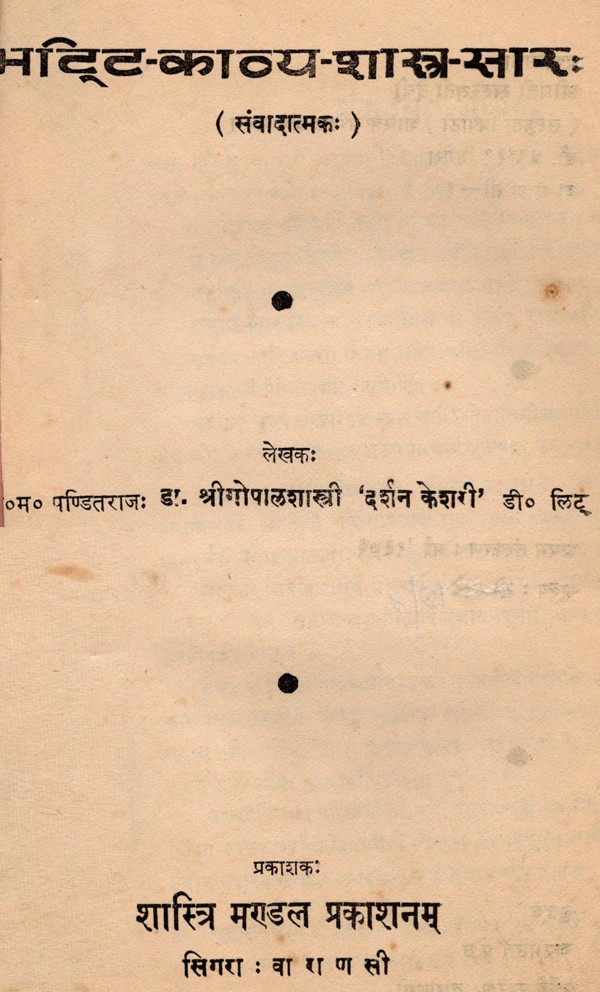 भट्टि-काव्य-शास्त्र-सारः Bhatti-Kavya-Shastra-Sarrah- Conversational (An Old and Rare Book Only 1 Available)