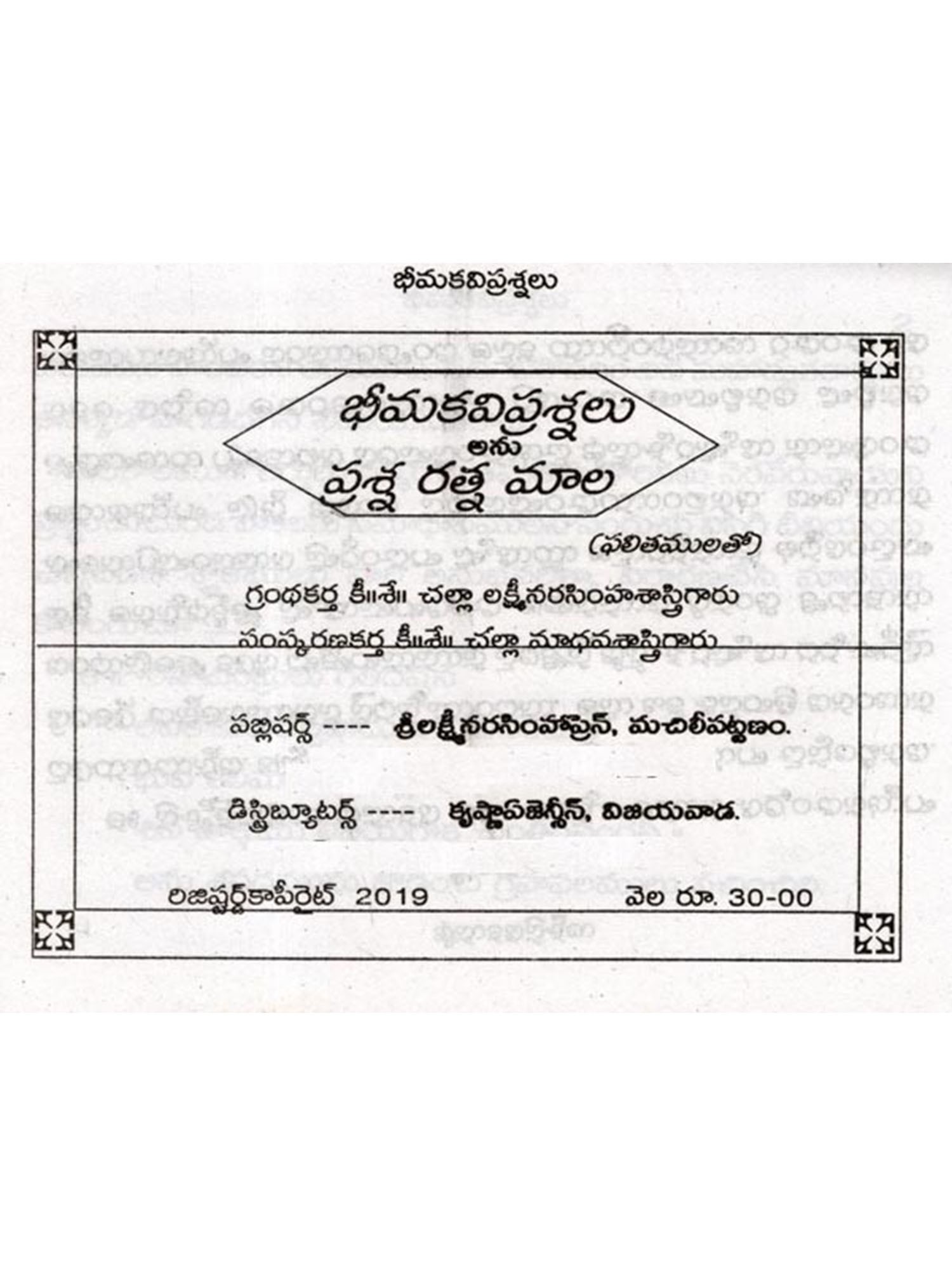 పూర్వ కాలామృతము- Poorva Kaalaamrutamu: with Inoculation, Astrology (Telugu)