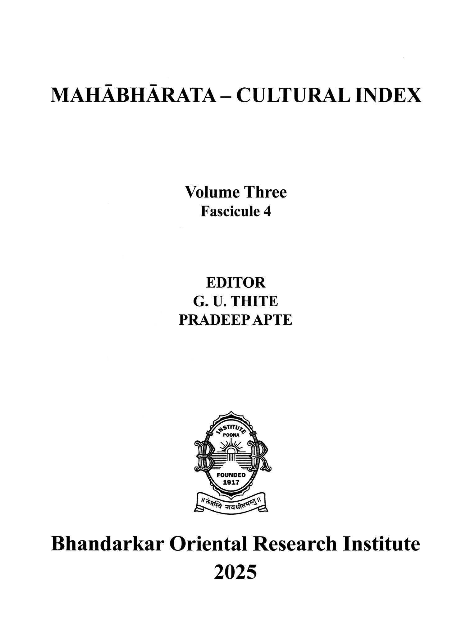 I am pleased to present the fourth fascicule of the third volume of the Mahabharata- Cultural Index, containing the detailed entry on Bhima, one of the central and most dynamic figures of the epic. This fascicule records numerous details of Bhima, all documented with scholarly precision from the Critical Edition of the Mahabharata.
