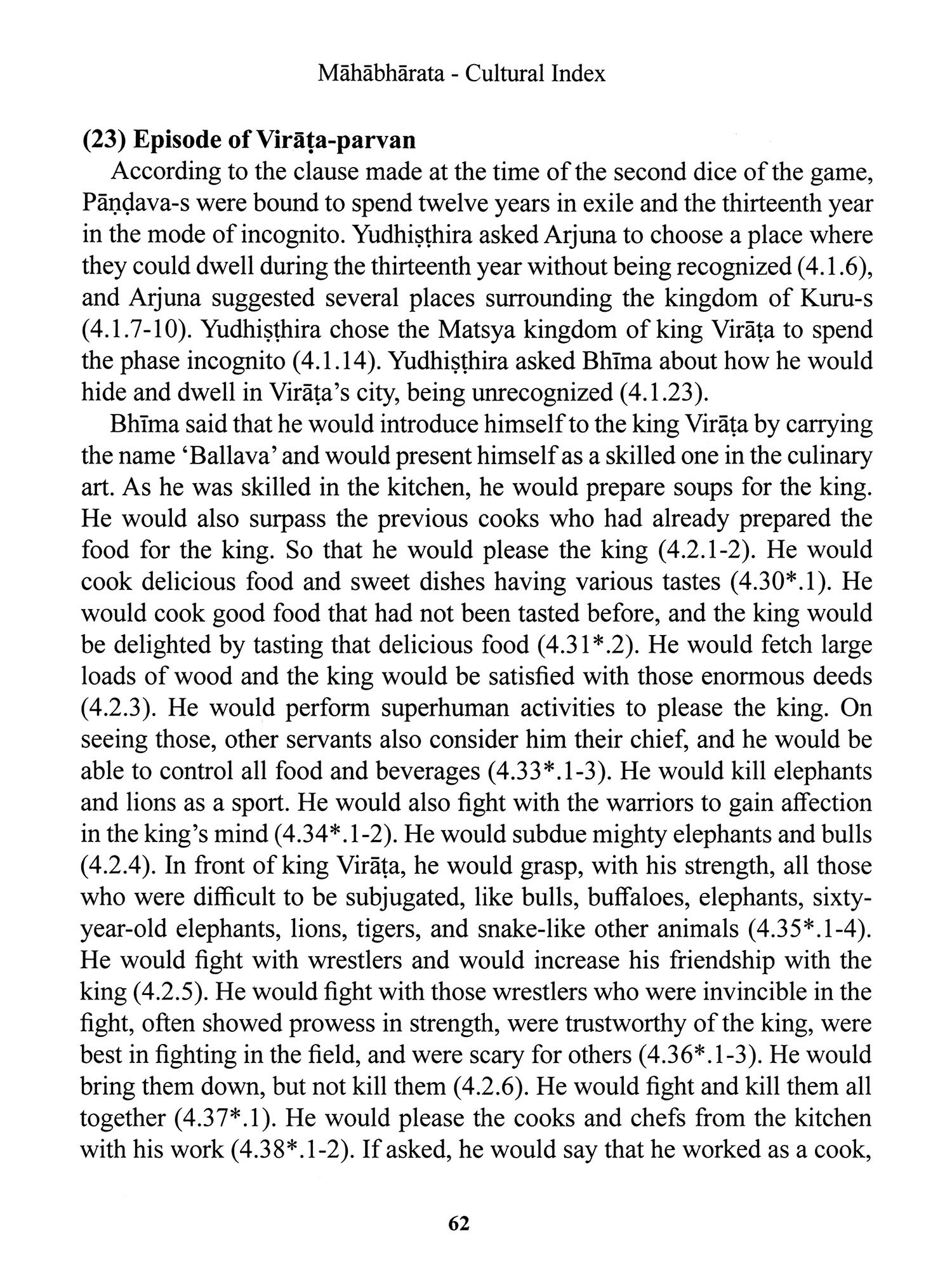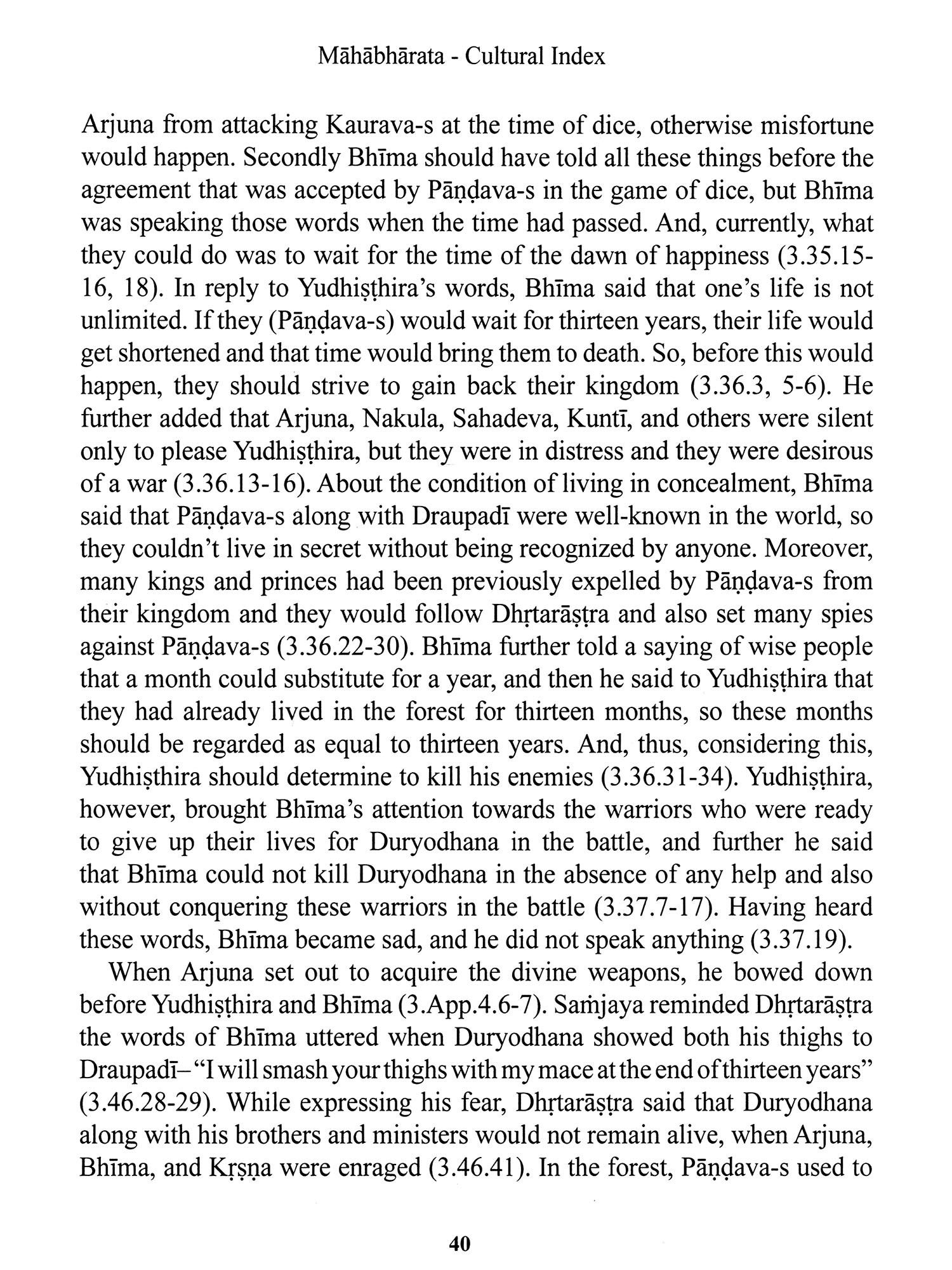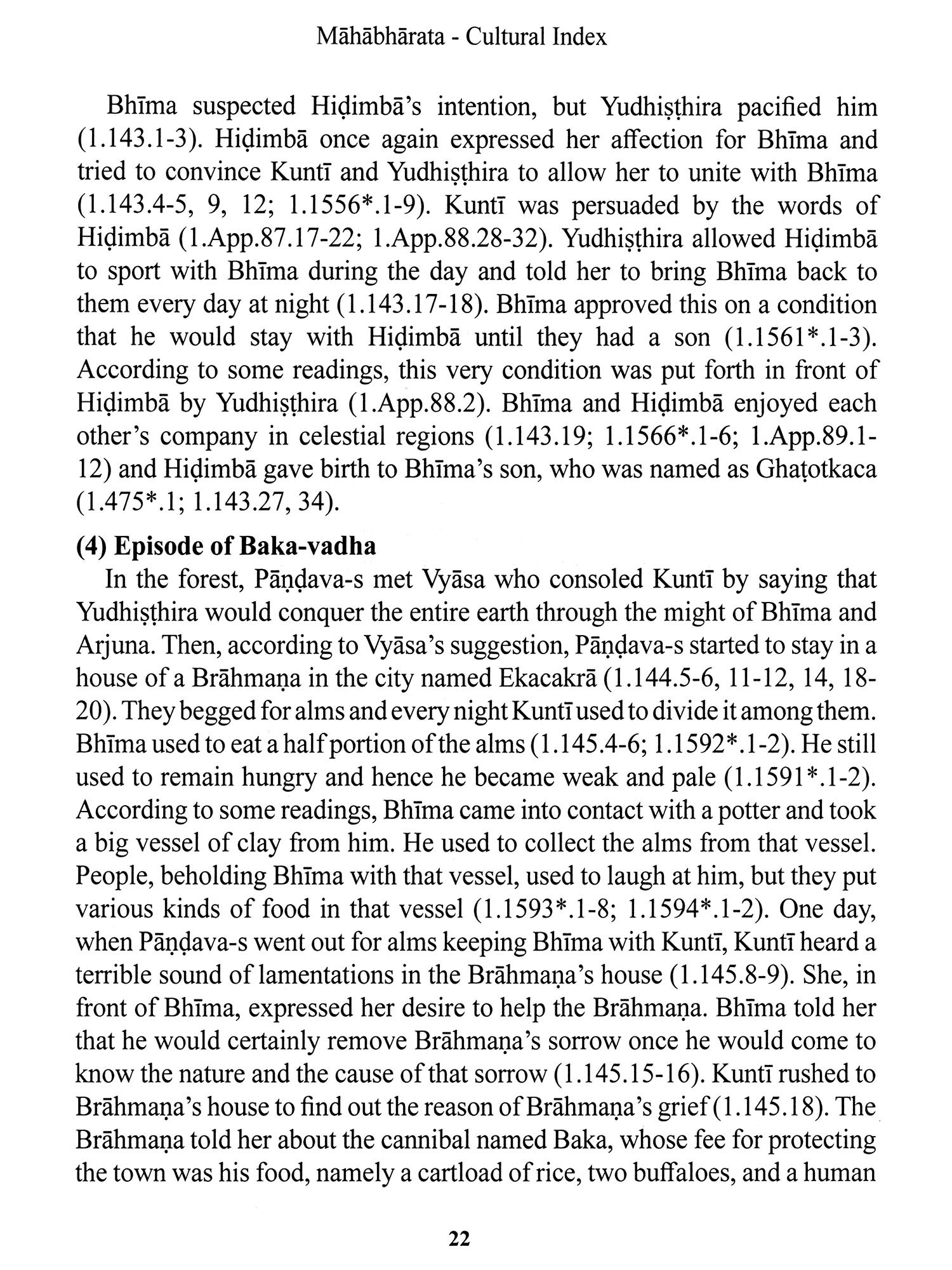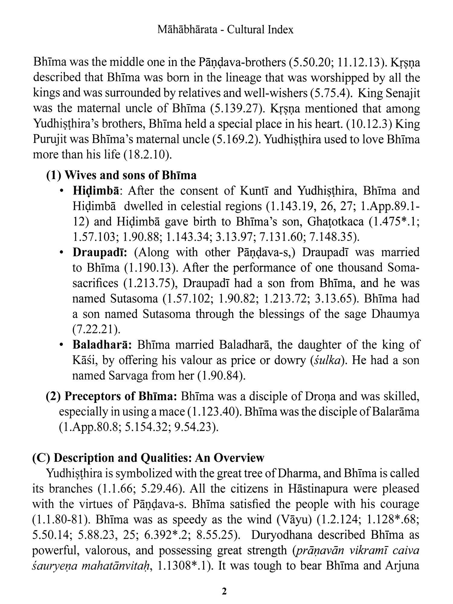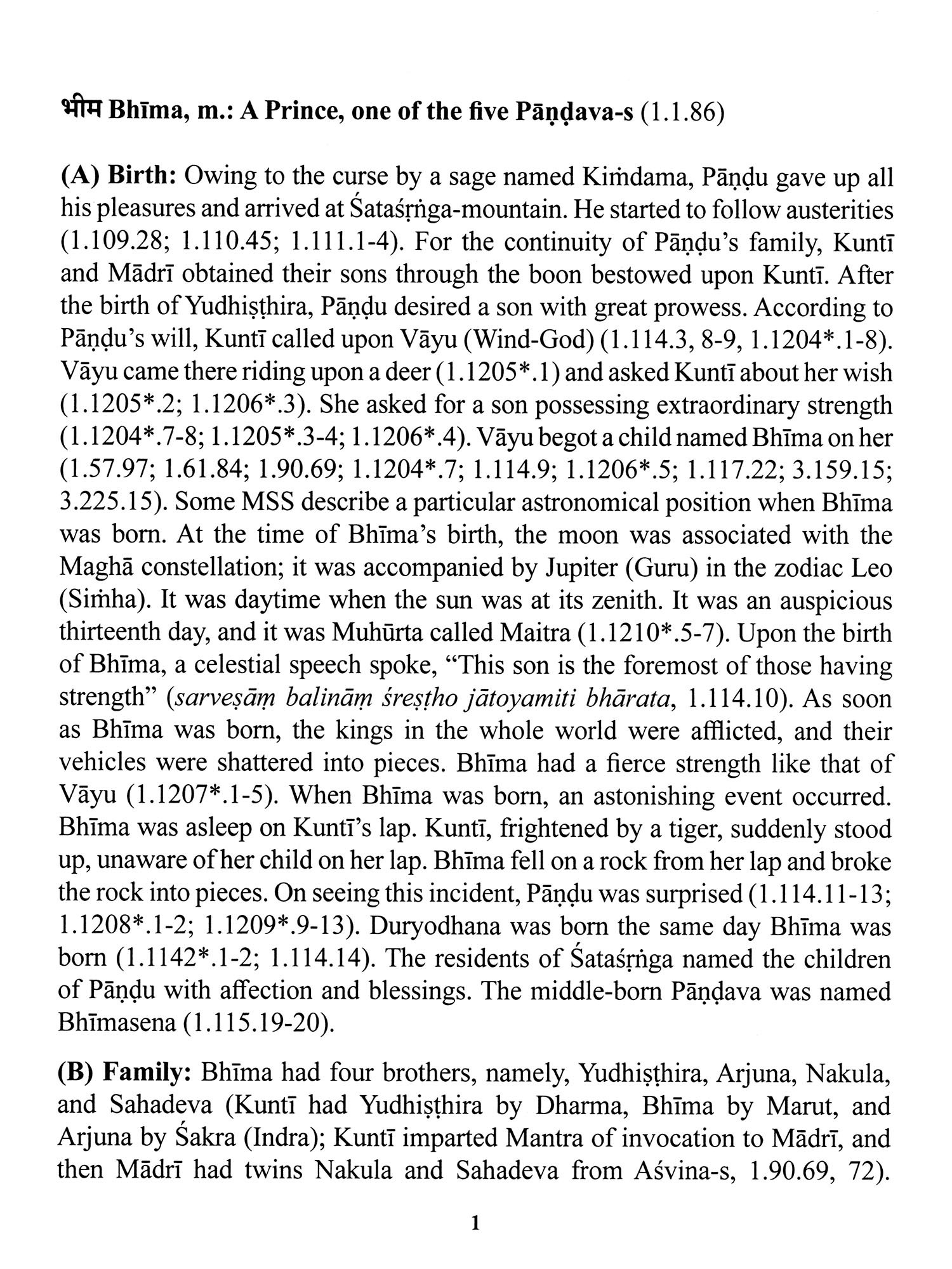 The entry on Bhima, which extends across 228 pages, attempts to do justice to his multifaceted role in the narrative, his relationships, his deeds, and his appearances in various contexts of the epic.