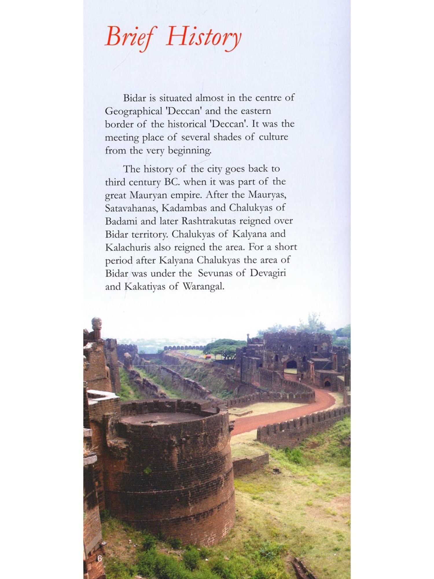 Bidar is the northern most district of Karnataka. Situated 740 Kms. north of Bangalore, 130 Kms. north-west of Hyderabad and 116 Kms. from Gulbarga, the city of Bidar with a population of 1.72 Lacs (2001 census) has a glorious past. Ancient Basava Kalyana and medieval Bidar were widely renowned for their splendours and as a seats of learning, cultural attainments and political power. The unique radical reformist movement launched by a galaxy of sharana pioneers originated here in Bidar district and it had profound effect on the entire region through the centuries. The district has its own charms and marvels with pleasant climate throughout the year. With the addition of University of Veterinary, Animal Husbandry and Fisheries Sciences and Bidar Institute of Medical Sciences, Bidar is fast developing as a hub of educational institutions. The jet training centre of Indian Air Force has added new dimension to the city life with roaring aircrafts hovering over the city sky.