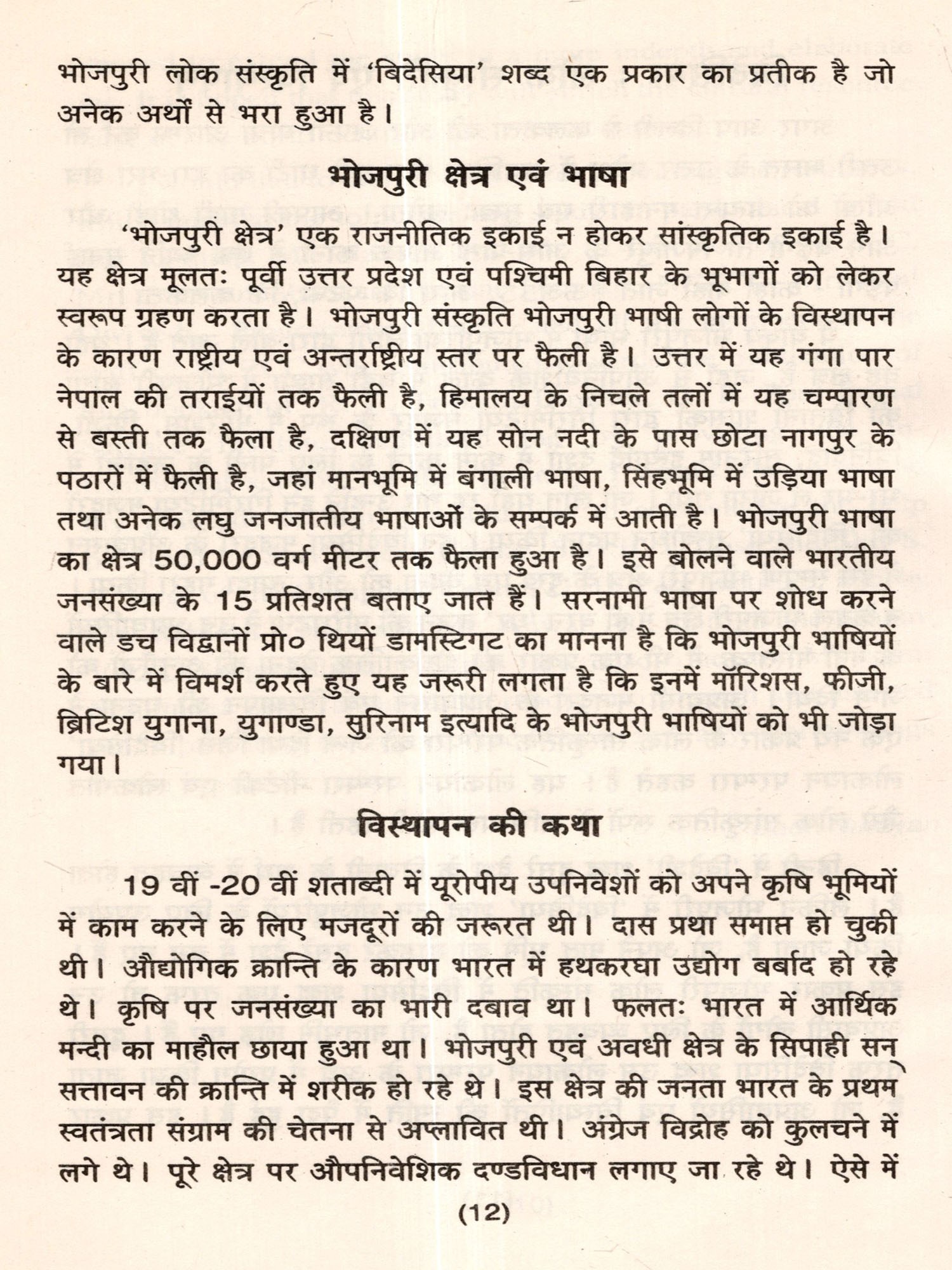In the precolonial period when the European world extended its domain across the globe through its colonies, it needed a huge source of cheap and abundant labour to work in the sugar, coffee, jute and other plantations in its various colonies. After the abolition of slavery, it found this sources of labour in the Bhojpuri region of India. In the mid nineteenth century there took place a massive migration from this region to various European colonies like Surinam, Mauritius, Fiji and Trinidad. Even after these countries were decolonised, a good number of migrants remained behind in these countries. The present generation of the original Bhojpuri migrants have now imbibed the culture and heritage of their destination countries, but there is a growing urge within them to reconstruct the past of their ancestors and to establish a link between the common cultural heritage of people from Indian descent in various regions in the world, with the culture of the Bhojpuri region of India.