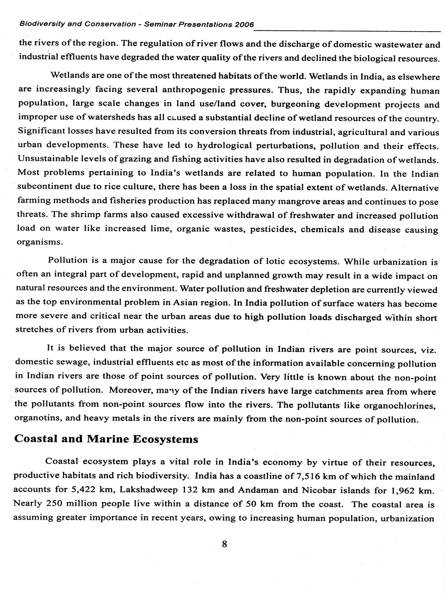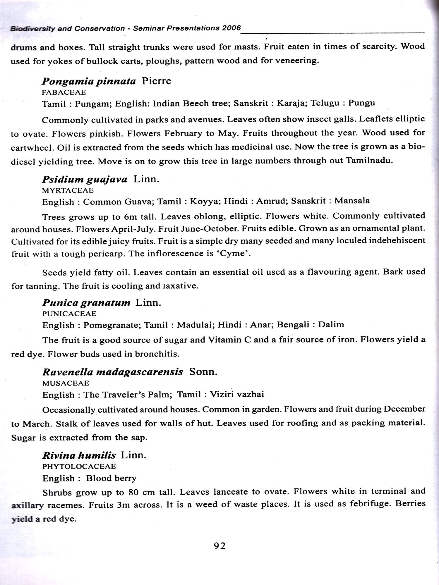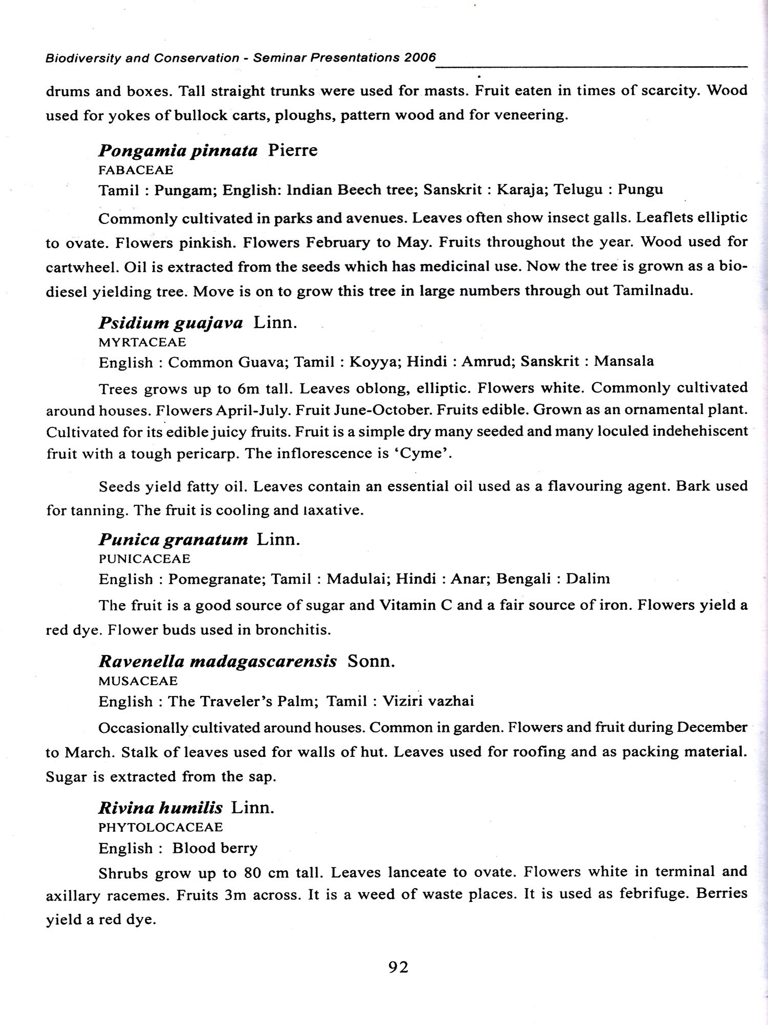 Government Museum, Chennai has different sections of which the Botany section is one. As a part of the educational activity of this section, they have conducted a Bio-diversity Seminar on 01-02-2006 and 02-02-2006. Eminent person's have participated in the seminar and presented papers on different themes. The papers highlight the importance of maintaining our ecological balance to prevent pollution, tsunami and other factors affecting the environment. To maintain pollution free atmosphere it is essential that the ecological niche should be a balanced one. In this regard, these papers presented during the seminar on biodiversity would definitely serve the needs of the scholars, researchers, students and public. I also appreciate the efforts taken by Tmt. M.N. Pushpa, Curator, Botany, in coordinating with the various scholars to participate and present papers in the seminar and in bringing out this publication effectively.