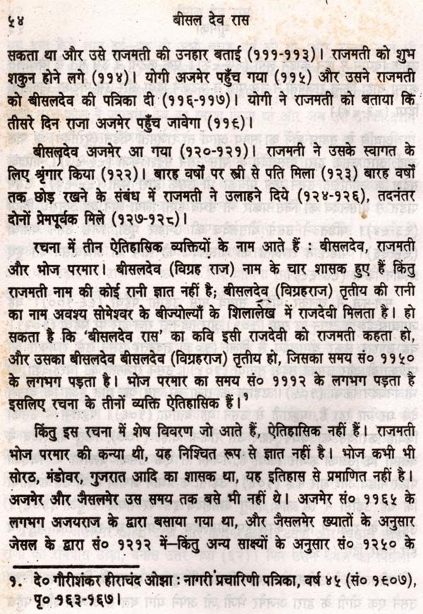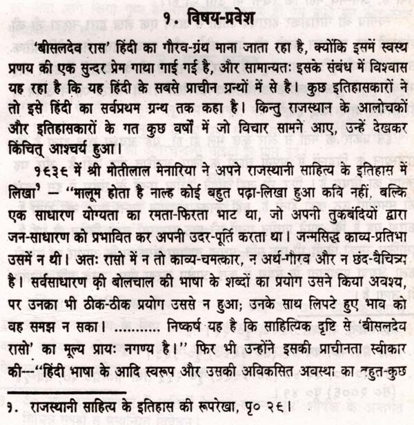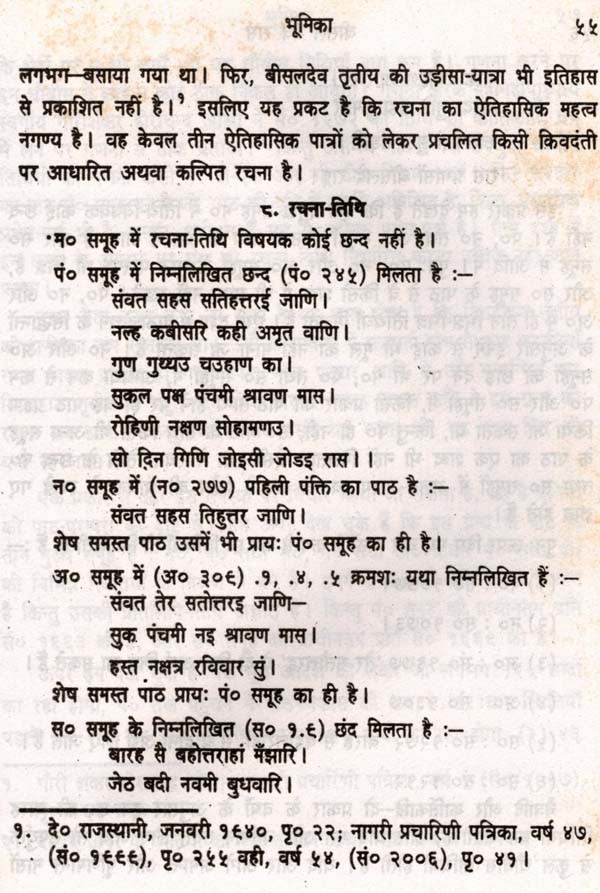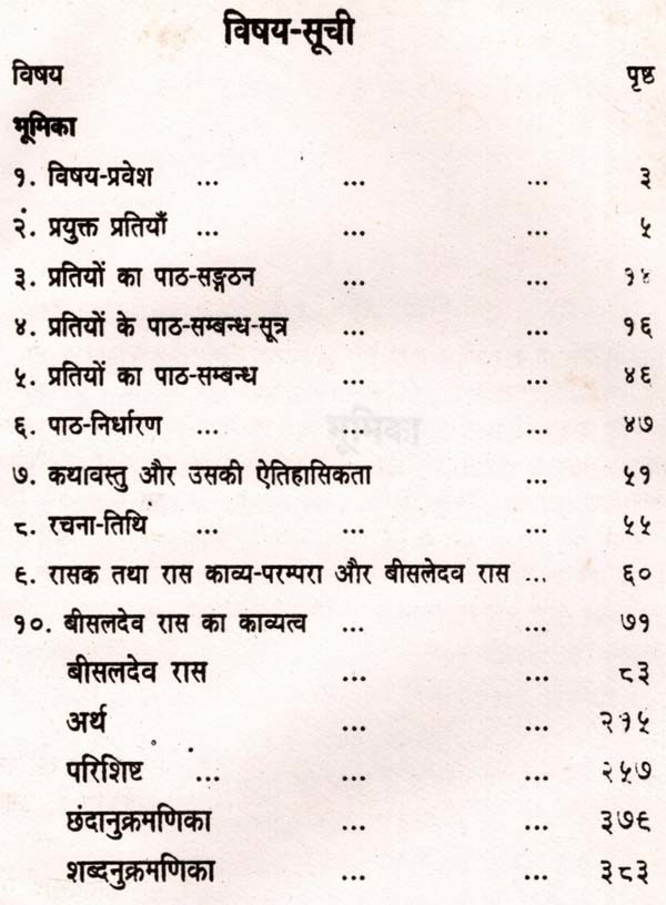 प्रायः ढाई वर्ष हुए, 'राजस्थानी' की फ़ाइलें उलटते-पुलटते जनवरी, १६४० के अंकमें श्री अगरचंद नाहटा का 'बीसलदेव रासो' की हस्तलिखित प्रतियाँ शीर्षक लेख पढ़ा। उसमें नाहटाजी ने ग्रन्थ की एक दर्जन से अधिक प्राचीन प्रतियों का संक्षिप्त उल्लेख किया था। उस लेख को पढ़ने के अनन्तर ग्रन्थ के पाठ-निर्णय और पाठ-संपादन का विचार उत्पन्न हुआ। किन्तु प्रतियाँ प्राप्त करने के लिए नाहटा जी से परिचय न होने के कारण मैंने श्रद्धेय डॉ० धीरेन्द्र वर्मा जी से इसकी चर्चा की, तो उन्होंने नाहटा जी को लिखा। श्रद्धेय डाक्टर साहब के पत्र का उत्तर देते हुए नाहटा जी ने ग्रन्य की प्रतियाँ इकट्ठी करके देना स्वीकार किया। इस देश में जहाँ प्रायः लोग प्रतियाँ दिखाना तक नहीं चाहते, उन्हें इकट्ठी करके उपयोग के लिए अन्य को देना बड़ी भारी उदारता का कार्य है। नाहटा जी का नाम उनकी इसी उदारता के नते ही इस ग्रंथ के एक सम्पादक के रूप में जा रहा है, अन्यथा शेष समस्त कार्य मेरा किया हुआ है, और उसका सम्पूर्ण उत्तरदायित्व मुझ पर ही है। नाहटा जी ने अर्थ के अंश को अंतिम रूप में देख कर उसमें लगभग एक दर्जन स्थलों पर सुधार के सुझाव भी दिए, जिन्हें ग्रहण कर लिया गया है। यह उनकी अतिरिक्त कृपा थी।