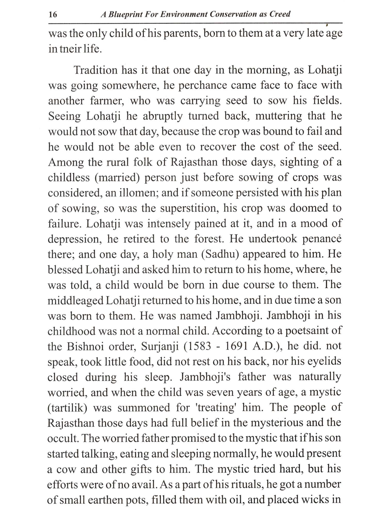 My dear Rajendra Singh Ji, I would like to begin by congratulating you for writing a very interesting and badly needed book "Where Conservation is Creed". Obviously a great deal of research and effort has gone in the production of this unique masterpiece with the sole purpose of preserving nature. After reading it, my esteem for the Bishnoi community, which was already very high, has gone up still higher. In, today's times the teachings of the great Guru Jambheshwar Ji Maharaj are not (only) equally valid but vital for the preservation of the human race. In our country his teachings need to be followed by every man, woman, and child as they are universally applicable irrespective of one's caste, creed and religion. A great deal of ecological damage has already been done in our country by irresponsible and greedy people through deforestation and indiscriminate and wanton felling of our forests. Your book brings out with telling effect the relationship and interdependence of the human race and the nature through trees, birds and animals. As an Indian I cannot help but feel proud that our country produced a seer and practical saint who clearly saw the benefits of conservation of nature to man and laid down an ethical code of twenty nine tenets of such far reaching consequences. I firmly believe that your book or at least the teachings of the Bishnoi faith, should be made compulsory reading in our schools so that the new generation is made aware of the vital necessity of preservation of our environment and ecological balance. The recurring benefits from a single tree as brought out by you are an eyeopener and will convince any skeptic. I have no doubt that the book will find ready acceptance with its readers and if we are able to stem further destruction of our trees, the sacrifices of so many simple and gallant men, women and children, and the effort in writing the hook would have been more than justified. Well done.