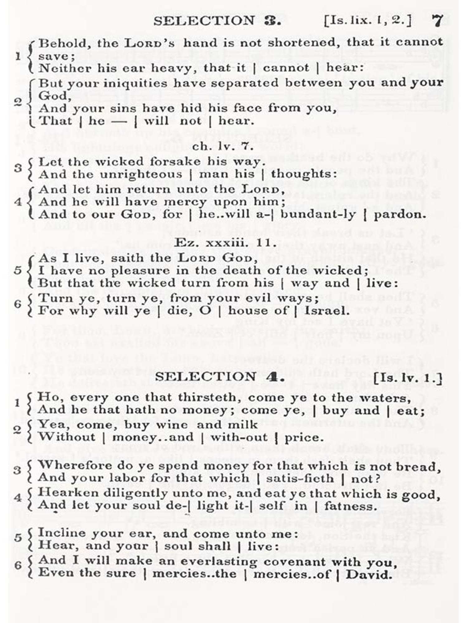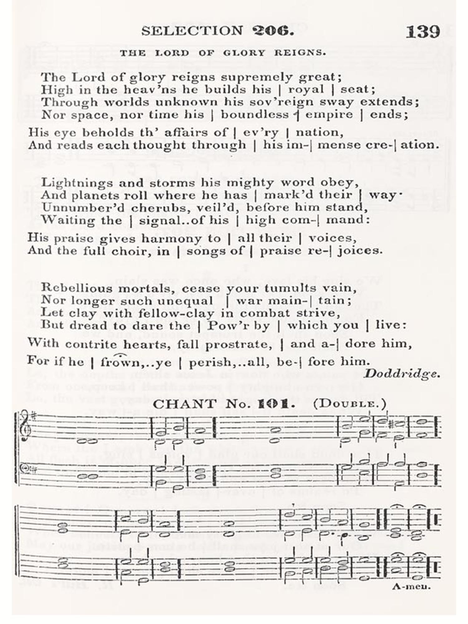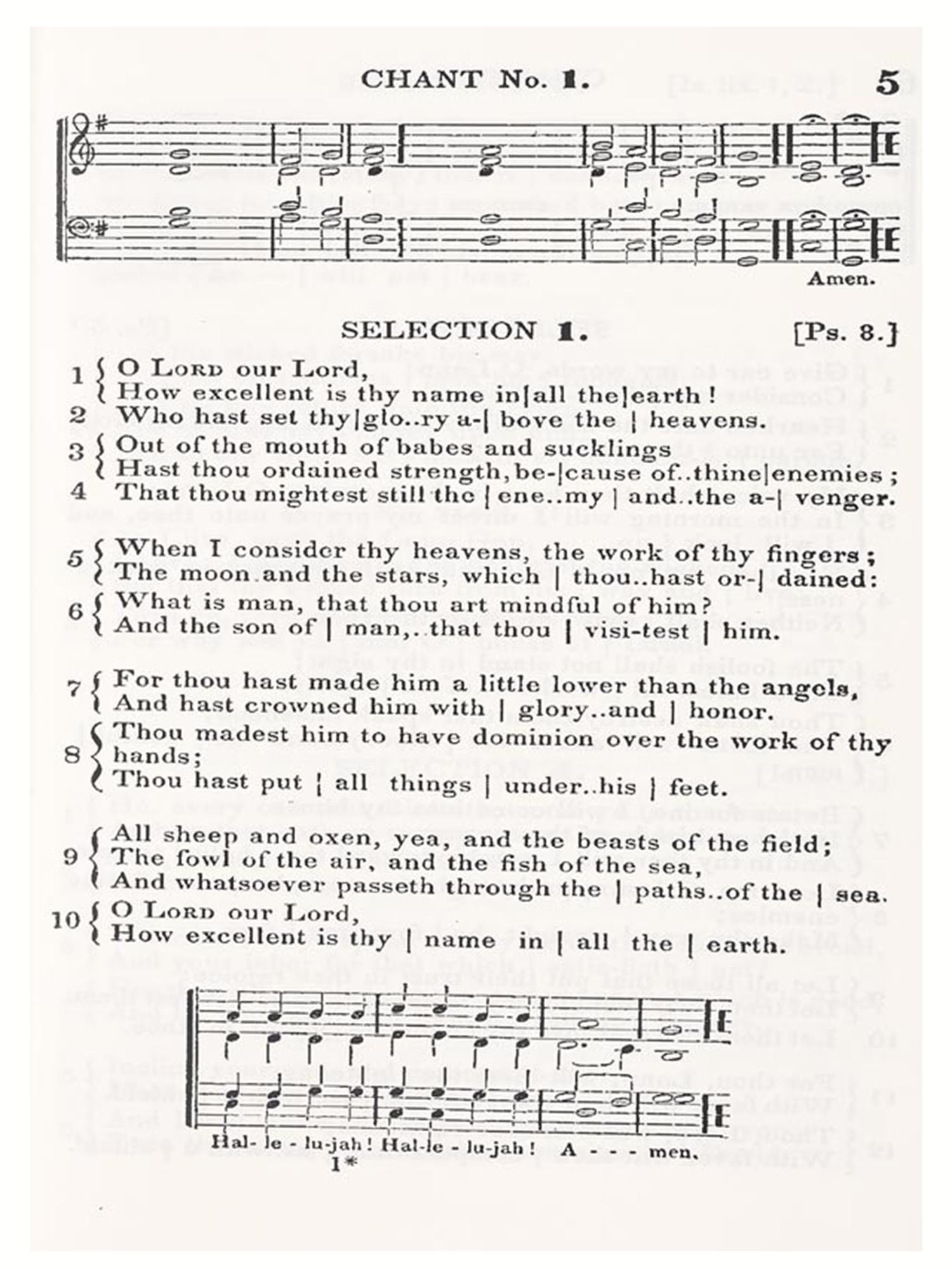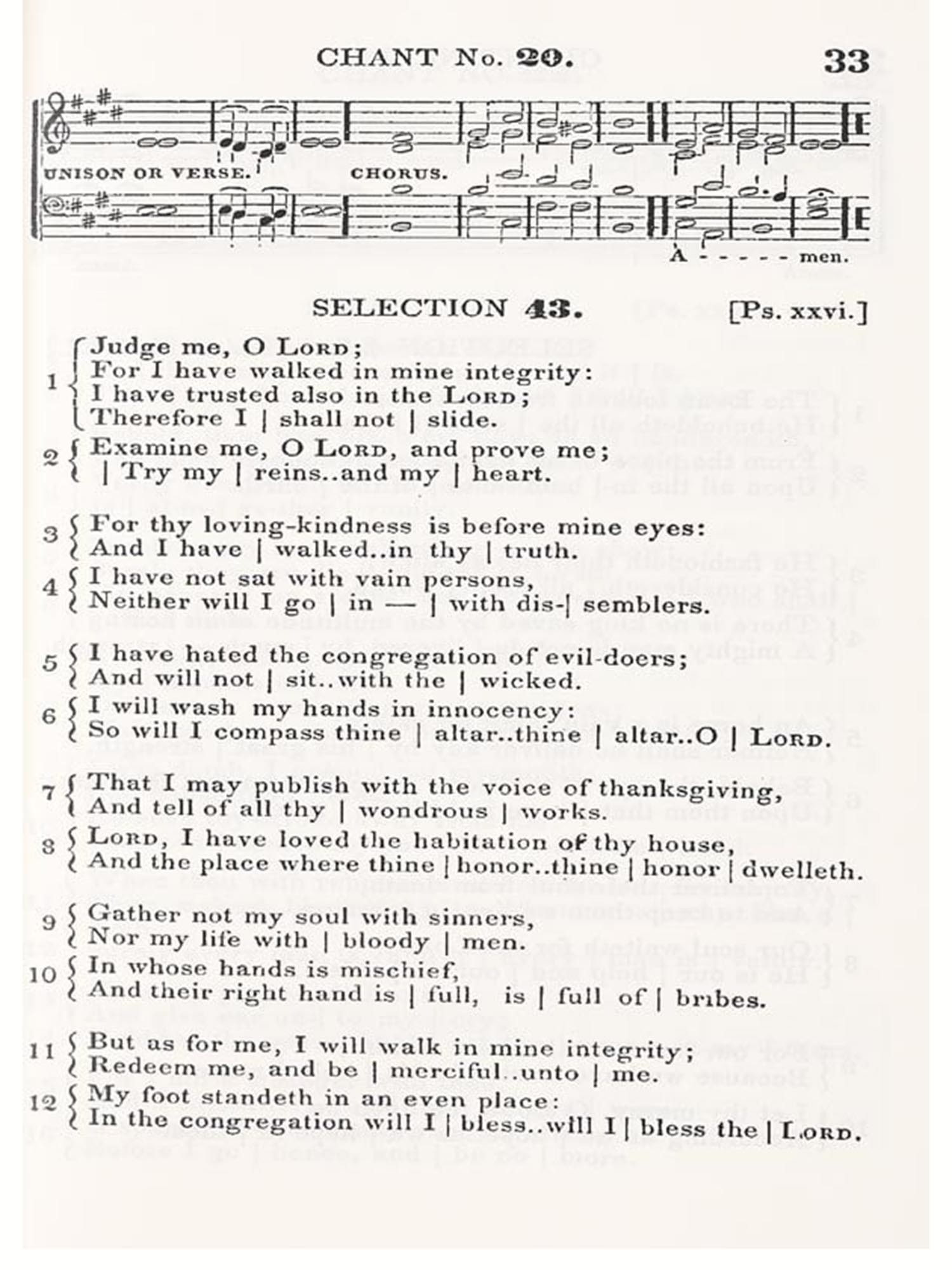 It is the design of this work to furnish a book of chants which can be used by the whole congregation in connection with the common hymn book, so that a part of the singing every Sabbath, or whenever the minister shall think it best, may consist of these beautiful, scriptural and highly devotional pieces. The number of selections might have been increased had it been thought advisable to enlarge the size of the book; but as it is, it will be found to contain a large portion of those passages of the Word of God, suitable for the purposes of public worship, with all the variety that can be required.