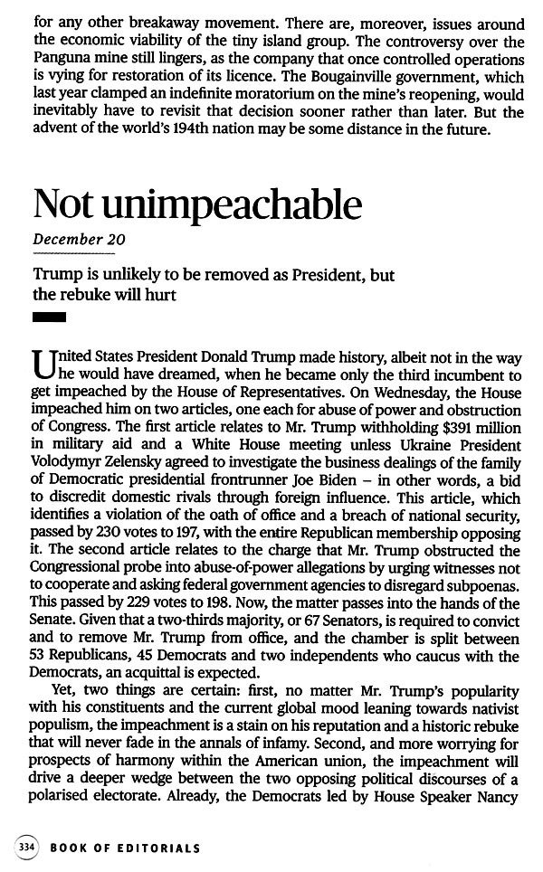 The Hindu Book of Editorials 2019 captures what made news in the year that just passed, with a selection of editorials that were published in the editorial pages of India's national newspaper.