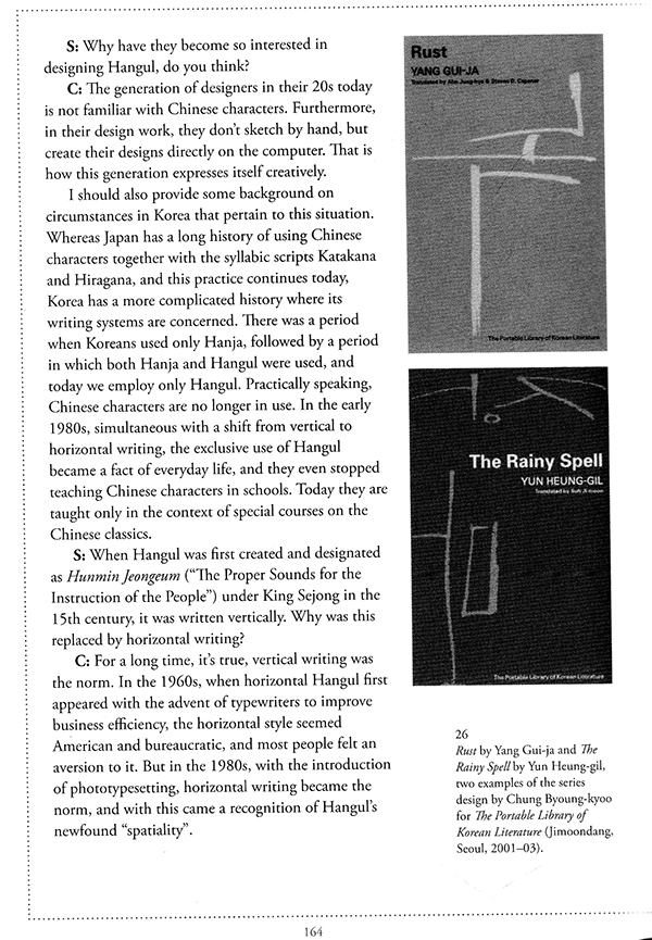The conversations that make up this book are with trusted friends whom I have known for many years. They include Ahn Sang-soo and Chung Byoung kyoo from Korea, Lu Jing-ren from mainland China, Huang Yung-sung from Taiwan, and R.K. Joshi and Kirti Trivedi from India. Professor Joshi and I are of the same generation, while the others are much younger. All are top-ranking designers or artists whose work transcends national boundaries.