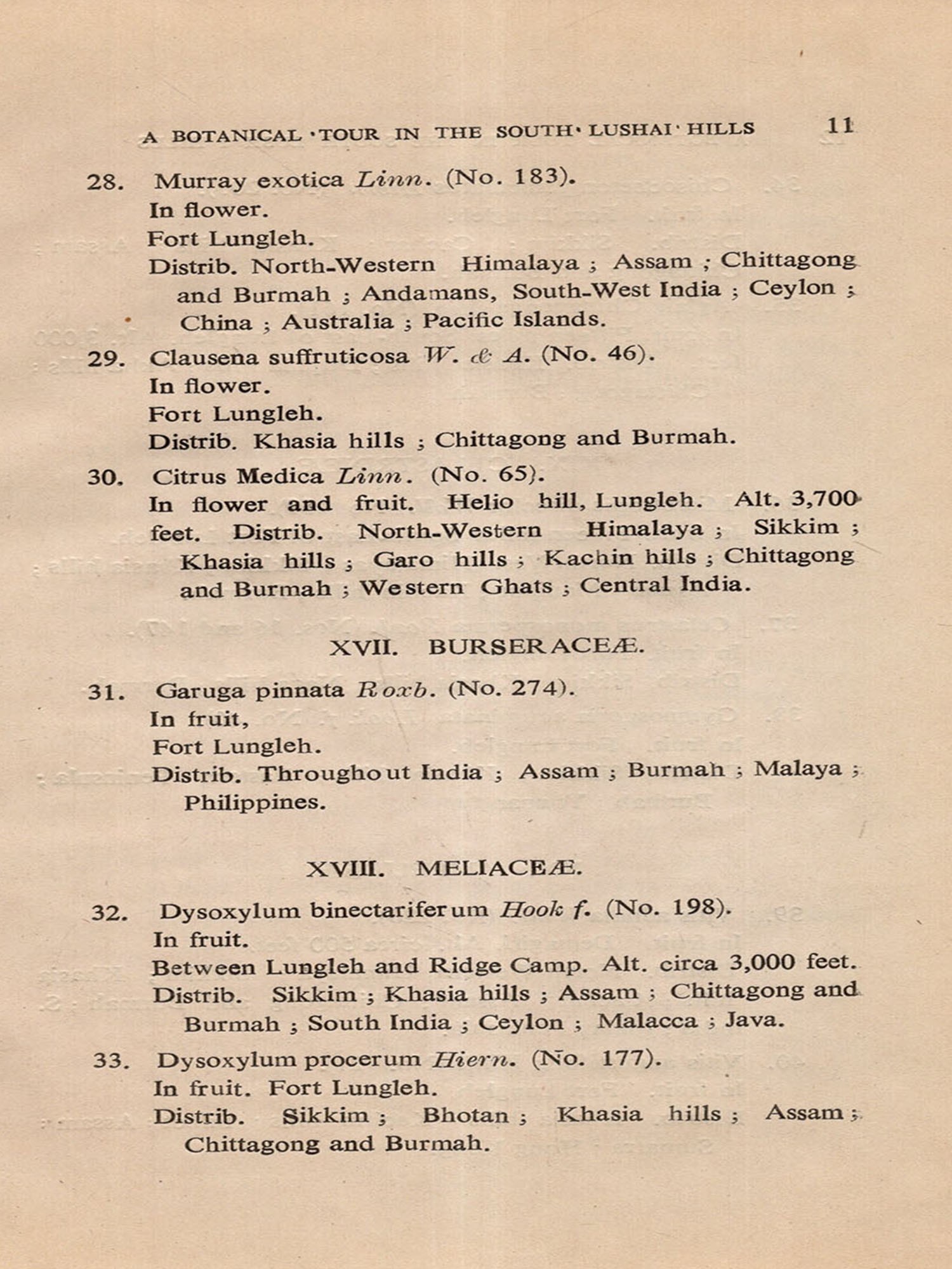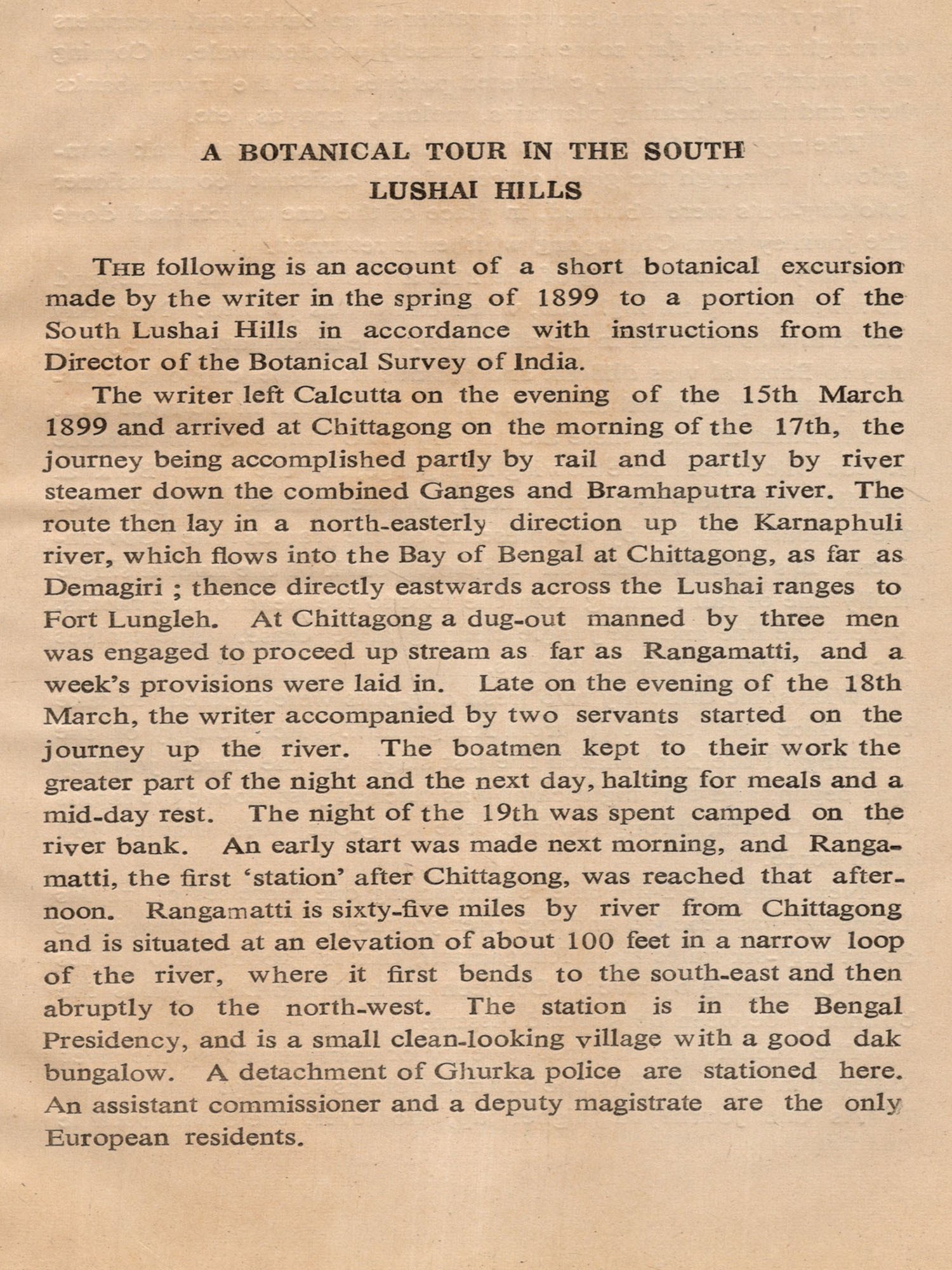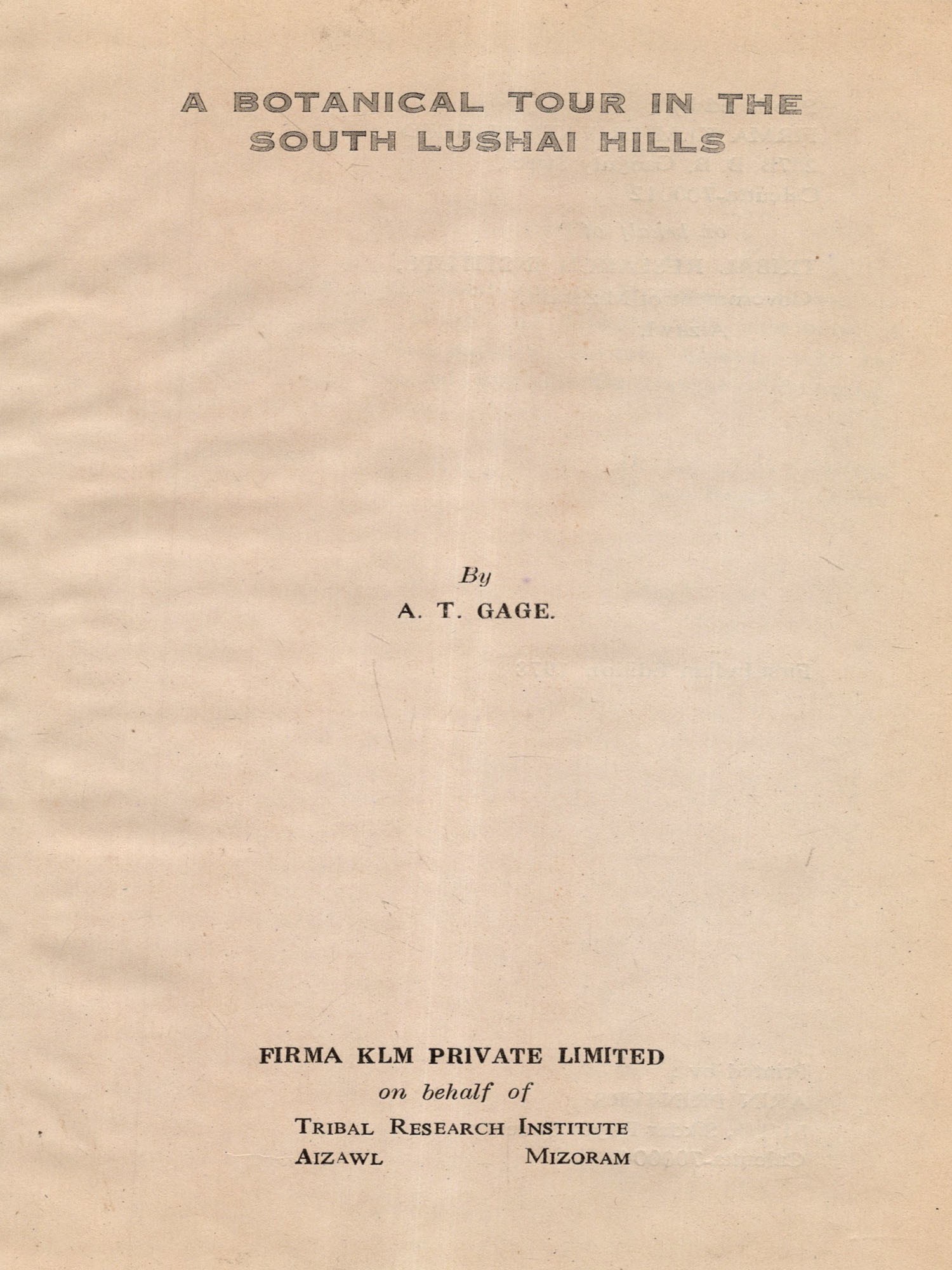 A Botanical Tour in the South Lushai Hills (An Old and Rare Book)