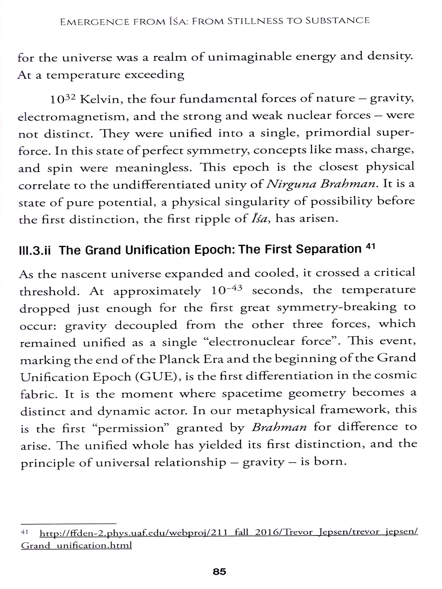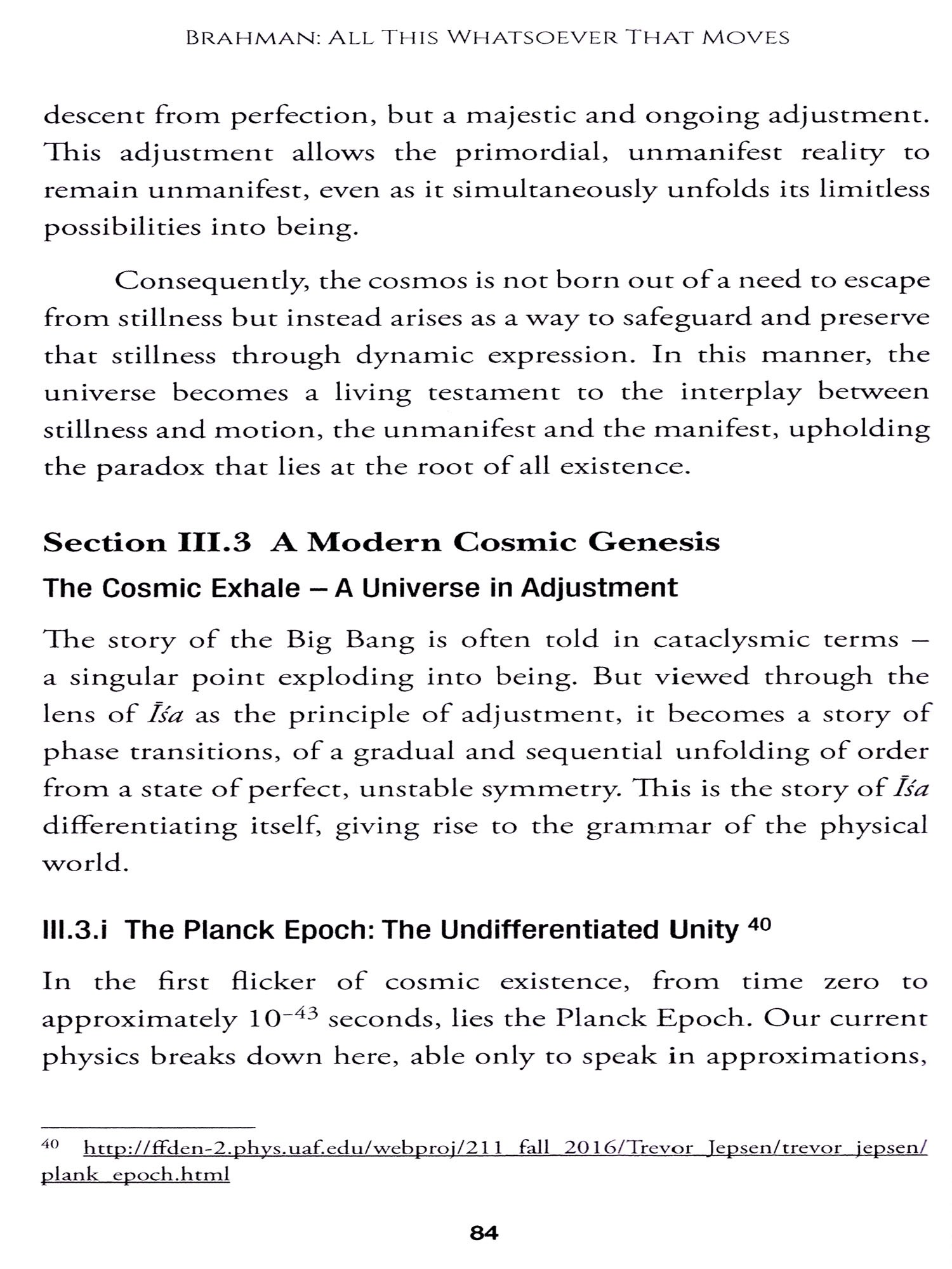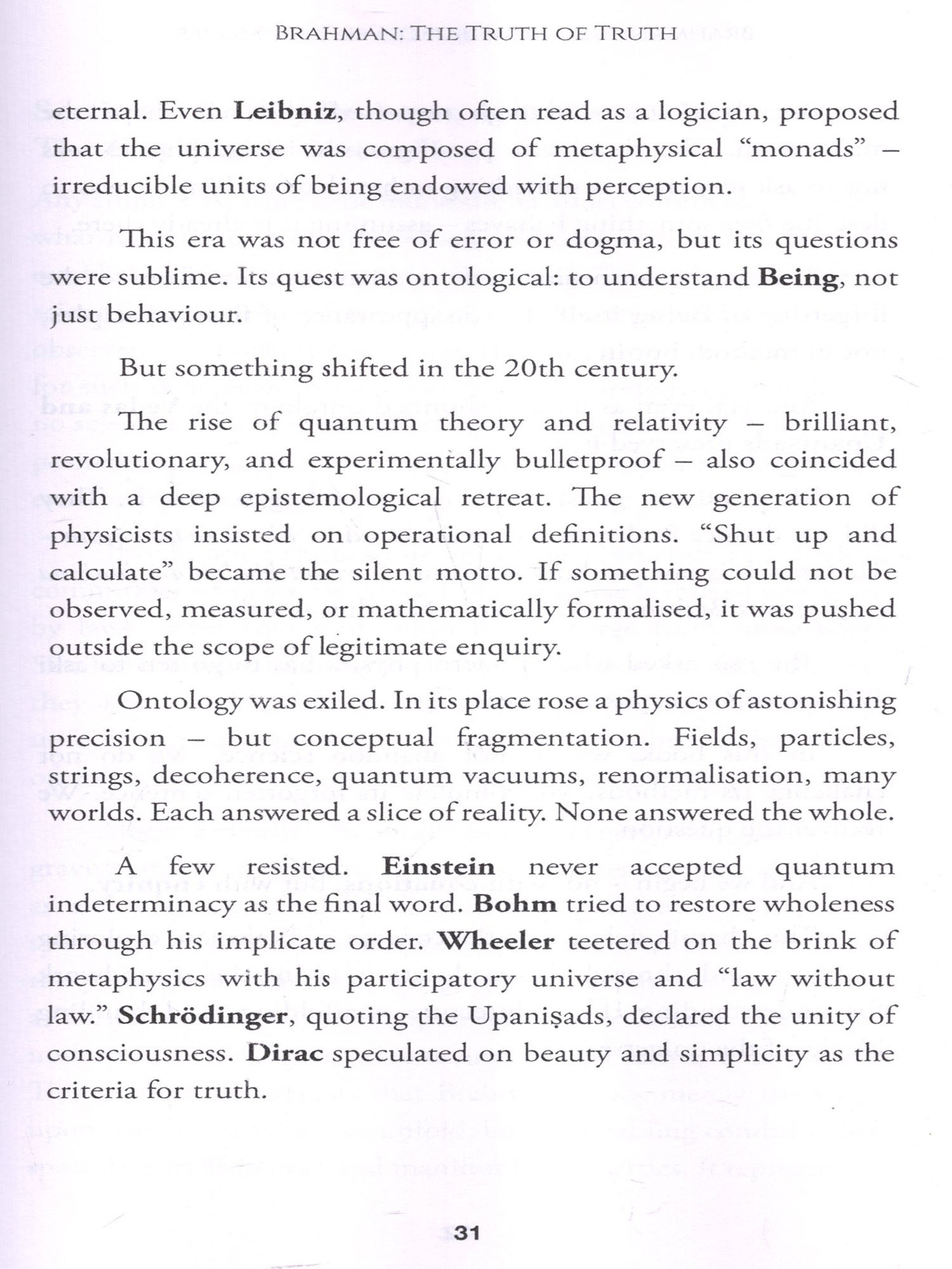 This work emerges from a radical collaboration not merely among different disciplines, but among entirely distinct ways of perceiving the world. It unites the rigorous methodologies of physics with the profound metaphysical insights found in the Upanişads. In doing so, it honours the strengths of both traditions while remaining independent of their limitations, offering a fresh perspective that transcends traditional boundaries.