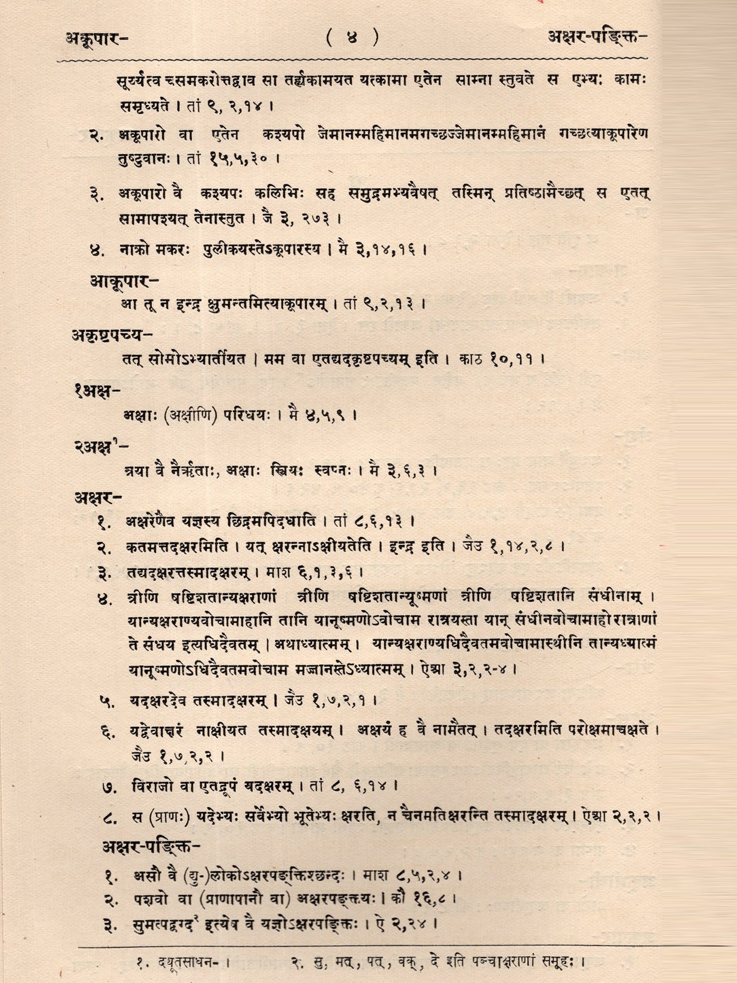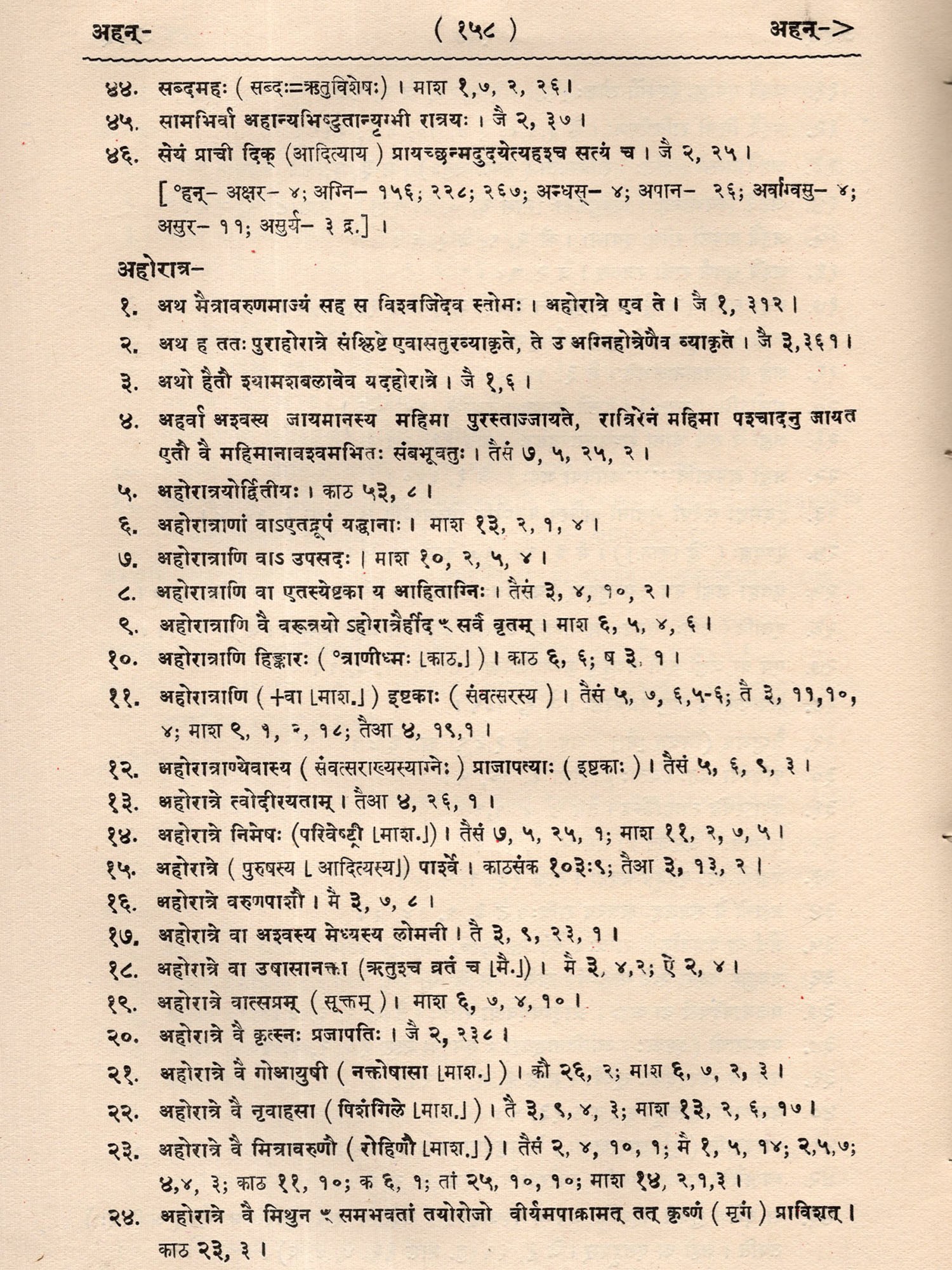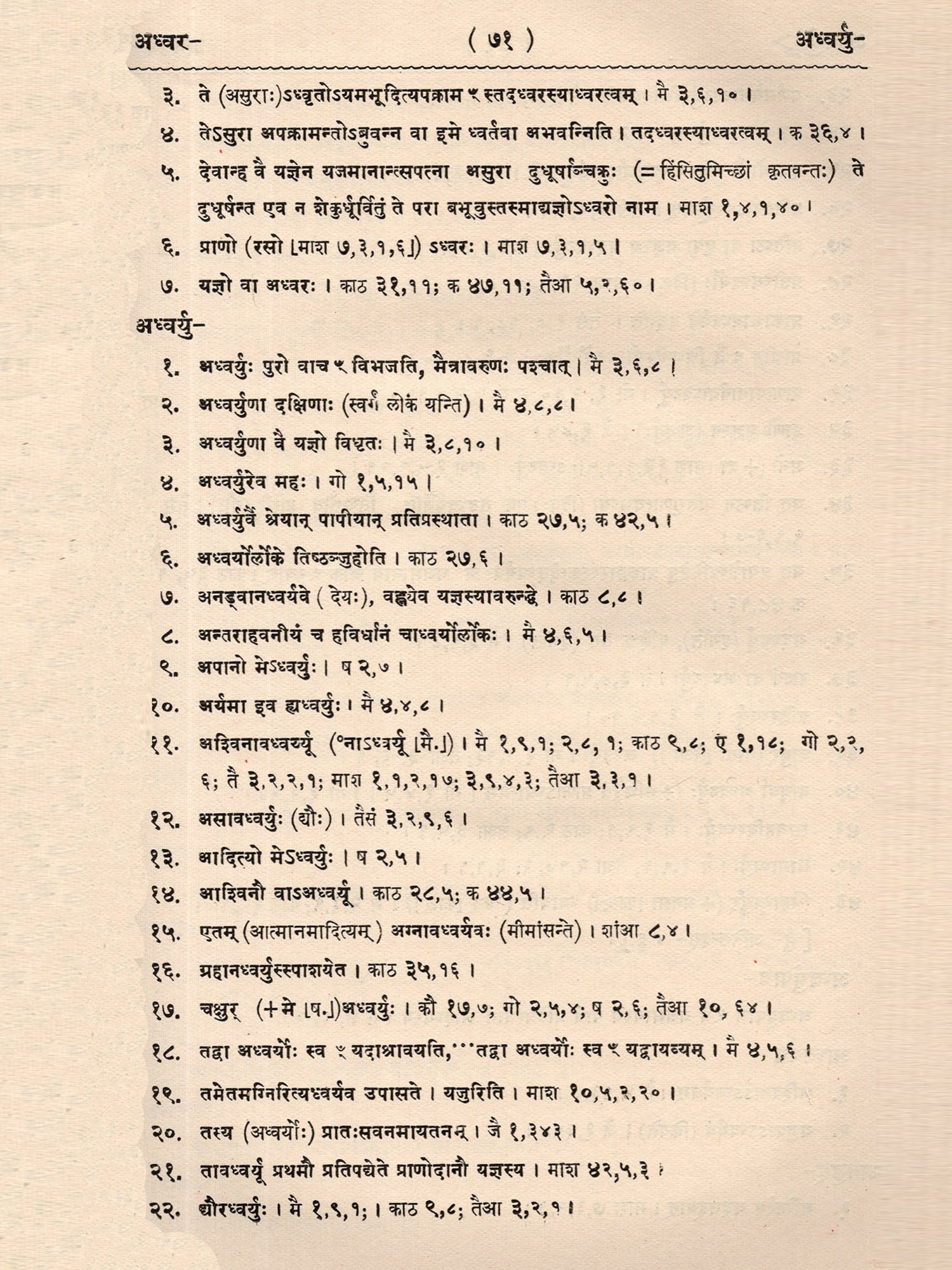 Being a Concordance of basic extracts. useful for Researches in various branches of Vedic Sciences and Arts, drawn from Samhitas (Brahmana Portions), Brahmanas and Aranyakas