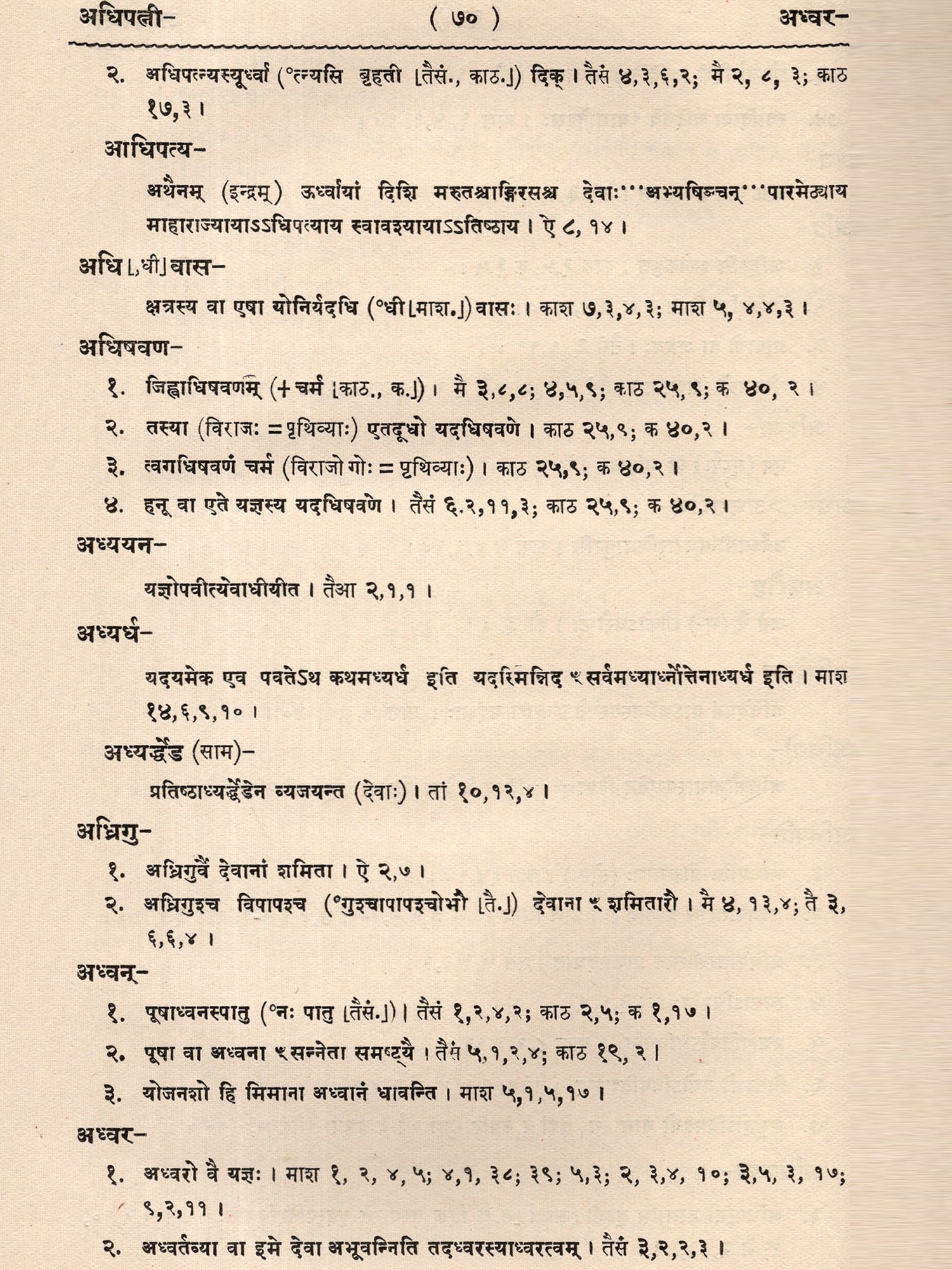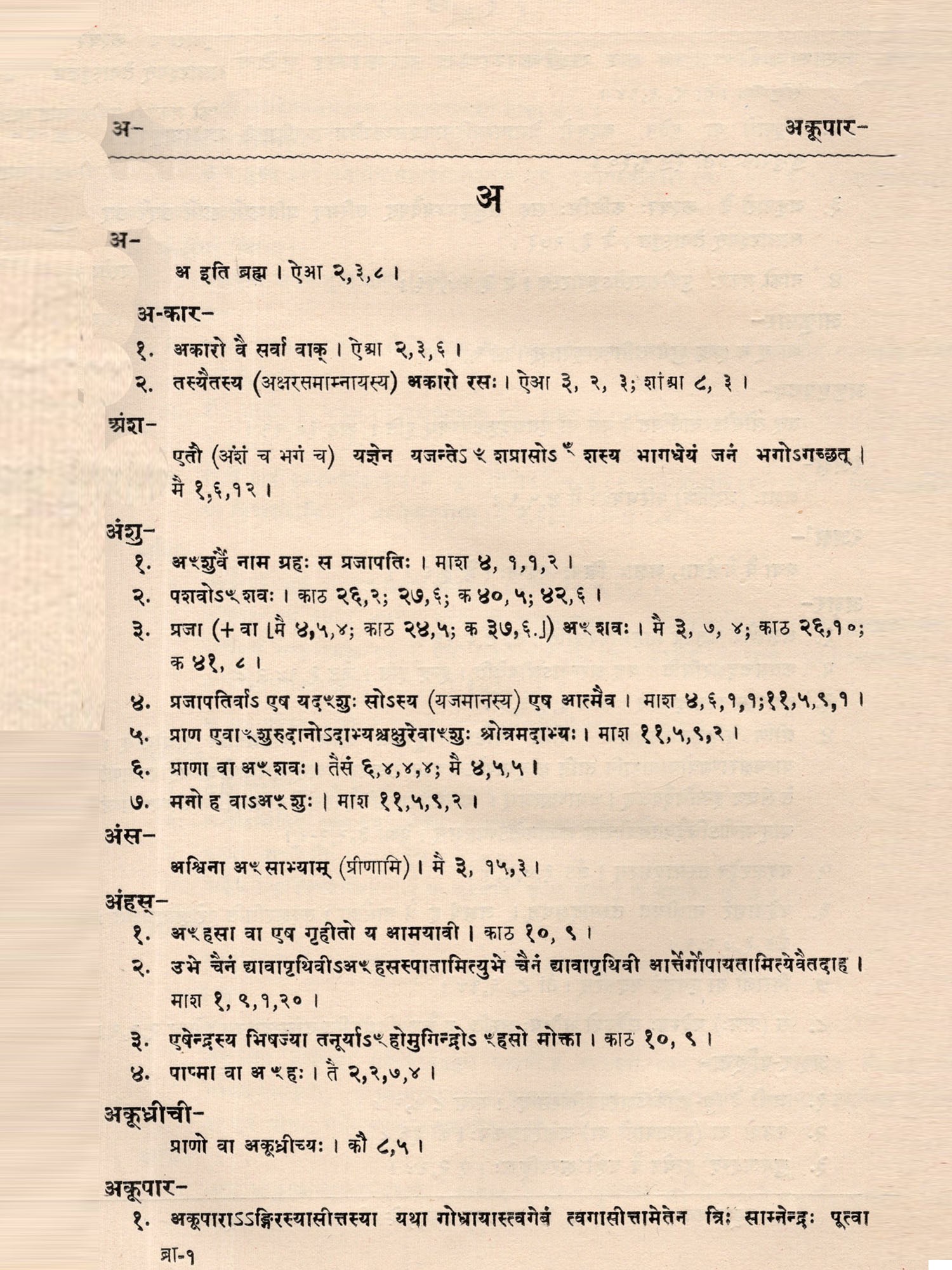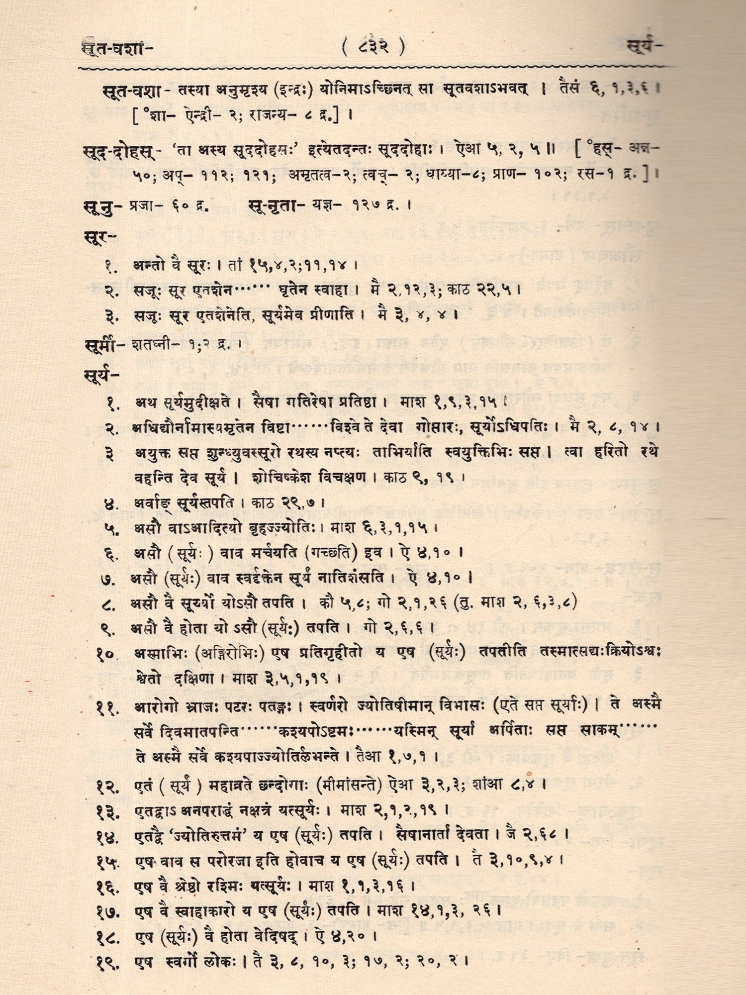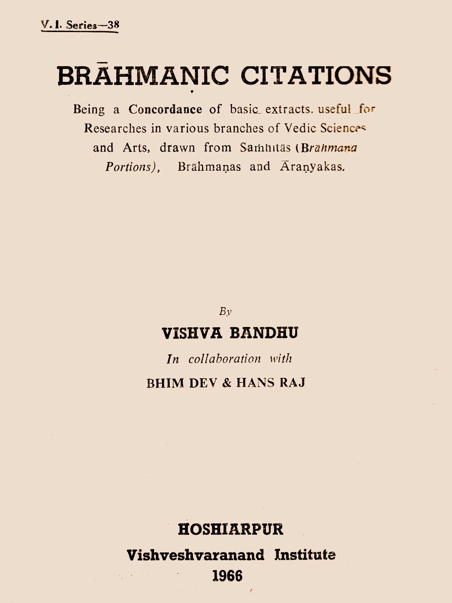 Being a Concordance of basic extracts. useful for Researches in various branches of Vedic Sciences and Arts, drawn from Samhitas (Brahmana Portions), Brahmanas and Aranyakas