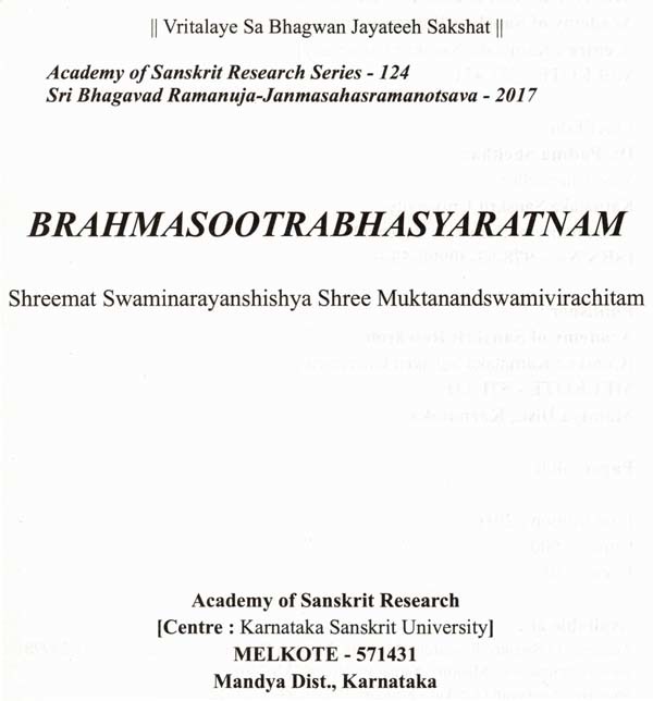 ब्रह्मसूत्रभाष्यरत्नम्: Brahmasootrabhasyaratnam (Shreemat Swaminarayanshishya Shree Muktanandswamivirachitam)