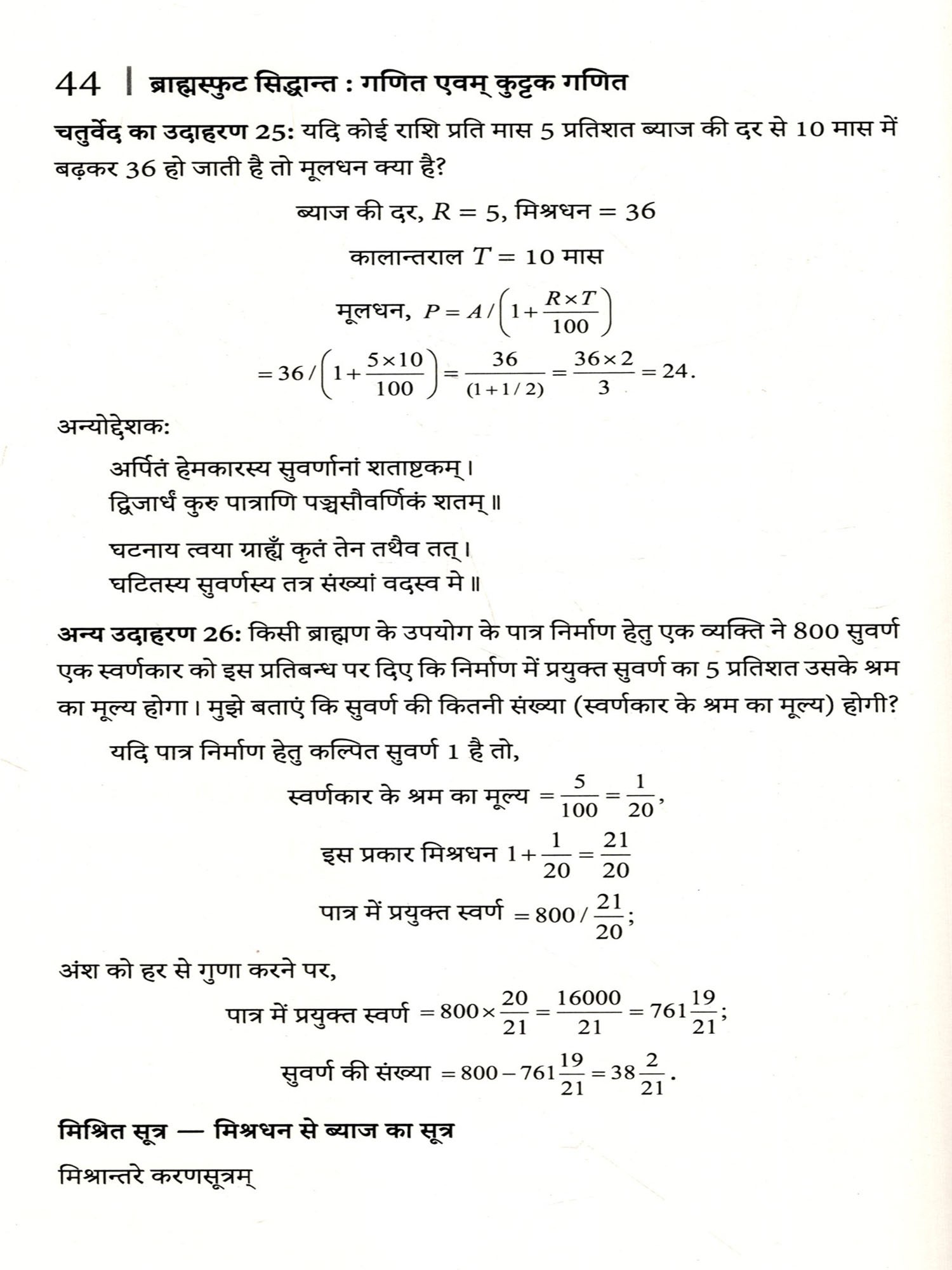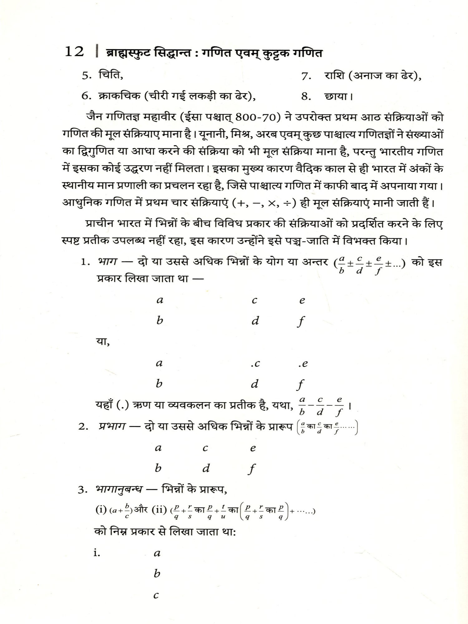 ब्राह्मस्फुट सिद्धान्त गणित एवं कुट्टक गणित: Brahmasphuta Siddhanta Mathematics and Kuttaka Mathematics (Arithmetic, Geometry and Algebra)