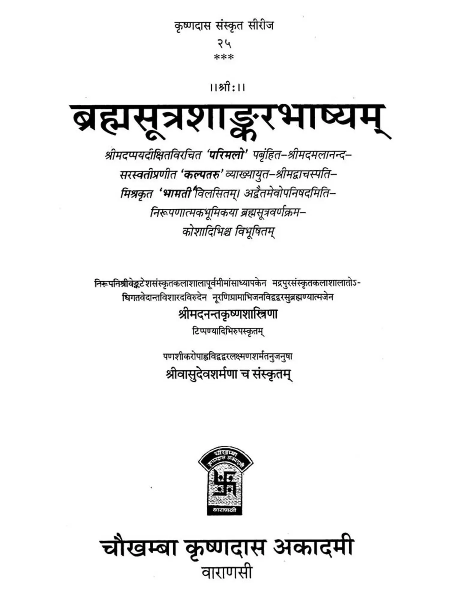 ब्रहासूत्राशाङ्करभाष्यम - Brahmasutra Sankara Bhasya